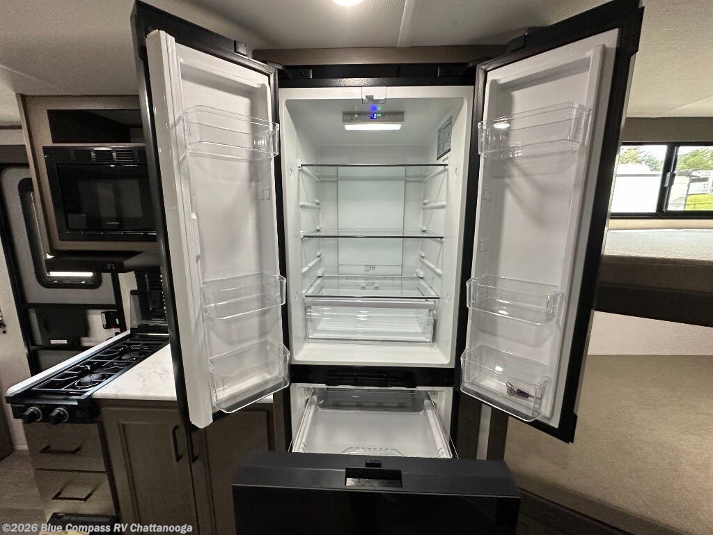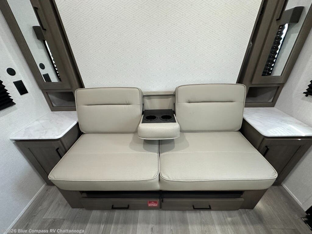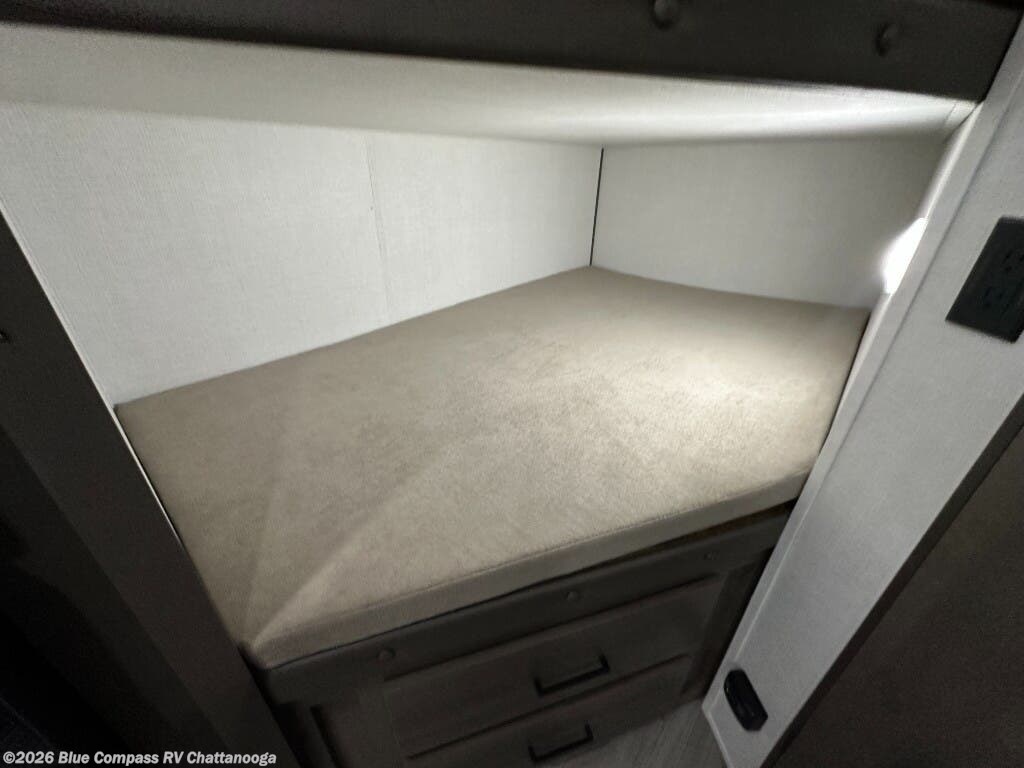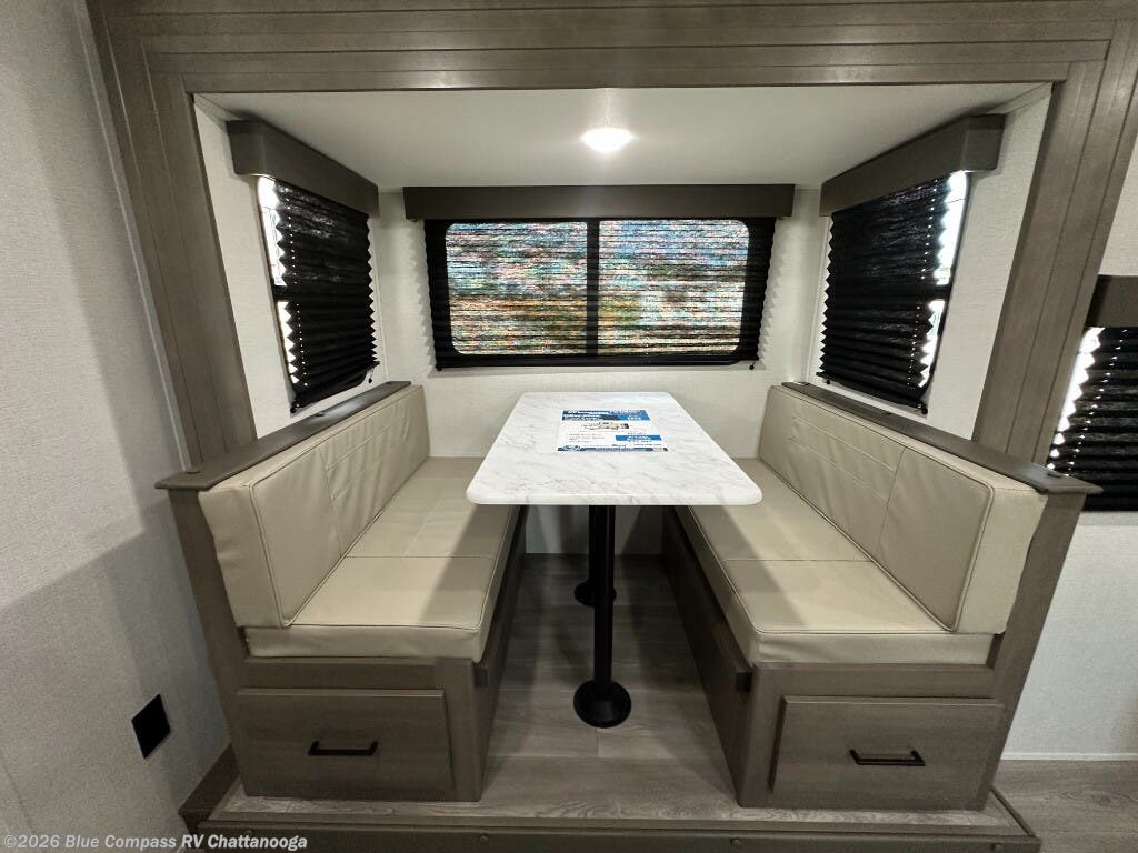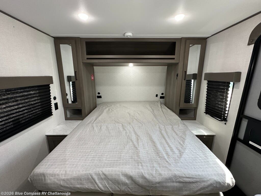 Spacious and versatile, this travel trailer is perfect for weekend trips to the campground or weeklong visits to the lake! There is a front Murphy bed with storage on both sides plus a pull-out pet drawer to keep your furry friends happy. Your guests or little ones will love the double-size bunks with privacy curtains, and the full bath is right next to the bunks for easy nighttime use. Once you make breakfast on the two burner range, you can dine at the booth dinette slide. And this model also includes an outdoor griddle and refrigerator if you want to make breakfast outdoors. Additional exterior features include a 16' power awning, an interior/exterior table, and a pass-thru storage for larger camp gear.