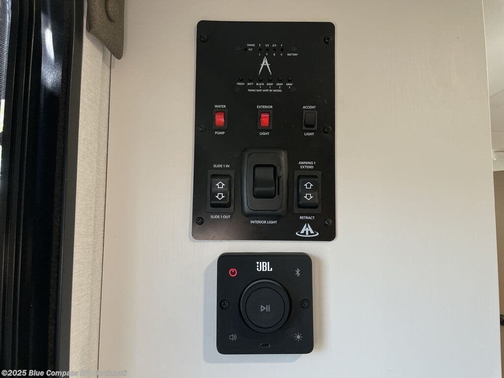 With any Transcend One travel trailer by Grand Design, you will enjoy lightweight towing thanks to their single-axle. There are many interior comforts to make camping easier than ever, such as recessed lighting, residential countertops, and a 6' 6" interior height. Each model is constructed with a heated and enclosed underbelly with suspended tanks, a moisture barrier floor enclosure, and Thermofoil over the roof and front cap for added protection. And a JBL sound system will let you listen to tunes as you visit under the power awning with a Fusion light!