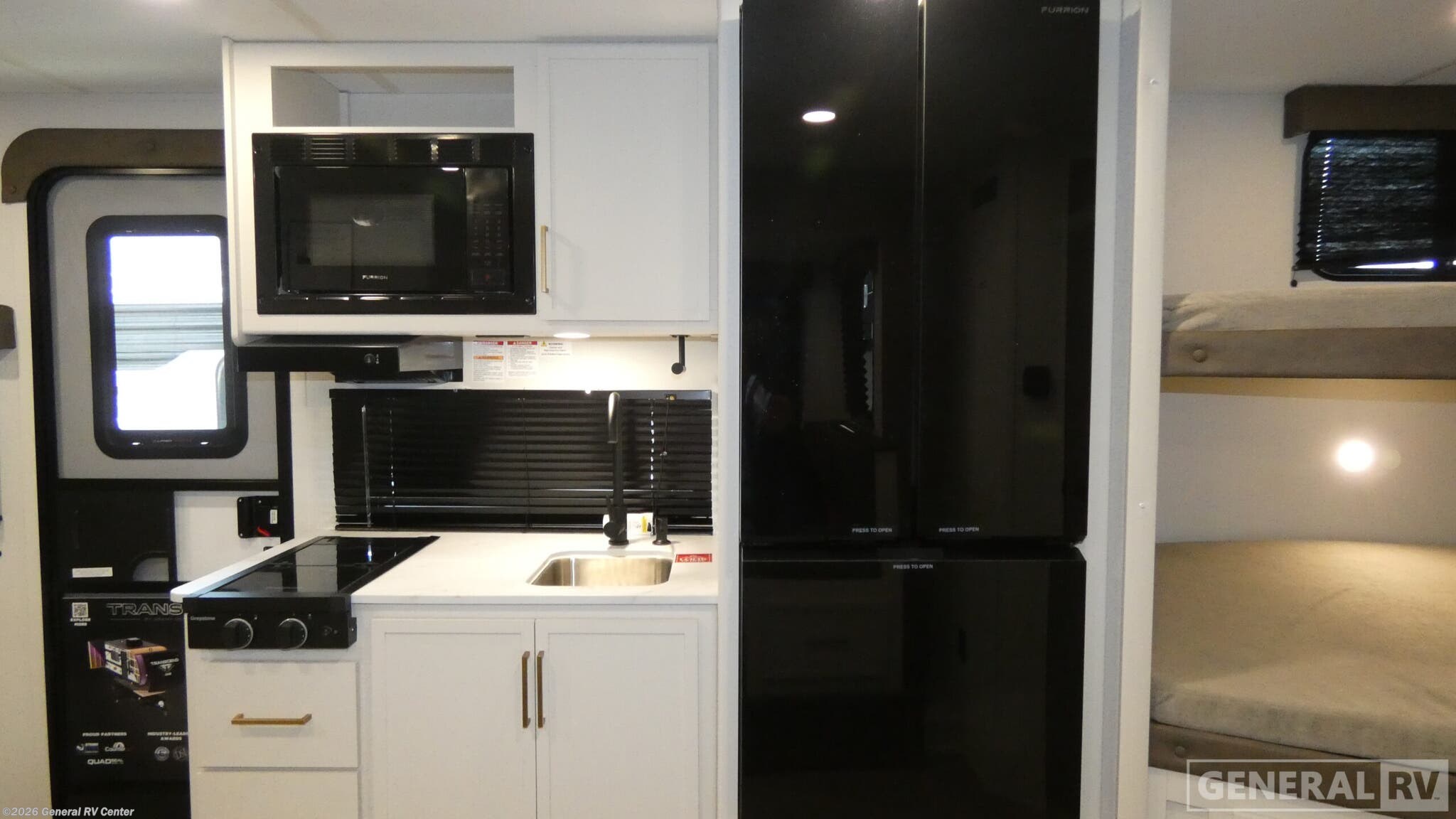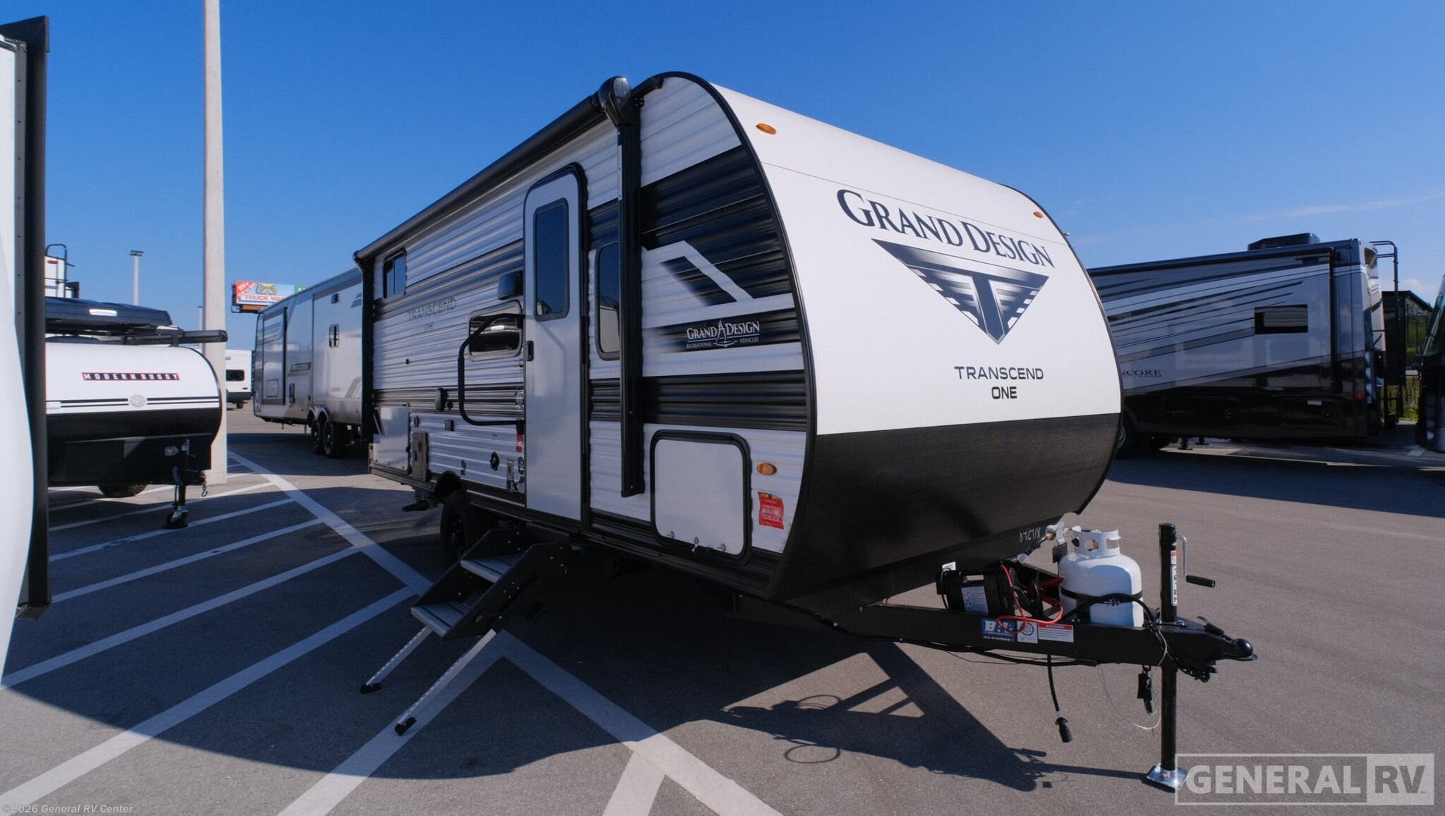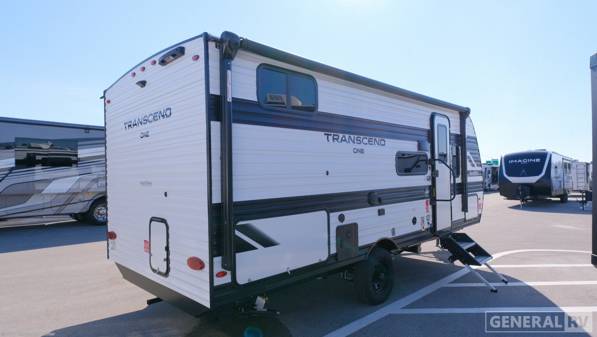 Experience the perfect blend of comfort and adventure with the 2026 Grand Design Transcend One 161BH. This compact yet spacious travel trailer is designed for families who crave both convenience and style on the road. With a length of 23 feet, it offers a cozy haven featuring a versatile Murphy bed, allowing you to maximize living space without sacrificing comfort. The bunk beds are perfect for the kids, and the booth dinette provides a great spot for family meals or game nights. The Transcend One 161BH is equipped with thoughtful amenities to enhance your camping experience. Enjoy the convenience of a 10 cu ft glass front refrigerator and a functional kitchen with a two-burner cooktop. The 16-foot power awning with Fusion Light creates an inviting outdoor space, perfect for relaxing after a day of exploration. With a 37-gallon fresh water capacity and efficient gas/electric water heater, this RV ensures you have all the essentials for extended adventures. Plus, the unobstructed pass-thru storage offers ample room for all your gear. This travel trailer is not only about comfort but also about efficient design. The single slide-out expands your living area, while the universal docking station and solar prep options make it easy to stay connected wherever you roam. Whether you're setting up camp in the mountains or by the beach, the Grand Design Transcend One 161BH is your ticket to unforgettable family memories. For more information or to see this model in person, visit your nearest General RV dealership.