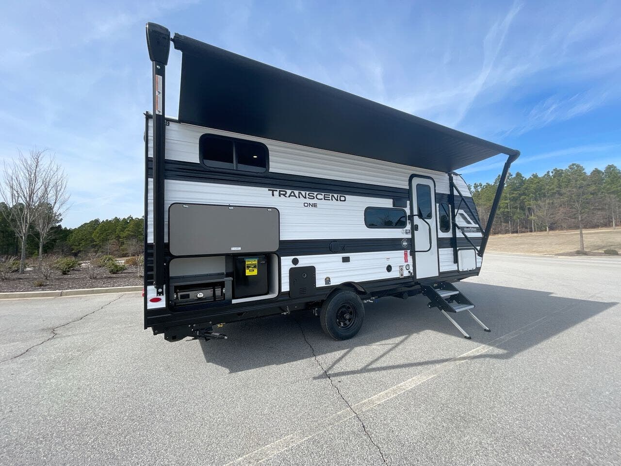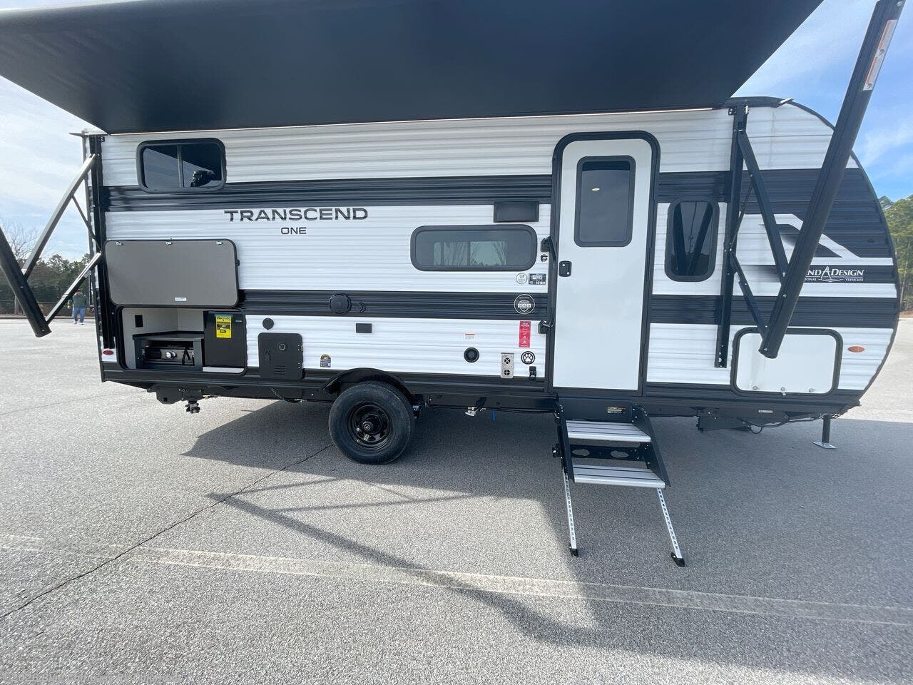 With any Transcend One travel trailer by Grand Design, you will enjoy lightweight towing thanks to their single-axle. There are many interior comforts to make camping easier than ever, such as recessed lighting, residential countertops, and a 6' 6" interior height. Each model is constructed with a heated and enclosed underbelly with suspended tanks, a moisture barrier floor enclosure, and Thermofoil over the roof and front cap for added protection. And a JBL sound system will let you listen to tunes as you visit under the power awning with a Fusion light!