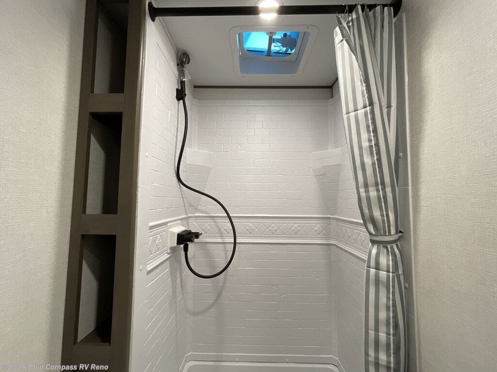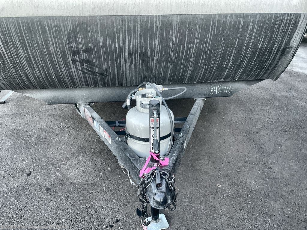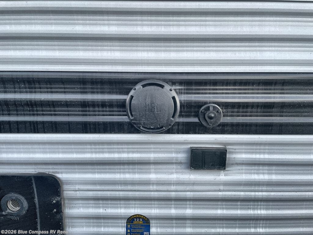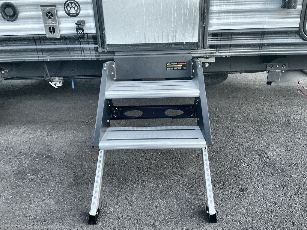 Spacious and versatile, this travel trailer is perfect for getaways to the campground or relaxing escapes by the lake! There is a front Murphy bed with storage on both sides plus a pull-out pet dish to keep your furry friends happy. Your guests or little ones will love the double-size bunks, and the full bath is right next to the bunks for easy nighttime use. Once you make breakfast on the two burner range, you can dine at the booth dinette slide. And this model also includes an outdoor griddle and refrigerator if you want to make breakfast outdoors. Additional exterior features include a 16' power awning, an interior/exterior table, and a pass-thru storage for larger camp gear.