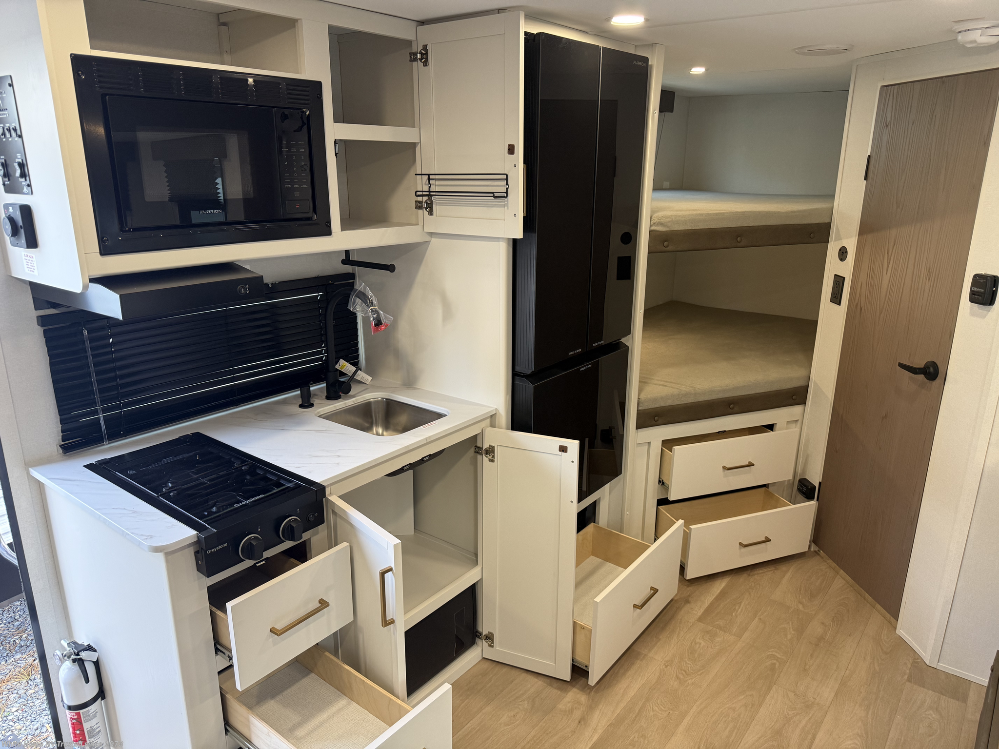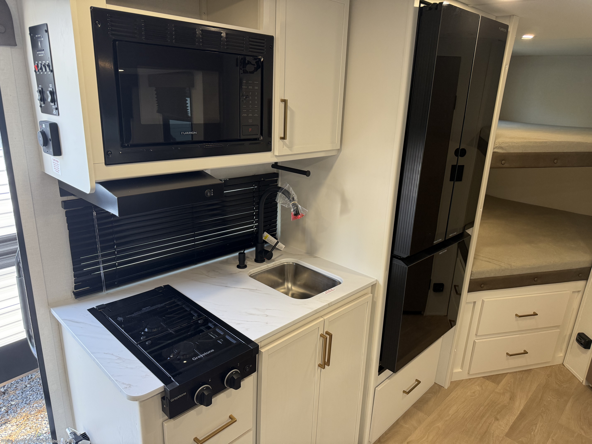 Options and packages listed reflect manufacturer-installed equipment. Package contents and some specifications may vary by unit and should be confirmed with our team. Advertised pricing does not include our RV Essentials Package ($299), documentation fee, sales tax, title, or registration.
