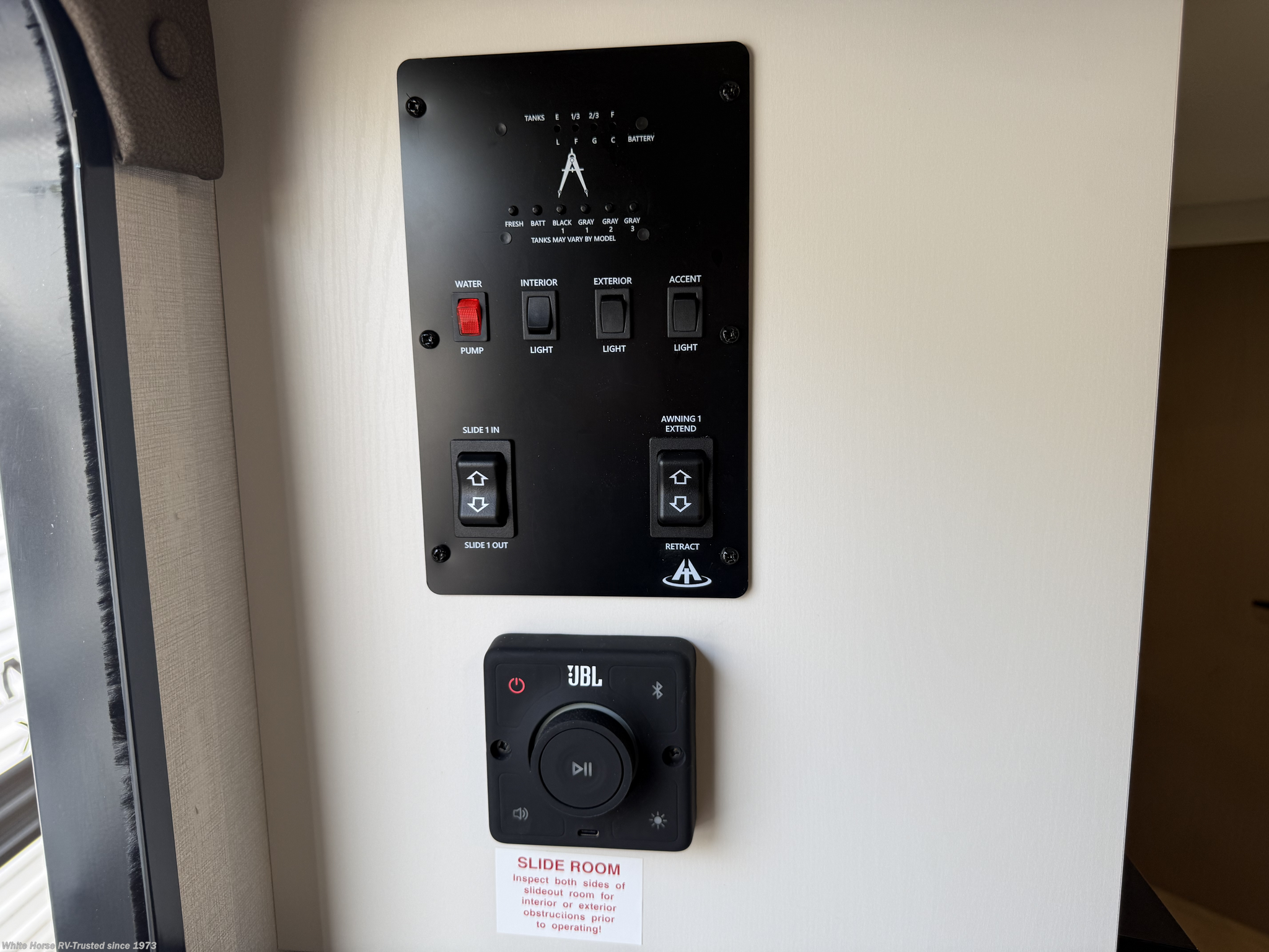 Awning, Black Tank Flush, Detachable, Detachable Power Cord, Enclosed Underbelly, Hitch, Ladder, Power Awning, Tinted Windows -