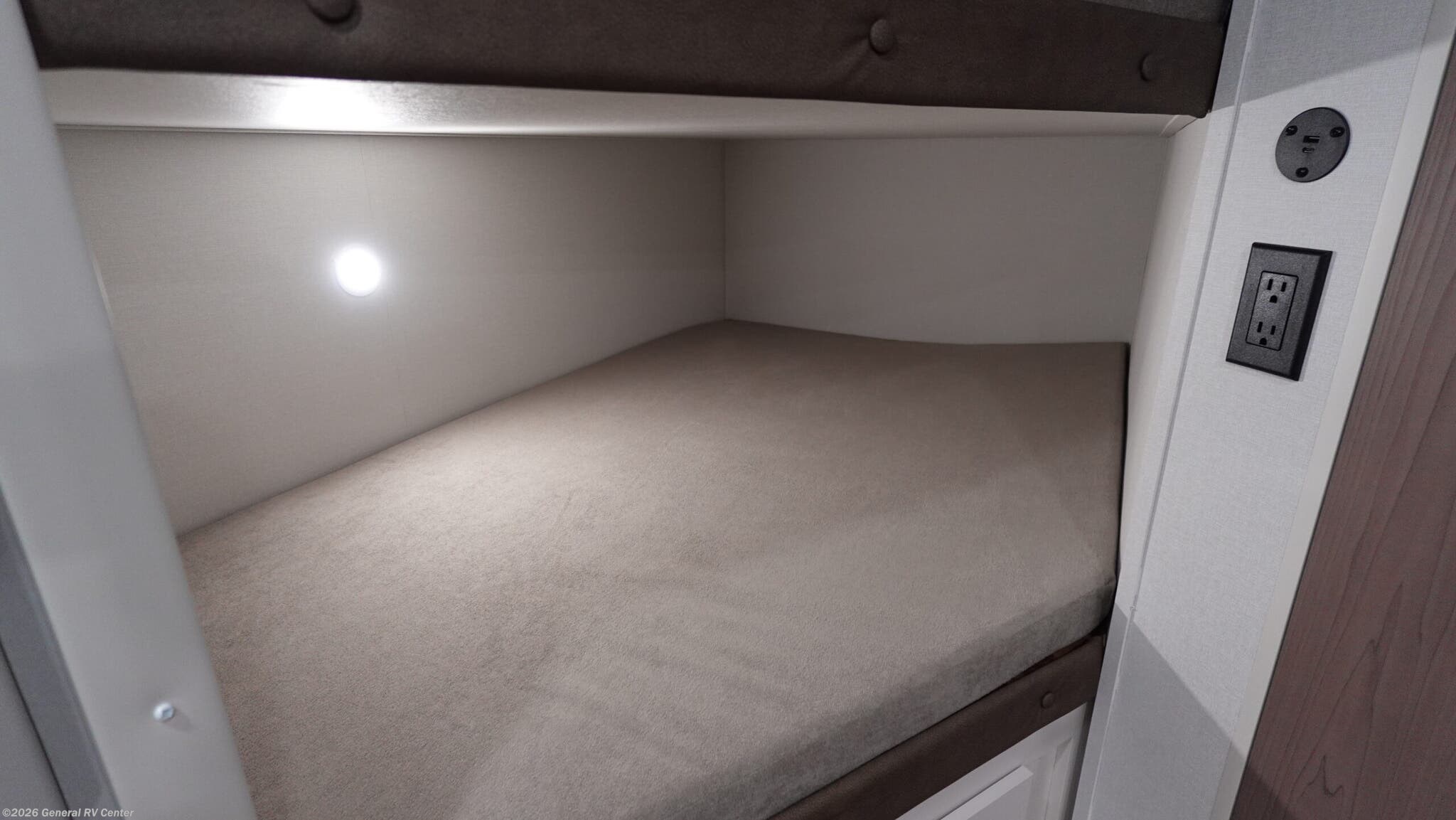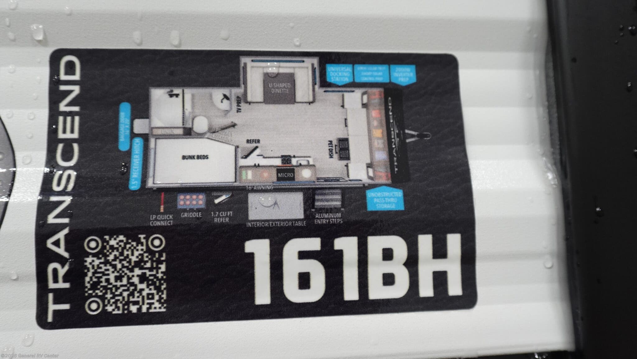 Experience the perfect blend of comfort and adventure with the 2026 Grand Design Transcend One 161BH. This compact yet spacious travel trailer is designed for families who crave both convenience and style on the road. With a length of 23 feet, it offers a cozy haven featuring a versatile Murphy bed, allowing you to maximize living space without sacrificing comfort. The bunk beds are perfect for the kids, and the booth dinette provides a great spot for family meals or game nights. The Transcend One 161BH is equipped with thoughtful amenities to enhance your camping experience. Enjoy the convenience of a 10 cu ft glass front refrigerator and a functional kitchen with a two-burner cooktop. The 16-foot power awning with Fusion Light creates an inviting outdoor space, perfect for relaxing after a day of exploration. With a 37-gallon fresh water capacity and efficient gas/electric water heater, this RV ensures you have all the essentials for extended adventures. Plus, the unobstructed pass-thru storage offers ample room for all your gear. This travel trailer is not only about comfort but also about efficient design. The single slide-out expands your living area, while the universal docking station and solar prep options make it easy to stay connected wherever you roam. Whether you're setting up camp in the mountains or by the beach, the Grand Design Transcend One 161BH is your ticket to unforgettable family memories. For more information or to see this model in person, visit your nearest General RV dealership.