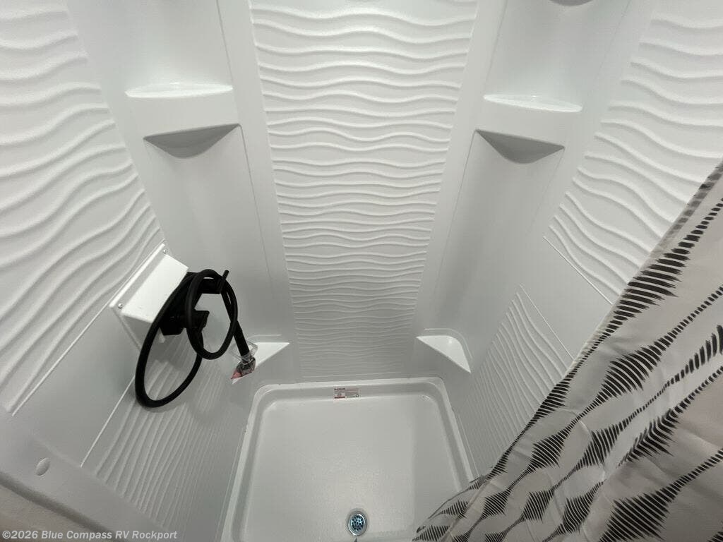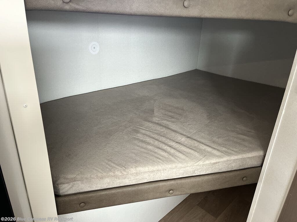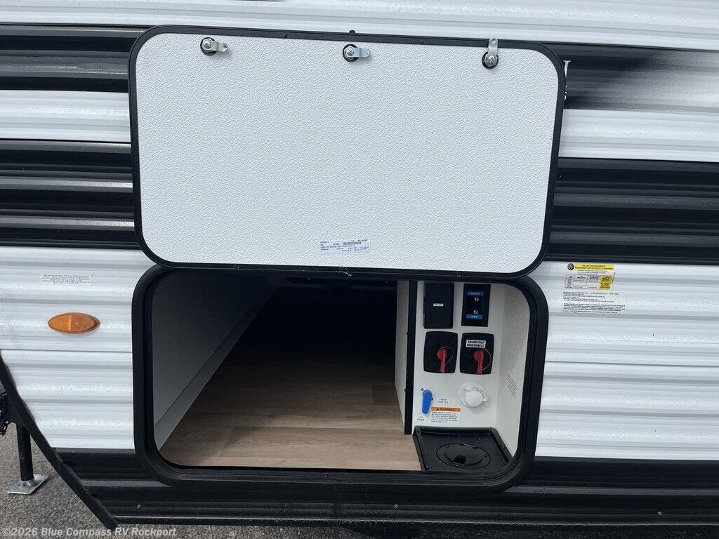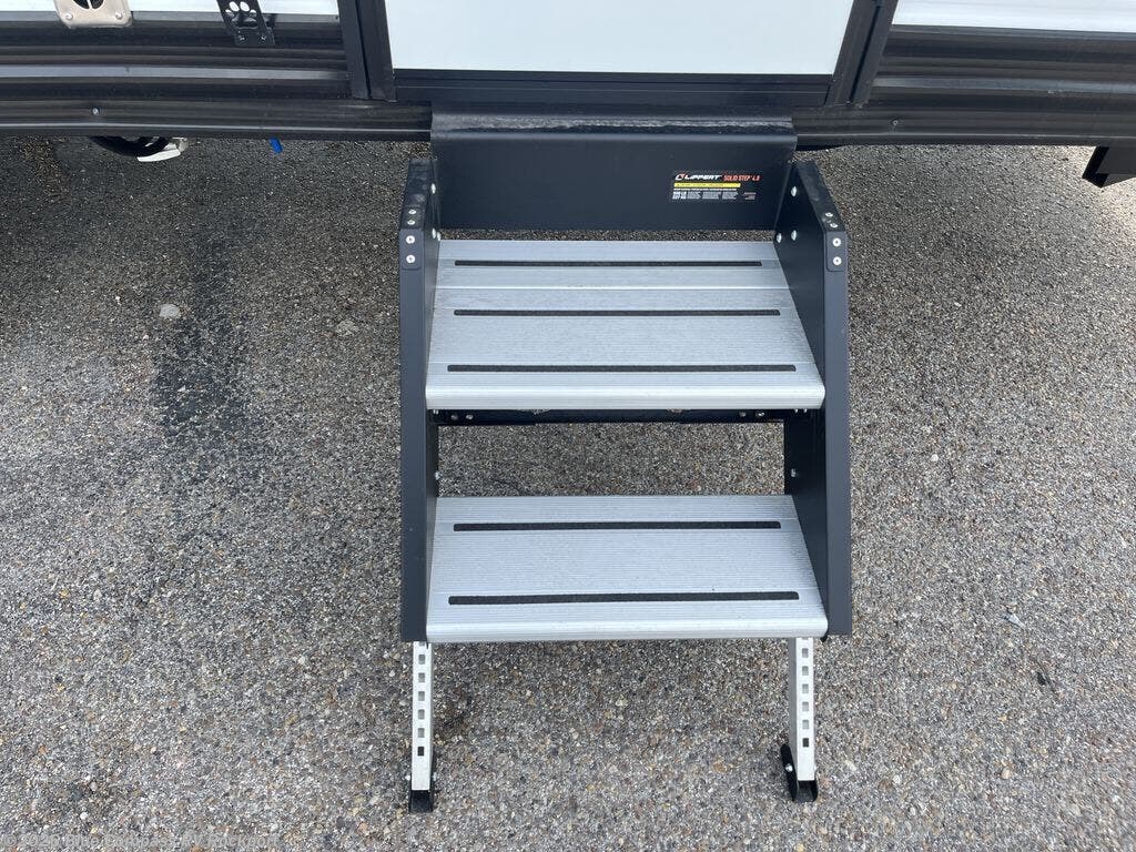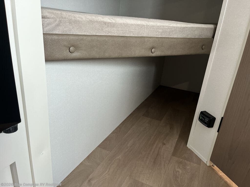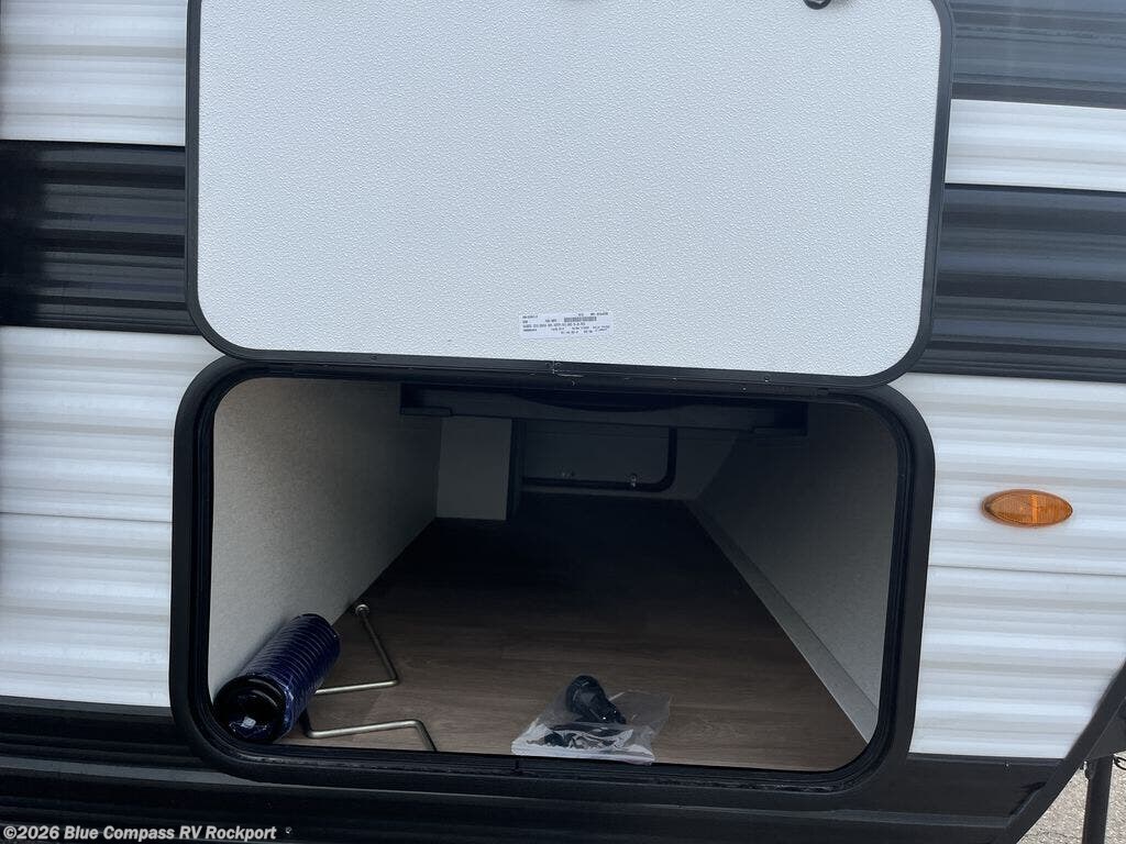 This travel trailer is perfect for getaways to the campground or relaxing escapes by the lake! There is a front queen bed with generous storage both above and below. Your guests or little ones will love the double-size bunks, and the full bath is right next to the bunks for easy nighttime use. Once you make breakfast on the two-burner range, you can dine at the booth dinette slide. An interior/exterior table provides more dining space when you need it, and a 15' power awning with a fusion light lets you stay up late to visit with friends!