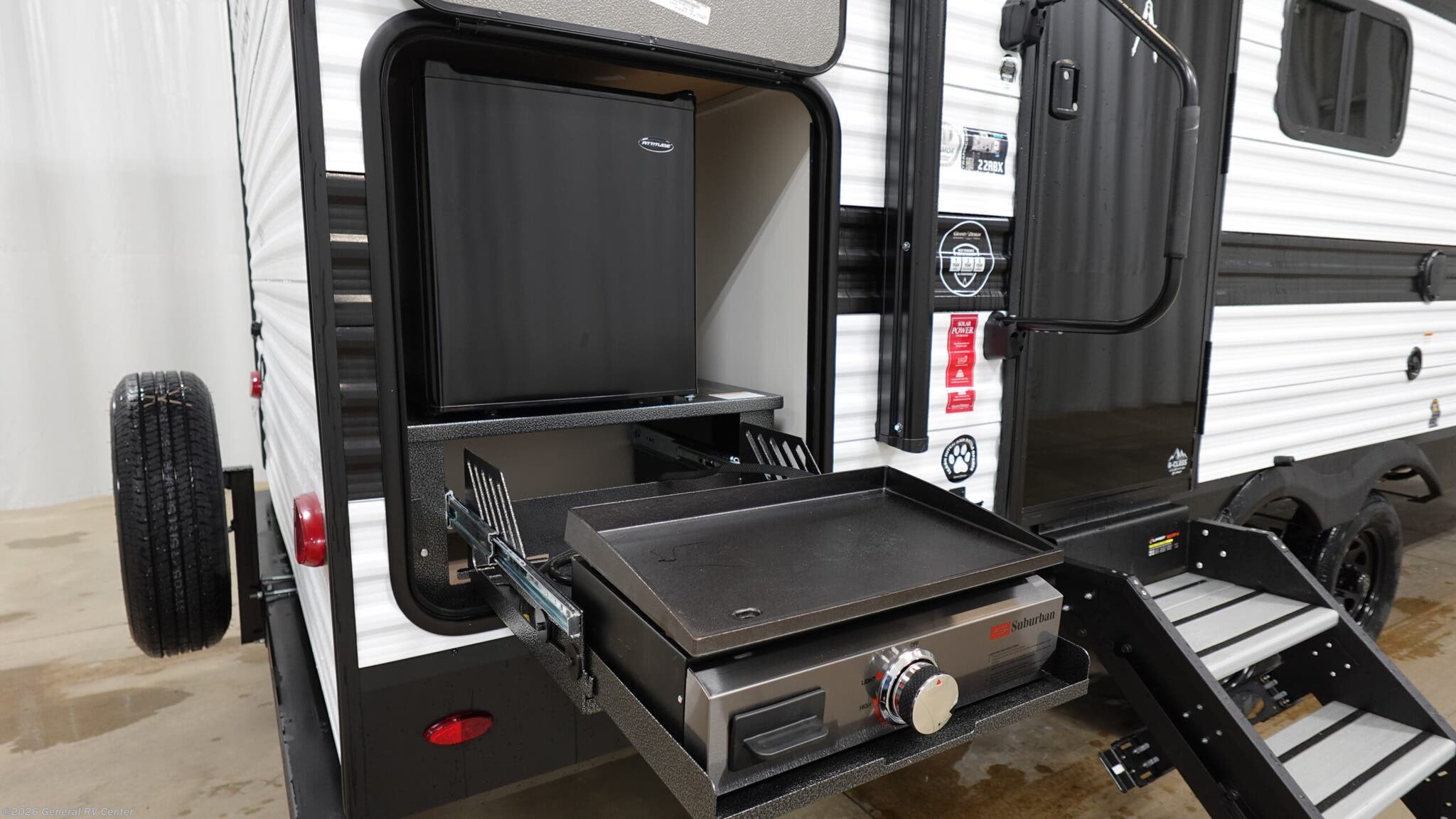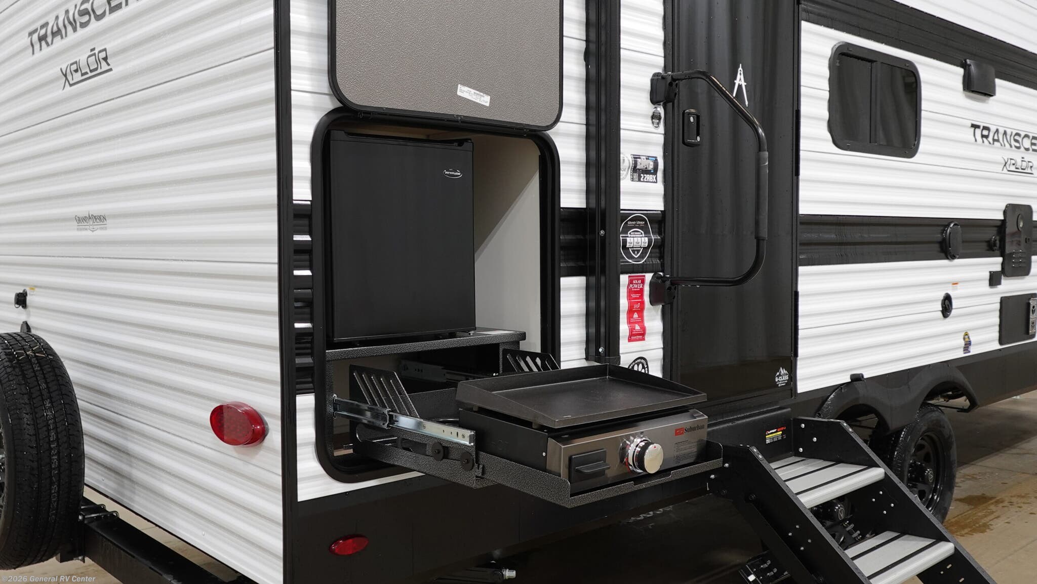 Grand Design Transcend Xplor travel trailer 22RBX highlights: Full Rear Bath Pull-Out Trash Can Exterior Griddle Front Private Bedroom Pack your bags and head for the campground in this spacious travel trailer! Once you arrive, you can unload the pass-thru storage, then make lunch on the exterior griddle with a 1.7 cu. ft. exterior refrigerator. The U-shaped dinette slide will provide a place to dine if you decide not to stay outside under the 16' power awning. Optional theater seats can be chosen in place of the dinette for even more comfort! You'll sleep soundly on the queen bed in the front bedroom, and the full rear bath lets you freshen up each day. The customer-focused, quality-built Transcend Xplor travel trailers by Grand Design are your ticket to fun and adventure. You will appreciate the power tongue jack when it comes time to set up, as well as the all-in-one utility center and the detachable power cord with an LED light. These models include many outlets throughout, USB ports to charge your gadgets, and a JBL exterior speaker to listen to your favorite tunes. The interior of the Transcend Xplor will have you feeling right at home with upgraded residential furniture, residential countertops, residential cabinet doors, and the list goes on!