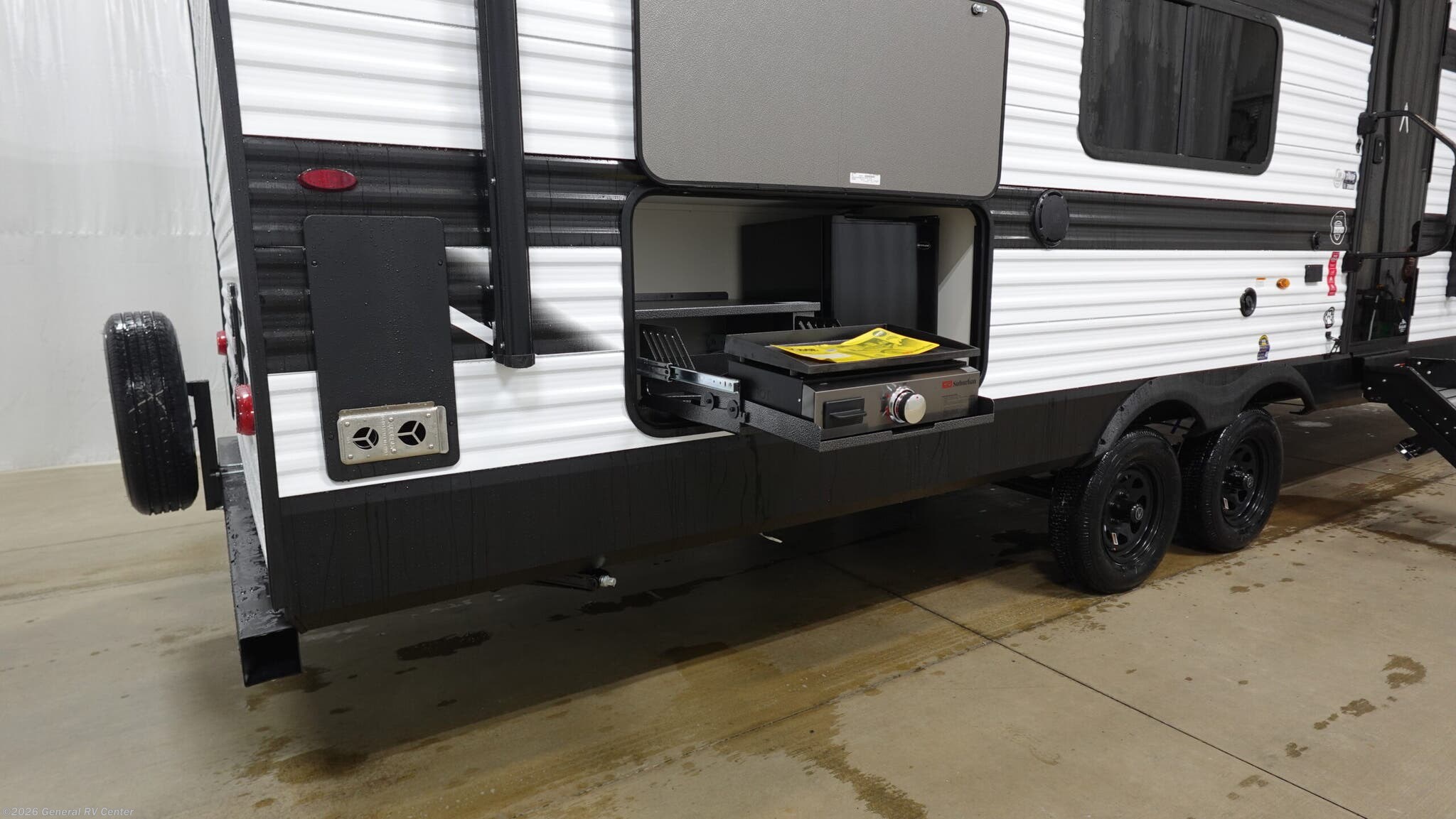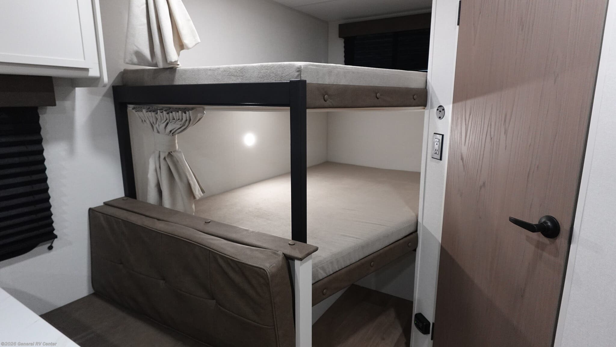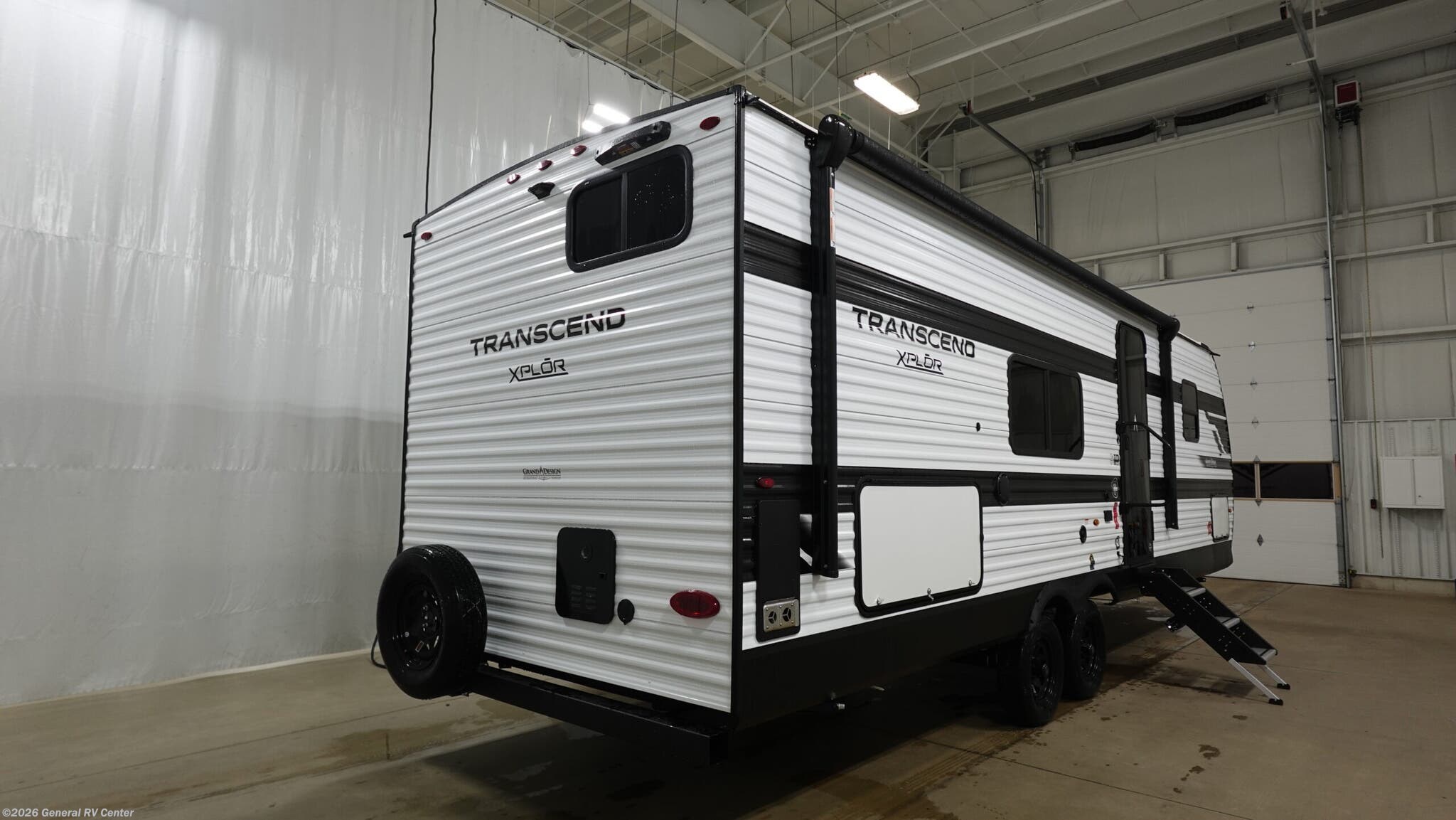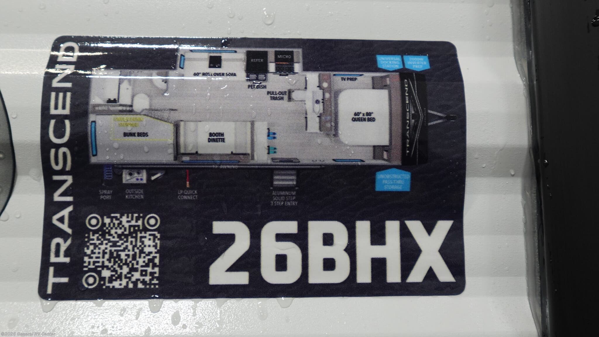 Discover the 2026 Grand Design Transcend Xplor 26BHX, a travel trailer that effortlessly combines style, comfort, and functionality for your adventures. With a length of just over 30 feet, this RV is designed to accommodate up to 10 sleepers, making it perfect for family trips or gatherings with friends. The front bedroom features a cozy queen bed, ensuring restful nights, while the bunkhouse at the rear provides additional sleeping space with double beds. The versatile convertible seating options, including a booth dinette and a 60" roll-over sofa, offer both relaxation and extra sleeping capacity. The center kitchen is equipped with a full-size electric refrigerator and a three-burner cooktop, making meal preparation a breeze. Enjoy the convenience of the outside kitchen for alfresco dining under the 17-foot powered retractable awning. The thoughtfully designed floorplan includes a rear bath with a shower curtain, ensuring privacy and comfort. With ample storage options, including under-bunk storage and unobstructed pass-thru storage, you'll have plenty of room for all your gear. Plus, the 2000W inverter prep and universal docking station enhance your camping experience with modern conveniences. Whether you're exploring the countryside or setting up at a favorite campsite, the Transcend Xplor 26BHX is your ideal home on wheels. For more details or to experience this RV firsthand, visit your nearest General RV Dealership.