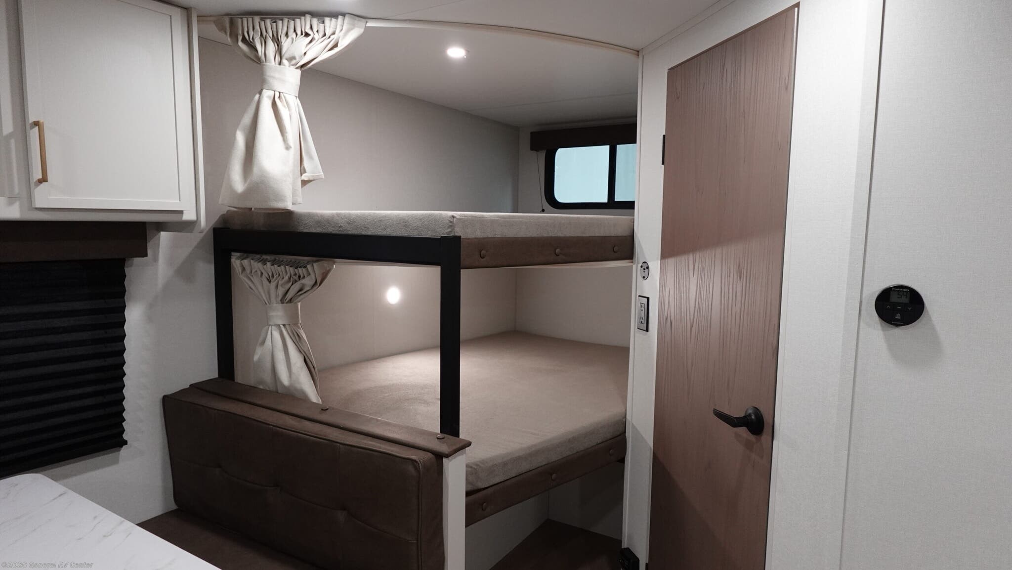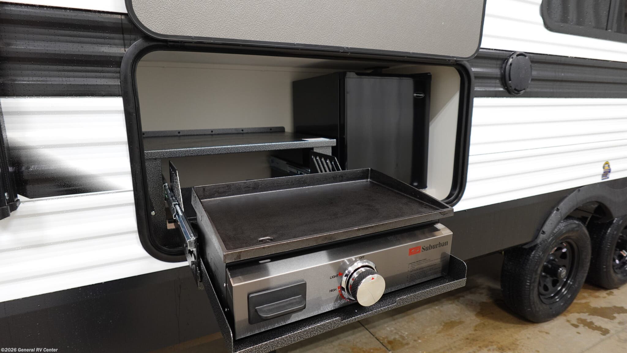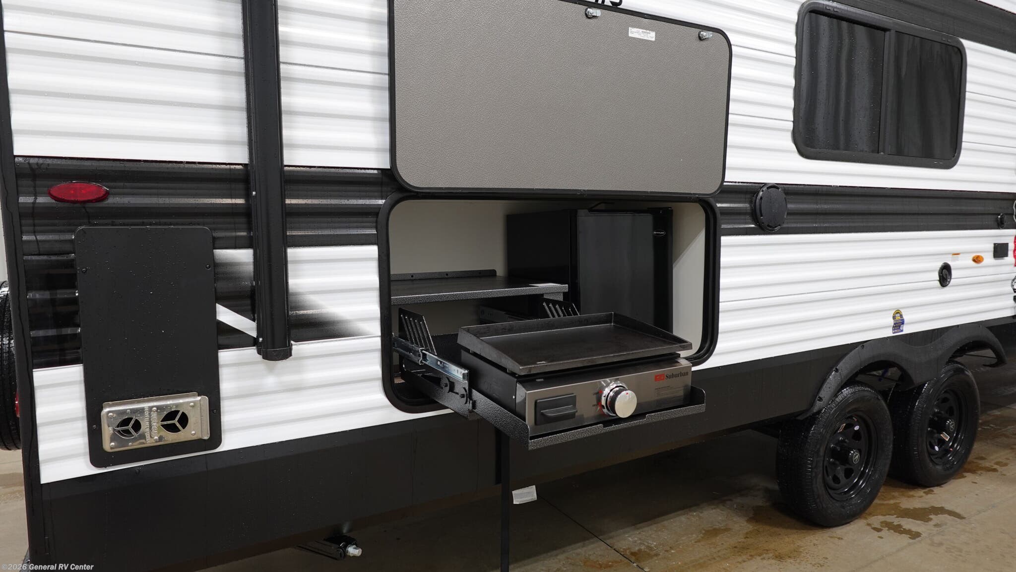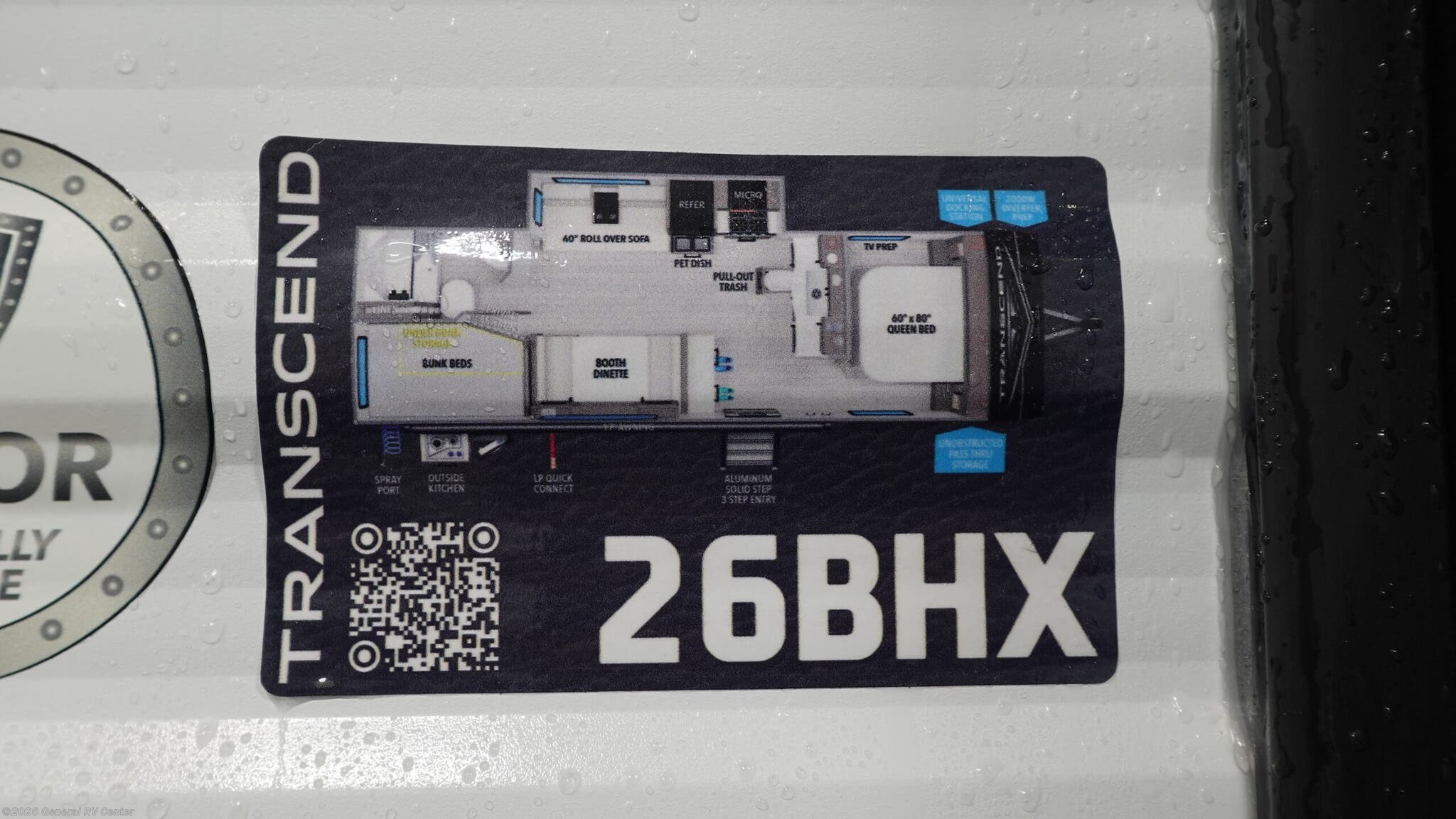 Discover the 2026 Grand Design Transcend Xplor 26BHX, a travel trailer that effortlessly combines style, comfort, and functionality for your adventures. With a length of just over 30 feet, this RV is designed to accommodate up to 10 sleepers, making it perfect for family trips or gatherings with friends. The front bedroom features a cozy queen bed, ensuring restful nights, while the bunkhouse at the rear provides additional sleeping space with double beds. The versatile convertible seating options, including a booth dinette and a 60" roll-over sofa, offer both relaxation and extra sleeping capacity. The center kitchen is equipped with a full-size electric refrigerator and a three-burner cooktop, making meal preparation a breeze. Enjoy the convenience of the outside kitchen for alfresco dining under the 17-foot powered retractable awning. The thoughtfully designed floorplan includes a rear bath with a shower curtain, ensuring privacy and comfort. With ample storage options, including under-bunk storage and unobstructed pass-thru storage, you'll have plenty of room for all your gear. Plus, the 2000W inverter prep and universal docking station enhance your camping experience with modern conveniences. Whether you're exploring the countryside or setting up at a favorite campsite, the Transcend Xplor 26BHX is your ideal home on wheels. For more details or to experience this RV firsthand, visit your nearest General RV Dealership.