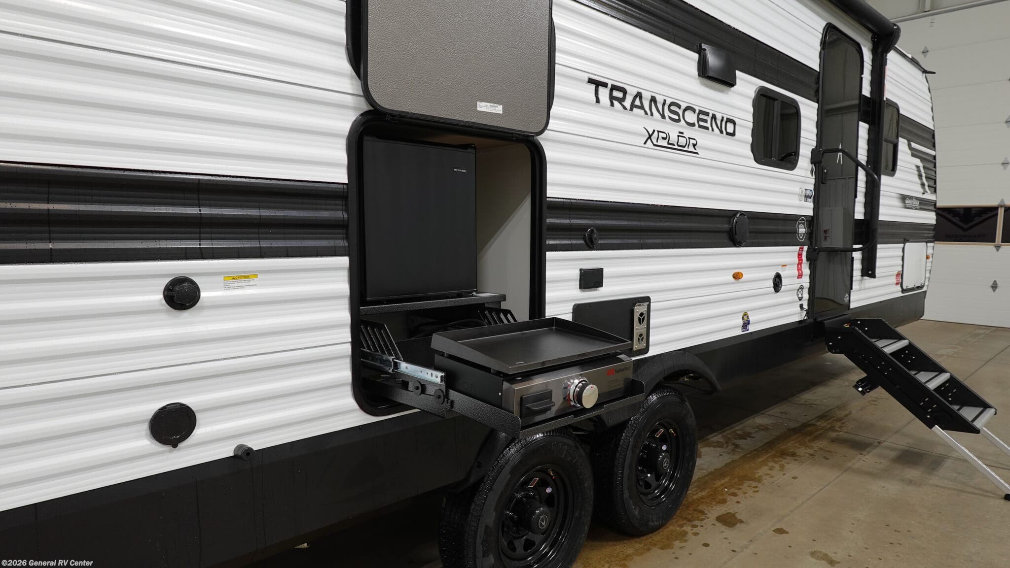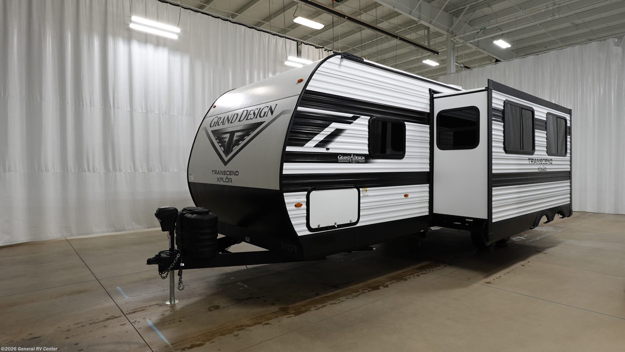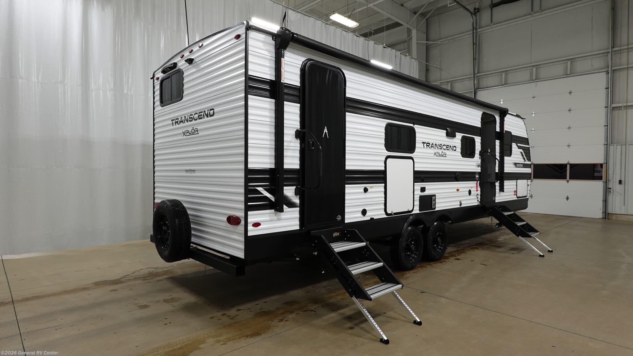 Experience the perfect blend of comfort and adventure with the 2026 Grand Design Transcend Xplor 27DBX. This thoughtfully designed travel trailer boasts a spacious interior, ideal for families or groups of up to eight. The center kitchen and living area provide a welcoming space to gather, featuring a full-size electric refrigerator and a three-burner cooktop for all your culinary needs. The U-shaped dinette and optional theater seating create a cozy atmosphere for meals and relaxation. With a 19 ft. powered retractable awning, you can easily extend your living space outdoors, perfect for enjoying a sunny day or a starry night. The 27DBX floorplan is crafted for convenience and versatility. The front bedroom offers a peaceful retreat with a queen bed, while the bunkhouse at the rear provides ample sleeping space with double beds. The rear bath, equipped with a shower curtain, ensures privacy and ease of use. Storage solutions are plentiful, with pass-thru storage and under-bunk options to keep your belongings organized. Whether you're embarking on a weekend getaway or an extended journey, the Grand Design Transcend Xplor 27DBX promises a seamless and enjoyable experience. For more details, visit your nearest General RV Dealership Location.