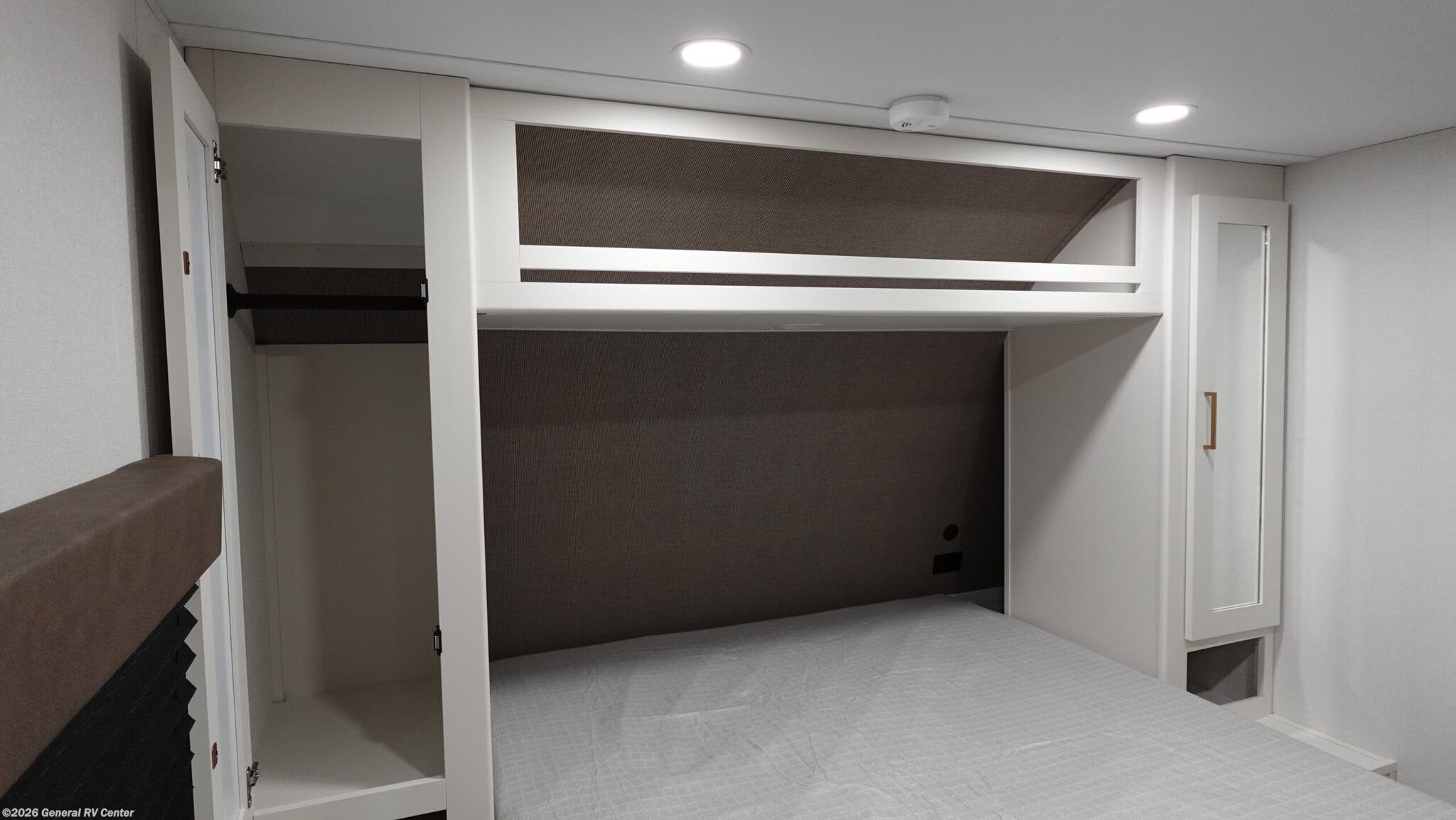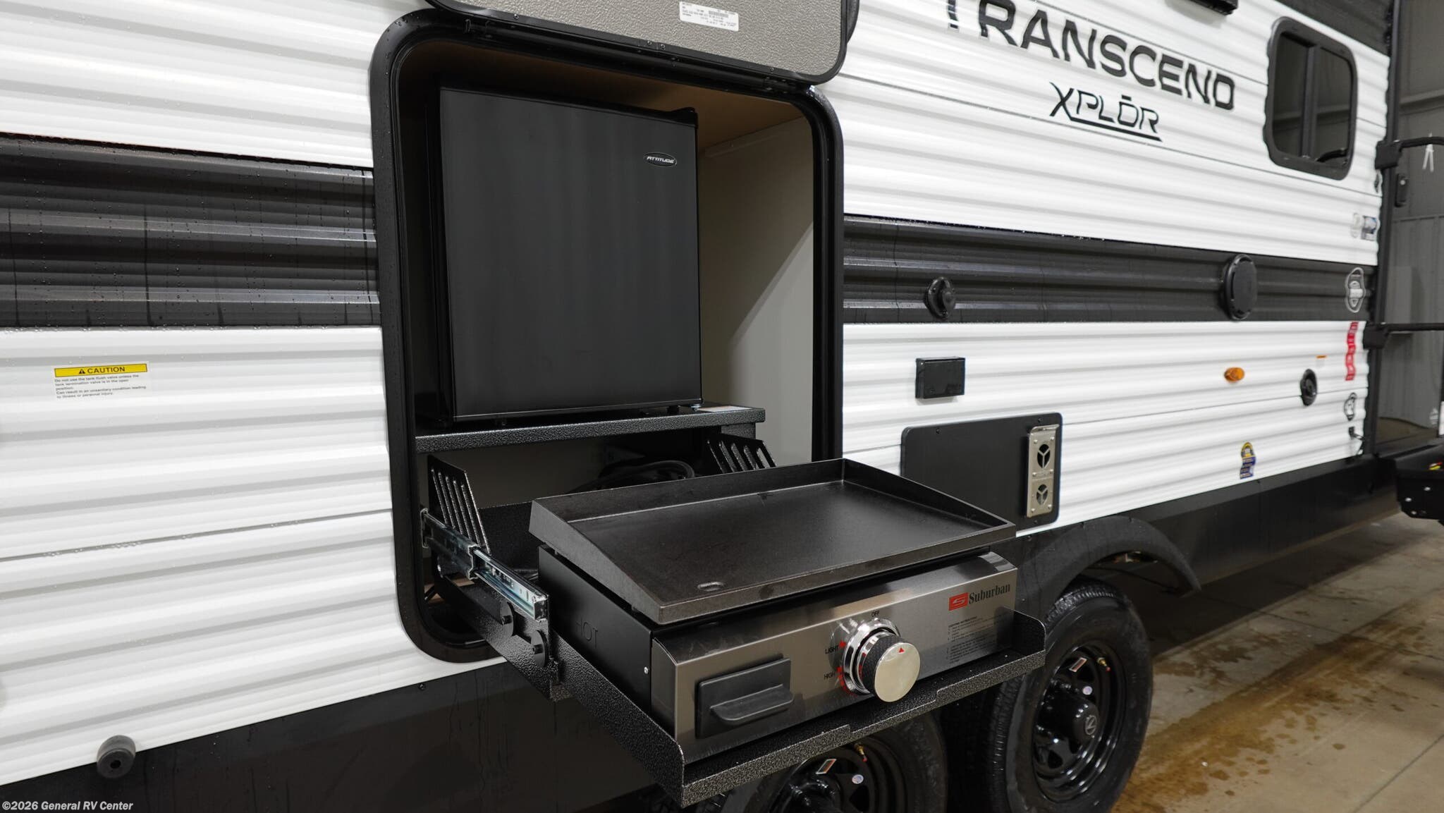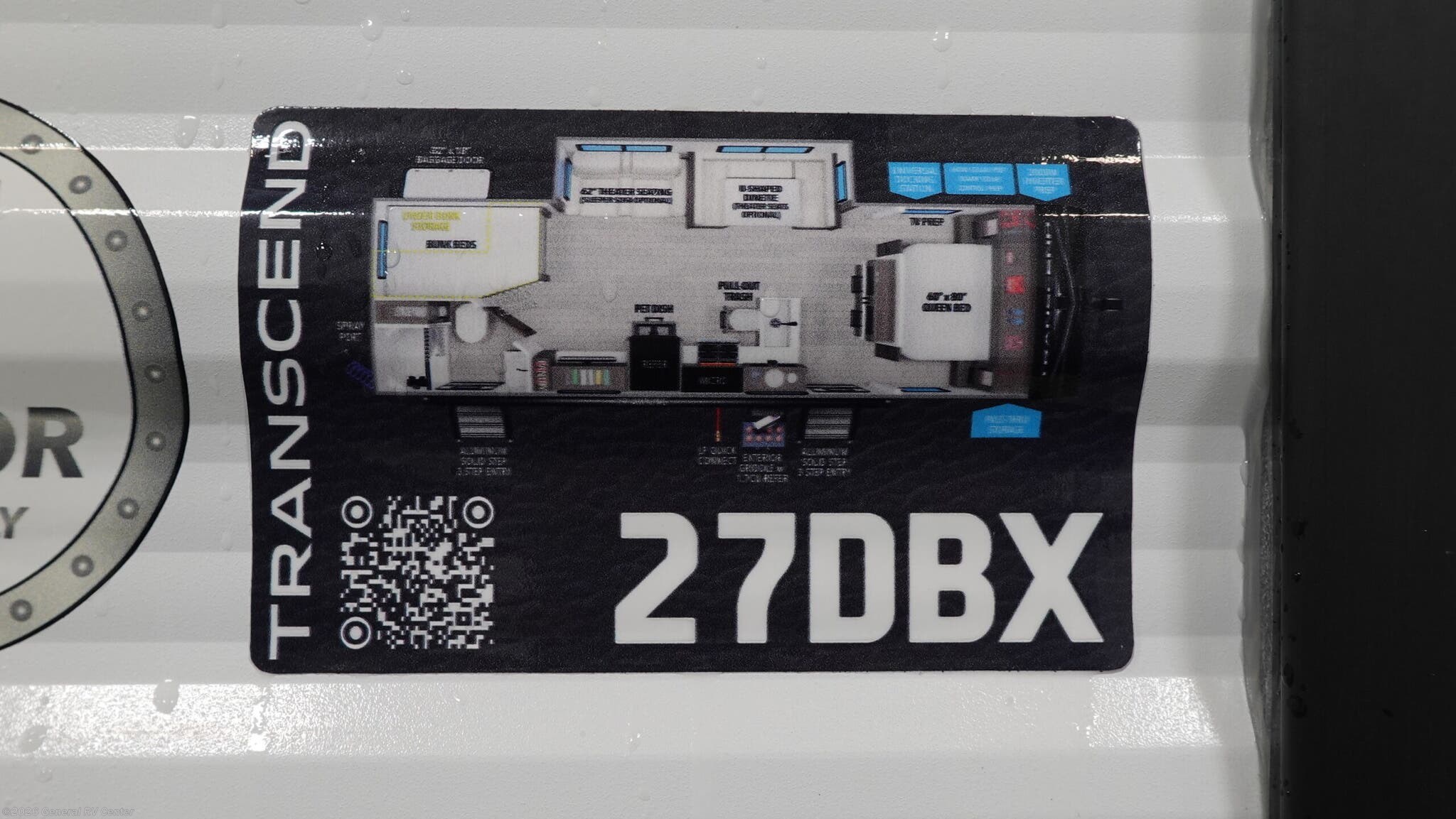 Experience the perfect blend of comfort and adventure with the 2026 Grand Design Transcend Xplor 27DBX. This thoughtfully designed travel trailer boasts a spacious interior, ideal for families or groups of up to eight. The center kitchen and living area provide a welcoming space to gather, featuring a full-size electric refrigerator and a three-burner cooktop for all your culinary needs. The U-shaped dinette and optional theater seating create a cozy atmosphere for meals and relaxation. With a 19 ft. powered retractable awning, you can easily extend your living space outdoors, perfect for enjoying a sunny day or a starry night. The 27DBX floorplan is crafted for convenience and versatility. The front bedroom offers a peaceful retreat with a queen bed, while the bunkhouse at the rear provides ample sleeping space with double beds. The rear bath, equipped with a shower curtain, ensures privacy and ease of use. Storage solutions are plentiful, with pass-thru storage and under-bunk options to keep your belongings organized. Whether you're embarking on a weekend getaway or an extended journey, the Grand Design Transcend Xplor 27DBX promises a seamless and enjoyable experience. For more details, visit your nearest General RV Dealership Location.