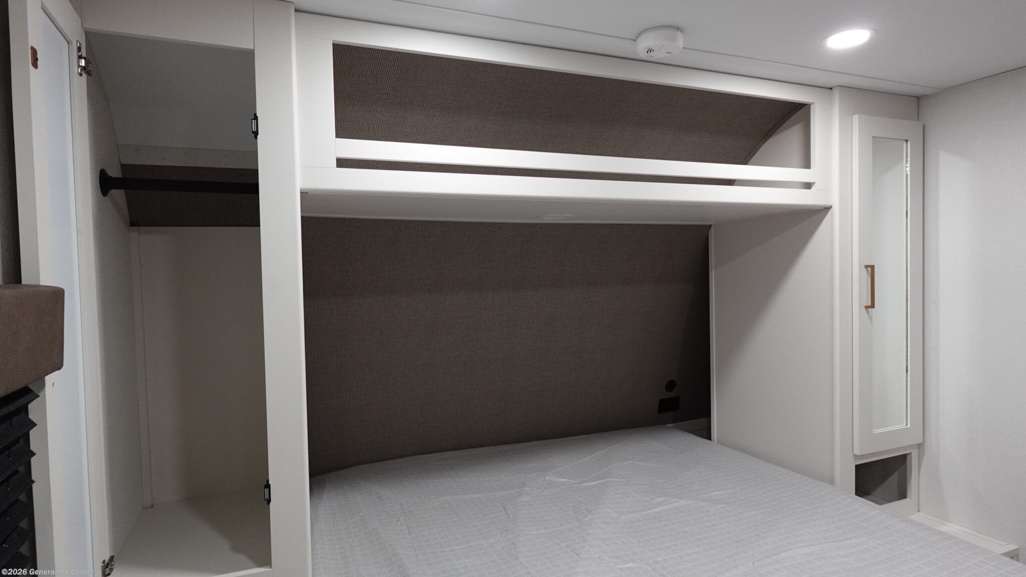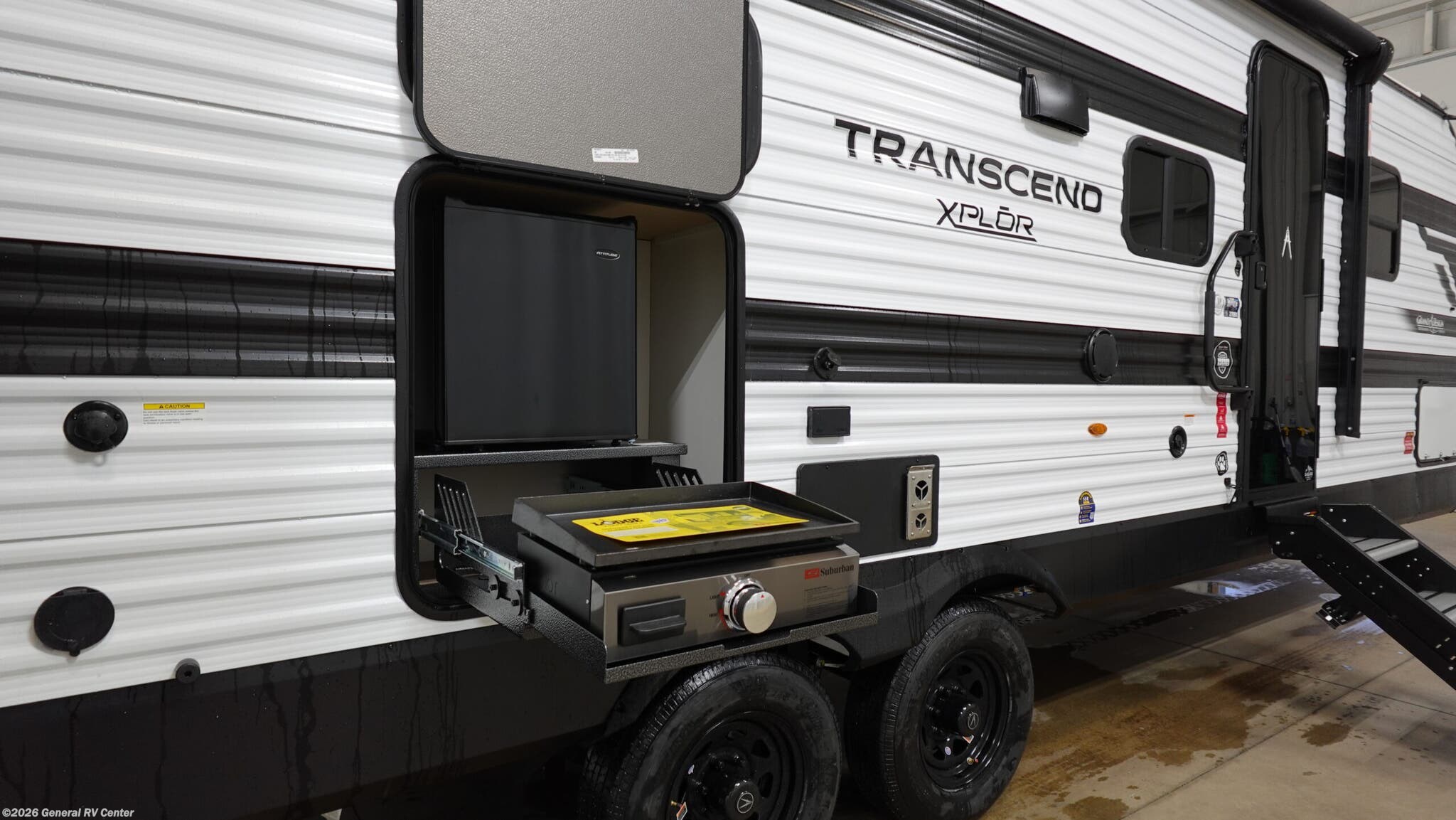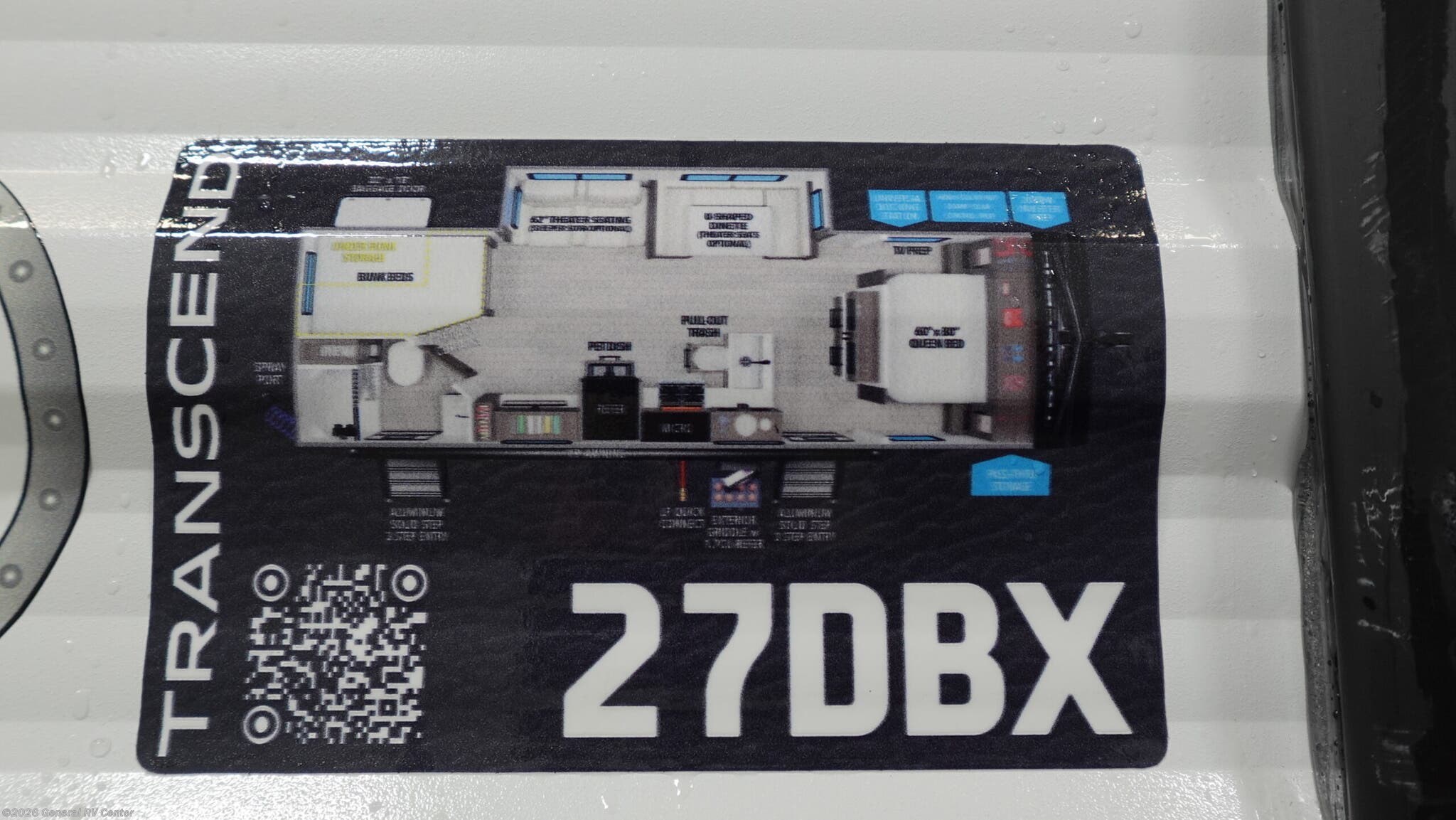 Experience the perfect blend of comfort and adventure with the 2026 Grand Design Transcend Xplor 27DBX. This thoughtfully designed travel trailer boasts a spacious interior, ideal for families or groups of up to eight. The center kitchen and living area provide a welcoming space to gather, featuring a full-size electric refrigerator and a three-burner cooktop for all your culinary needs. The U-shaped dinette and optional theater seating create a cozy atmosphere for meals and relaxation. With a 19 ft. powered retractable awning, you can easily extend your living space outdoors, perfect for enjoying a sunny day or a starry night. The 27DBX floorplan is crafted for convenience and versatility. The front bedroom offers a peaceful retreat with a queen bed, while the bunkhouse at the rear provides ample sleeping space with double beds. The rear bath, equipped with a shower curtain, ensures privacy and ease of use. Storage solutions are plentiful, with pass-thru storage and under-bunk options to keep your belongings organized. Whether you're embarking on a weekend getaway or an extended journey, the Grand Design Transcend Xplor 27DBX promises a seamless and enjoyable experience. For more details, visit your nearest General RV Dealership Location.