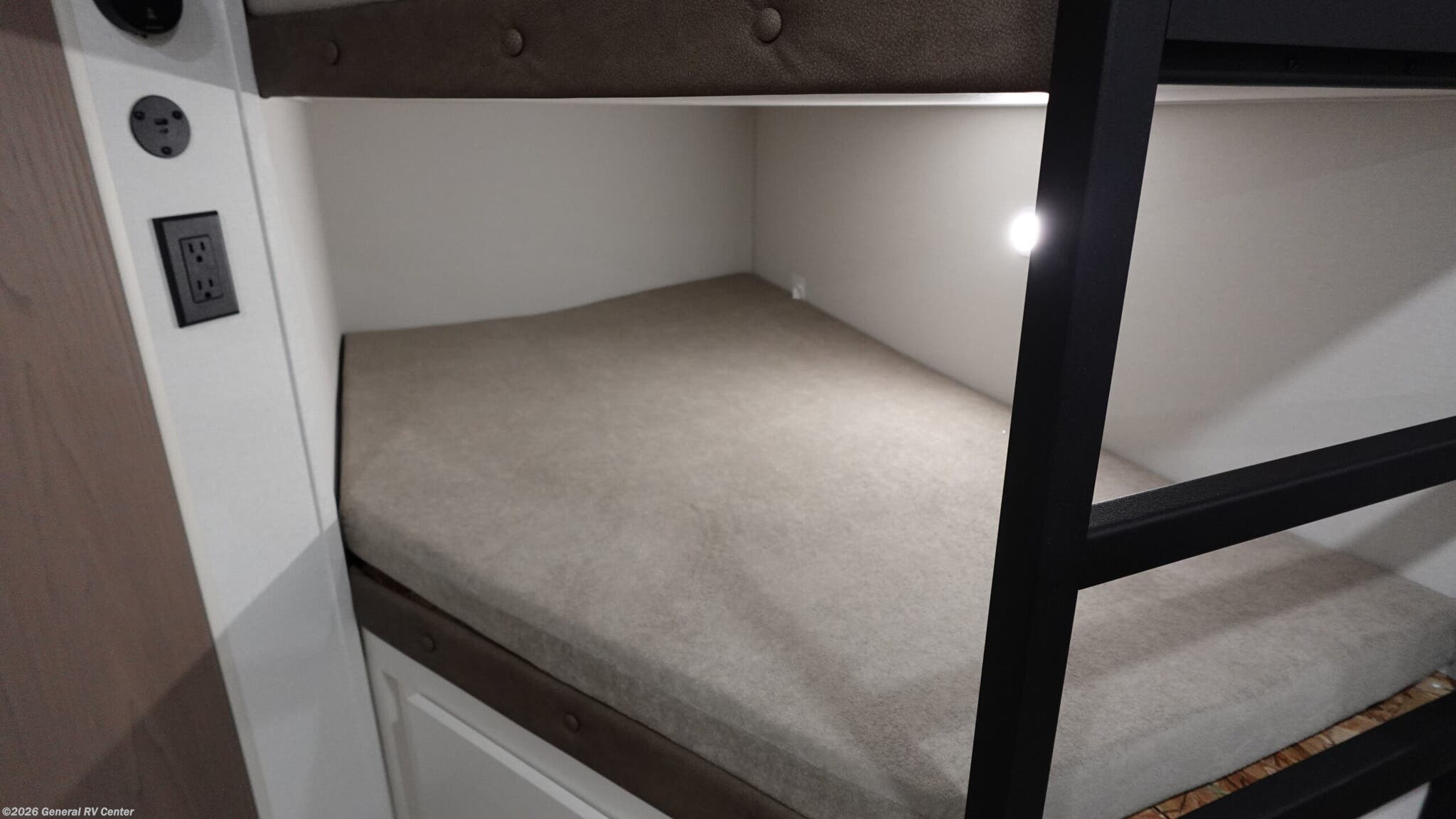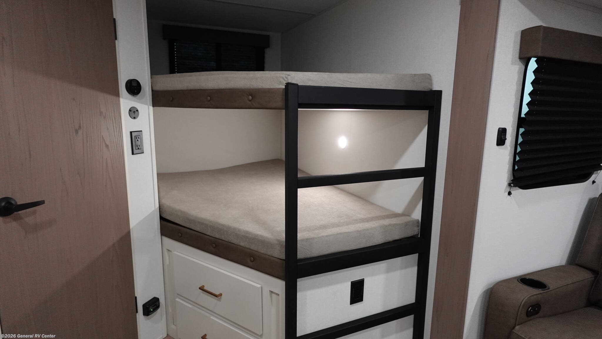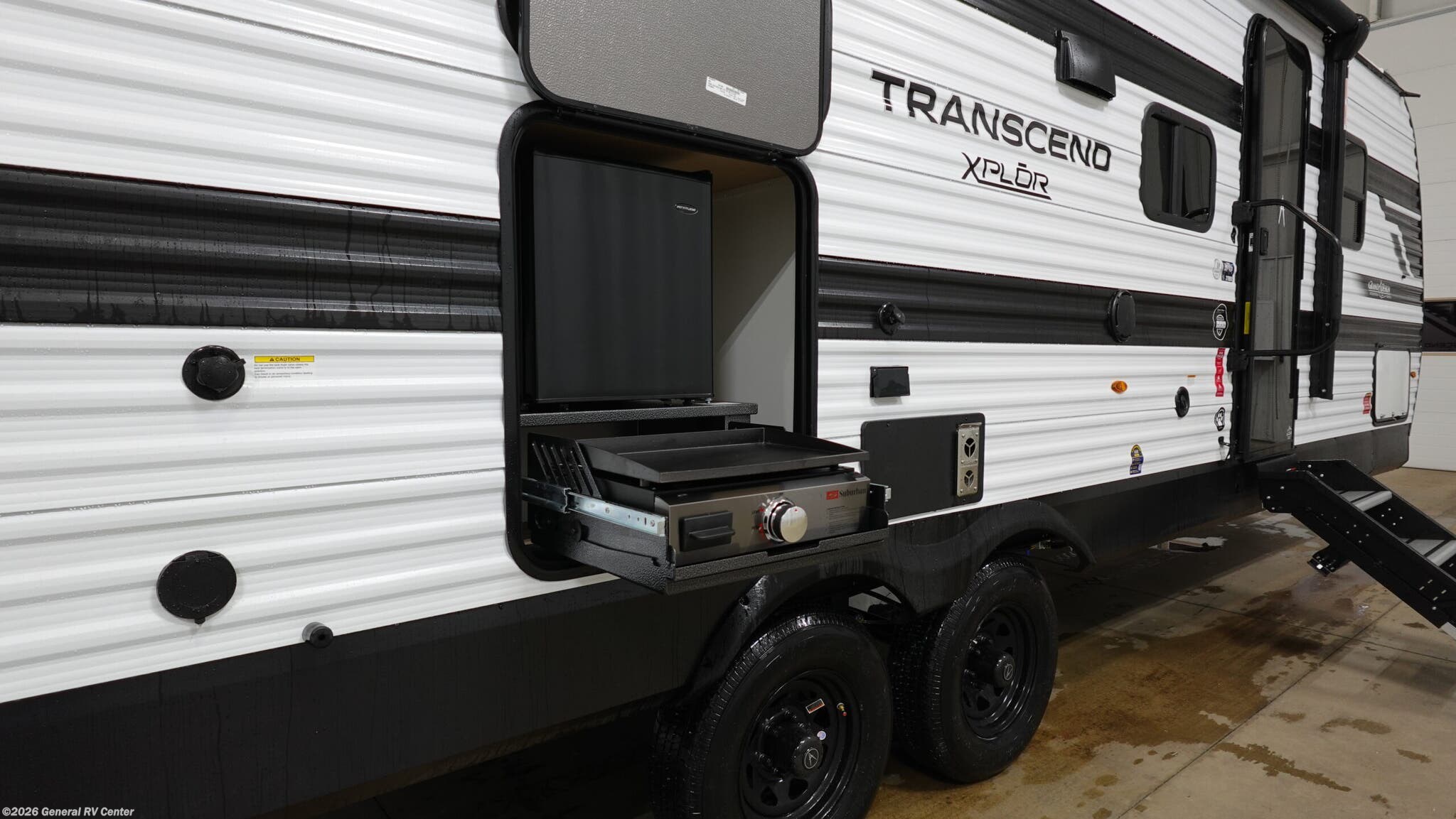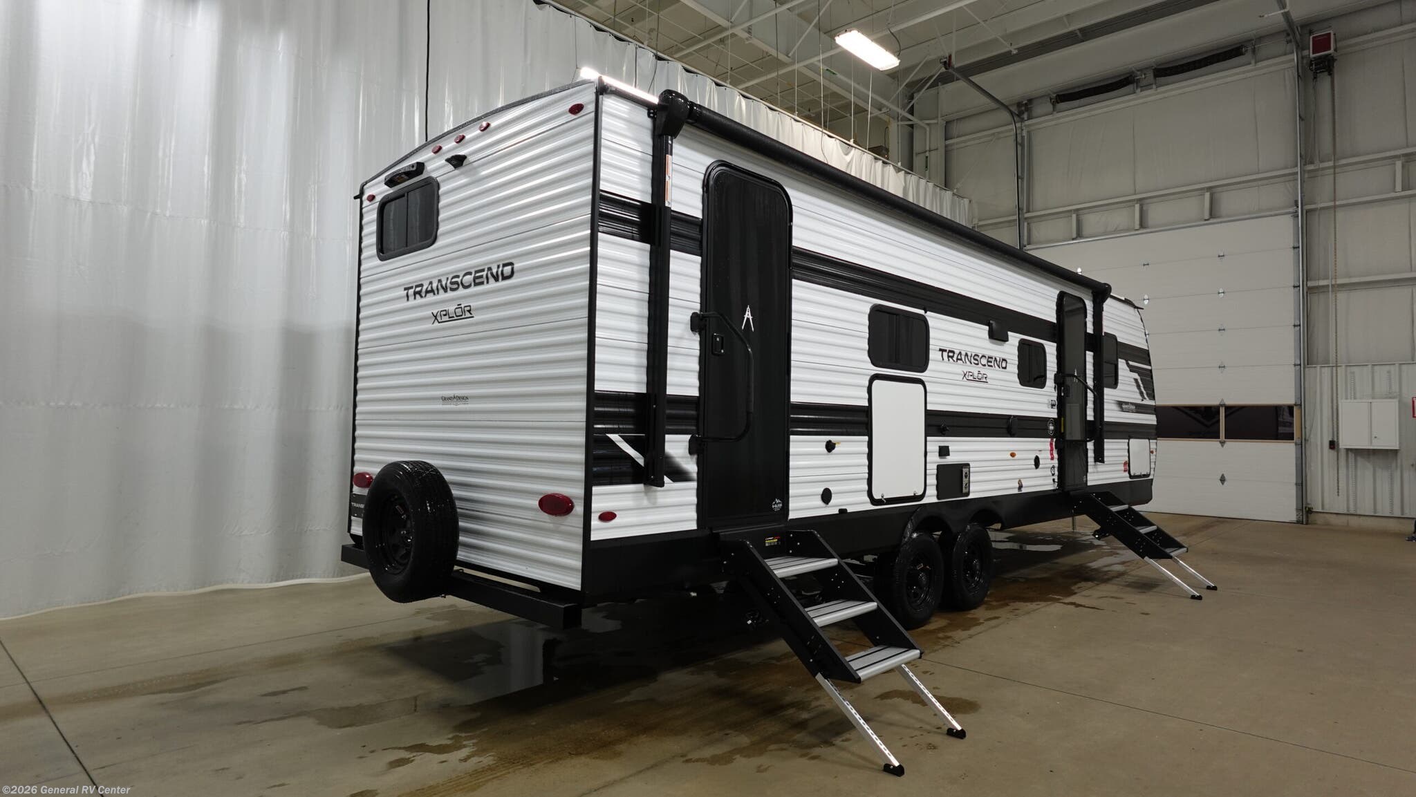 Experience the perfect blend of comfort and adventure with the 2026 Grand Design Transcend Xplor 27DBX. This thoughtfully designed travel trailer boasts a spacious interior, ideal for families or groups of up to eight. The center kitchen and living area provide a welcoming space to gather, featuring a full-size electric refrigerator and a three-burner cooktop for all your culinary needs. The U-shaped dinette and optional theater seating create a cozy atmosphere for meals and relaxation. With a 19 ft. powered retractable awning, you can easily extend your living space outdoors, perfect for enjoying a sunny day or a starry night. The 27DBX floorplan is crafted for convenience and versatility. The front bedroom offers a peaceful retreat with a queen bed, while the bunkhouse at the rear provides ample sleeping space with double beds. The rear bath, equipped with a shower curtain, ensures privacy and ease of use. Storage solutions are plentiful, with pass-thru storage and under-bunk options to keep your belongings organized. Whether you're embarking on a weekend getaway or an extended journey, the Grand Design Transcend Xplor 27DBX promises a seamless and enjoyable experience. For more details, visit your nearest General RV Dealership Location.