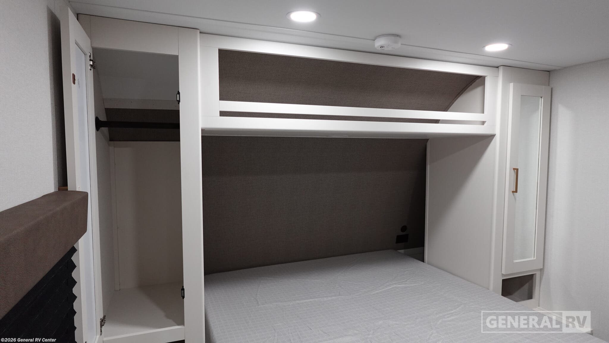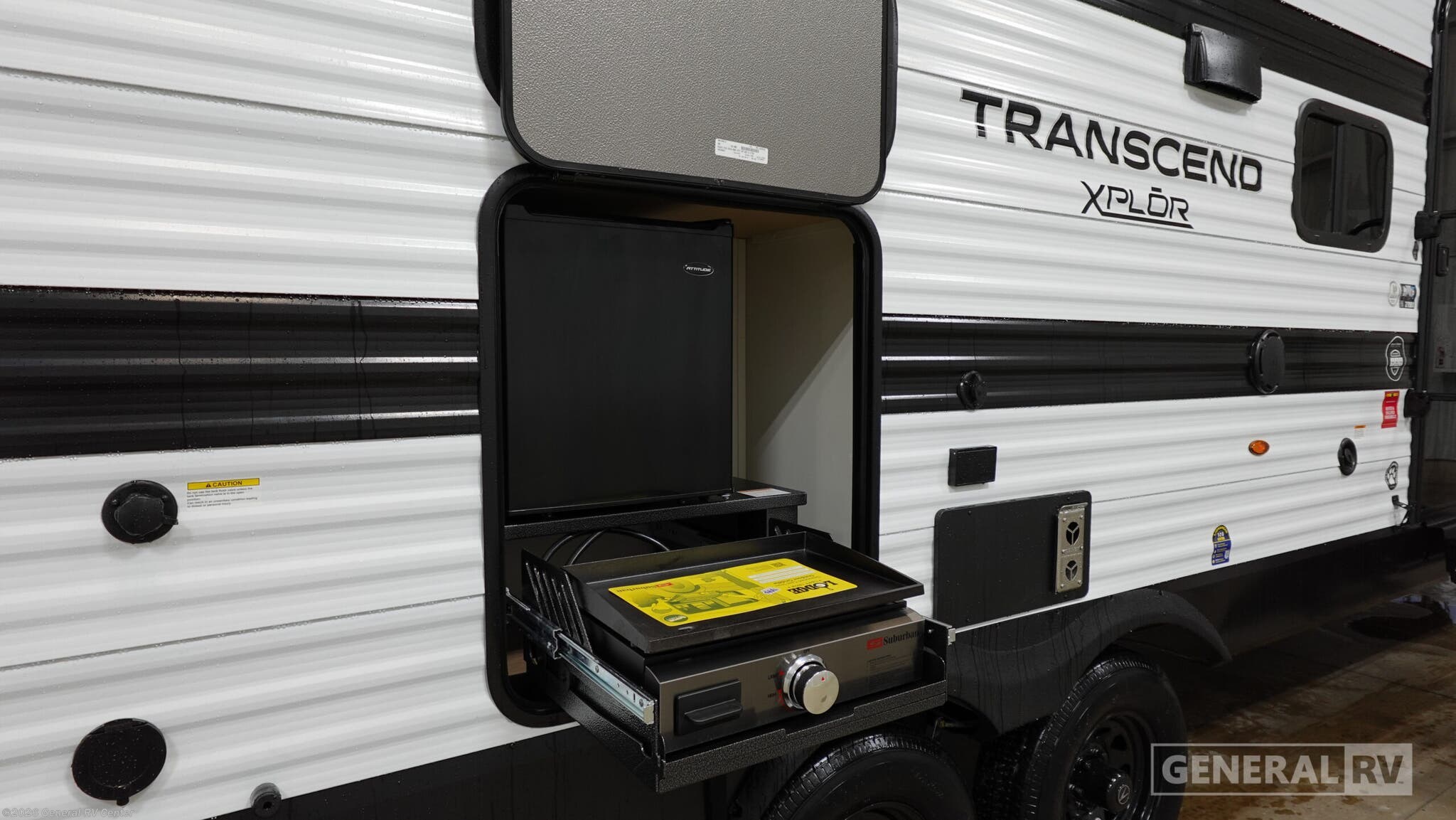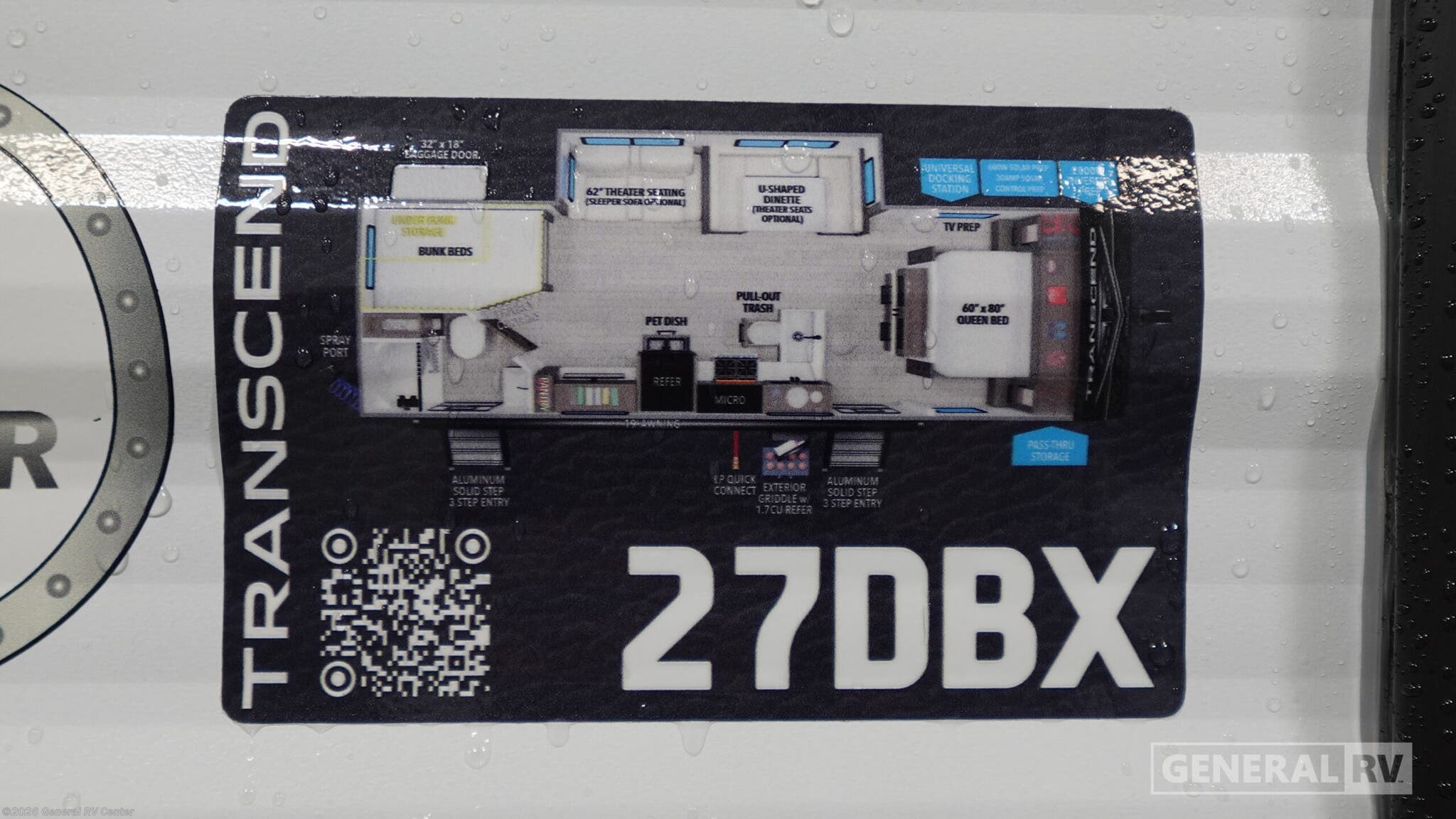 Experience the perfect blend of comfort and adventure with the 2026 Grand Design Transcend Xplor 27DBX. This thoughtfully designed travel trailer boasts a spacious interior, ideal for families or groups of up to eight. The center kitchen and living area provide a welcoming space to gather, featuring a full-size electric refrigerator and a three-burner cooktop for all your culinary needs. The U-shaped dinette and optional theater seating create a cozy atmosphere for meals and relaxation. With a 19 ft. powered retractable awning, you can easily extend your living space outdoors, perfect for enjoying a sunny day or a starry night. The 27DBX floorplan is crafted for convenience and versatility. The front bedroom offers a peaceful retreat with a queen bed, while the bunkhouse at the rear provides ample sleeping space with double beds. The rear bath, equipped with a shower curtain, ensures privacy and ease of use. Storage solutions are plentiful, with pass-thru storage and under-bunk options to keep your belongings organized. Whether you're embarking on a weekend getaway or an extended journey, the Grand Design Transcend Xplor 27DBX promises a seamless and enjoyable experience. For more details, visit your nearest General RV Dealership Location.