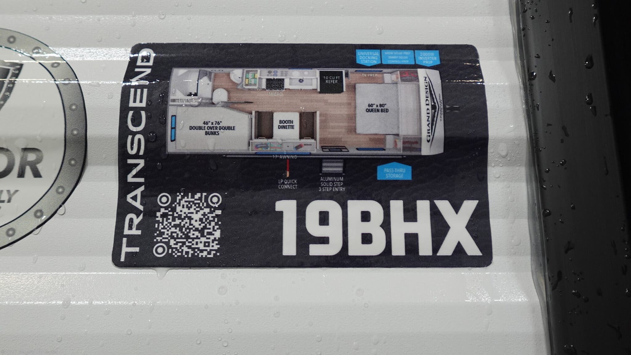 **Grand Design Transcend Xplor travel trailer 19BHX highlights:** - Double-Size Bunks - Pass-Thru Storage - Walk-Around Queen Bed - Pantry Camping trips are made complete in this travel trailer that can sleep seven each night! The little ones or your guest will love sleeping on the double-size bunks, while you take the queen bed in the front semi-private bedroom with a privacy curtain. A three-burner range and microwave oven will let you make meals each day, and a booth dinette provides a place to dine together. There are also convenient features found here, such as a pull-out pet dish and pull-out trash can, and there is ample storage space for your belongings. You will also appreciate the full bath that will let you stay clean throughout your trip without having to leave your trailer! The customer-focused, quality-built Transcend Xplor travel trailers by Grand Design are your ticket to fun and adventure. You will appreciate the power tongue jack when it comes time to set up, as well as the all-in-one utility center and the detachable power cord with an LED light. These models include many outlets throughout, USB ports to charge your gadgets, and a JBL exterior speaker to listen to your favorite tunes. The interior of the Transcend Xplor will have you feeling right at home with upgraded residential furniture, residential countertops, residential cabinet doors, and the list goes on!