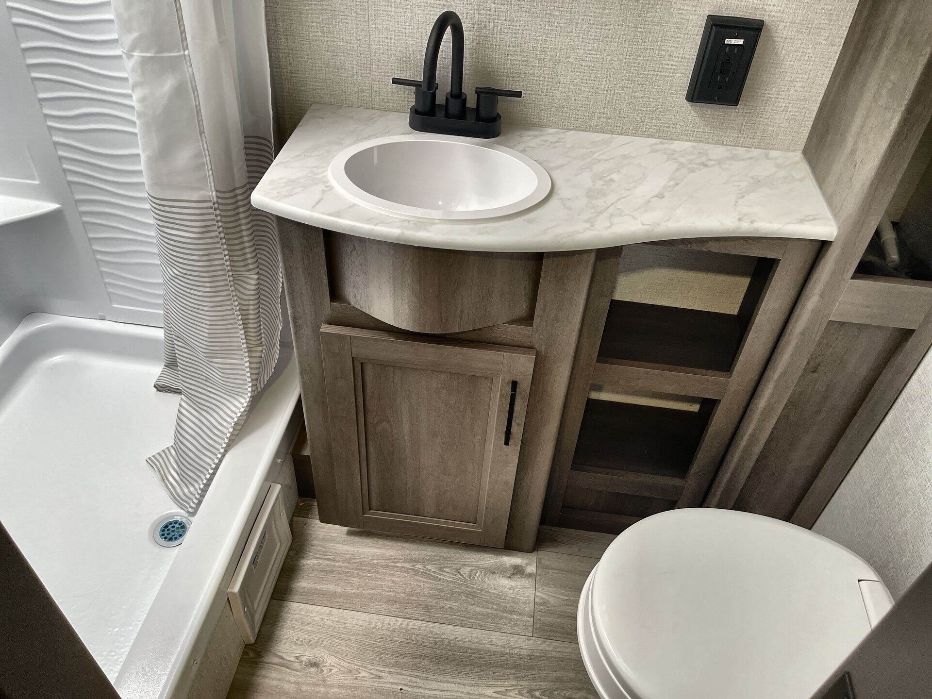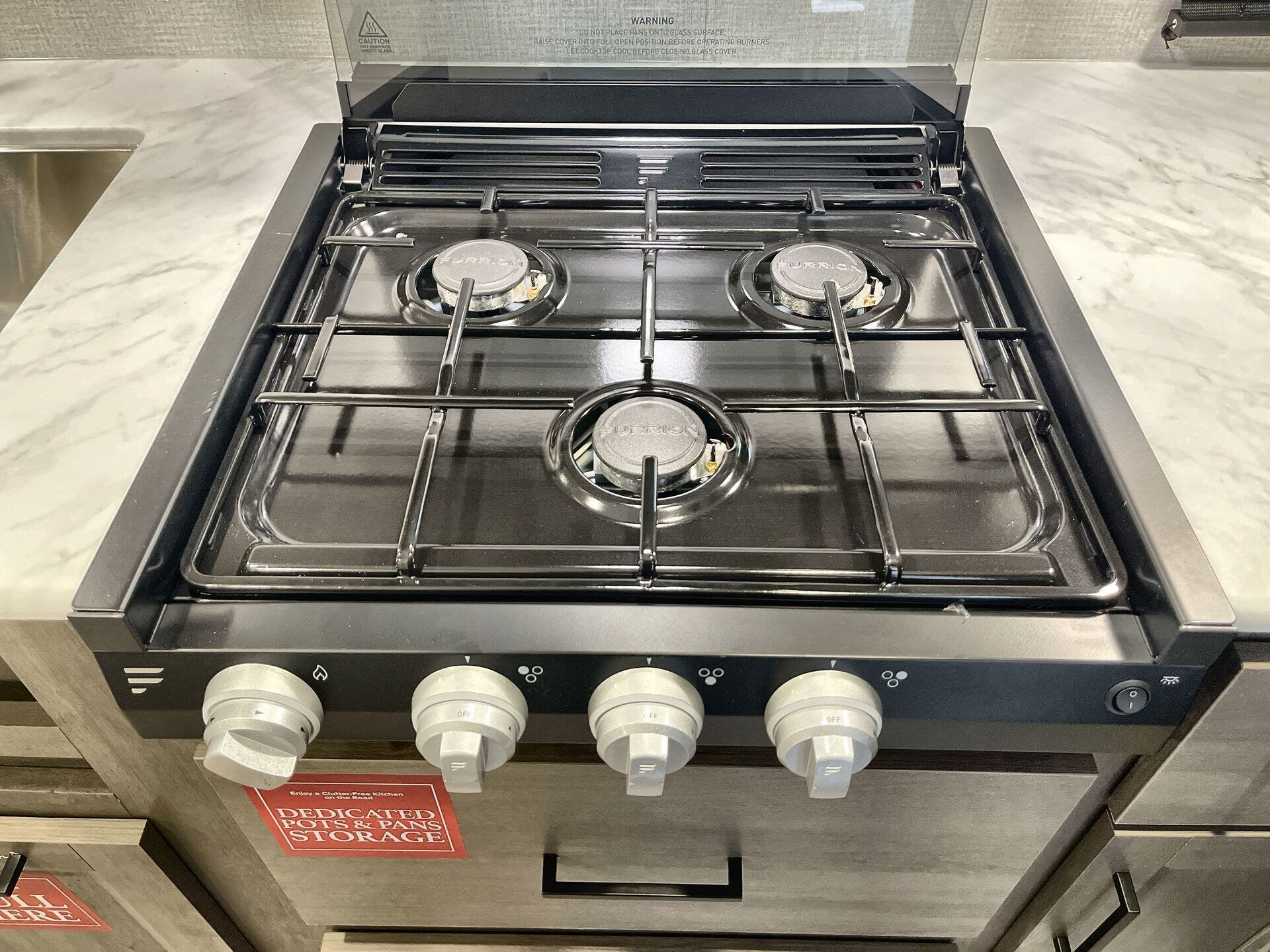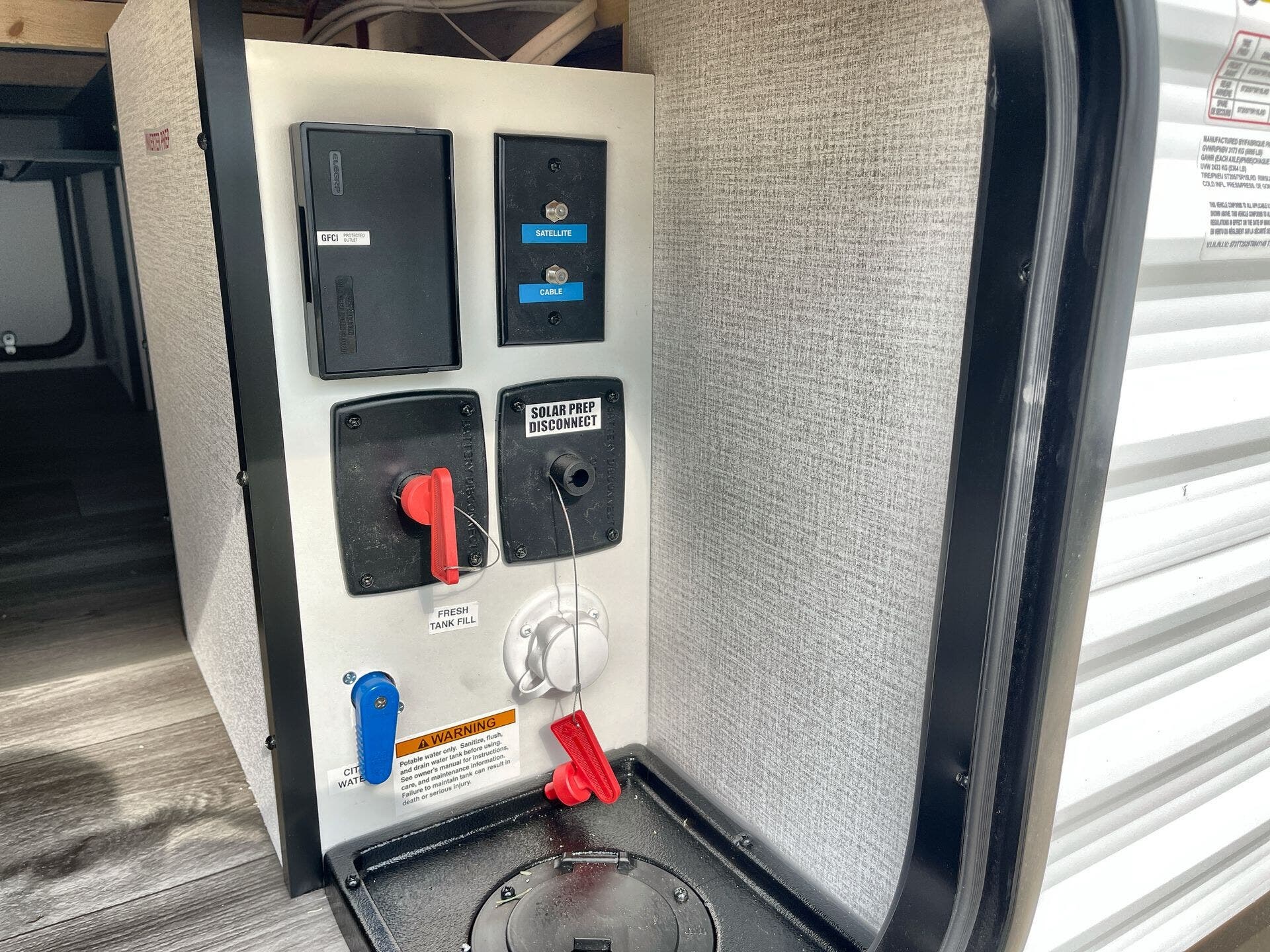 - Leveling jacks and an awning for outdoor comfort and easy setup