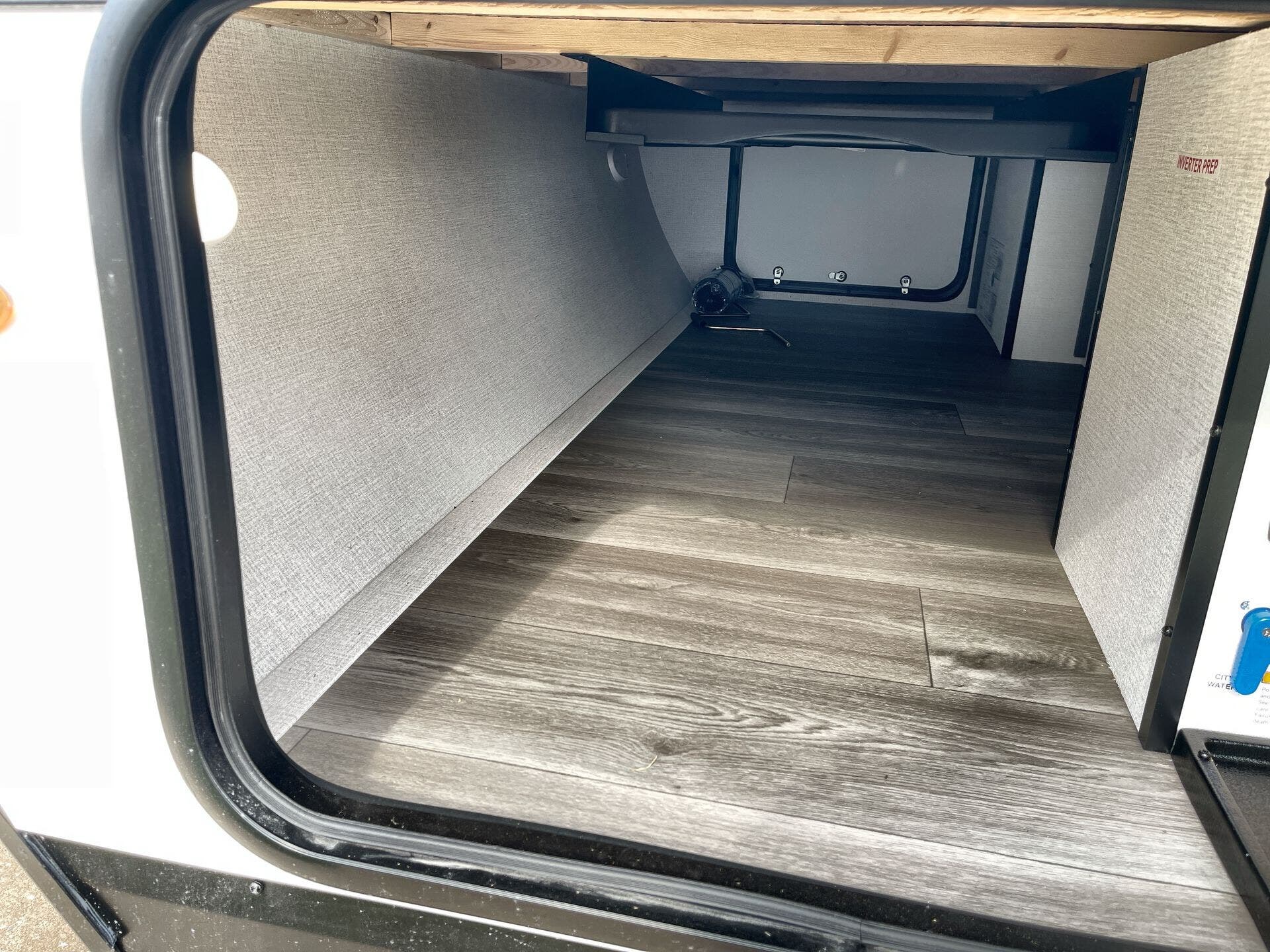 The Transcend Xplor features a thoughtfully designed floor plan called the 20MKX, with a total length of approximately 24 feet 11 inches. It boasts a comfortable interior that sleeps two people, ideal for intimate getaways or solo adventures. The exterior showcases a sleek Black/White finish paired with the inviting interior Luna color scheme, creating a modern aesthetic that stands out wherever you go.