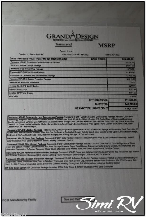 Request More Info on this 2026 Grand Design Transcend Xplor 20MKX Offered for sale by Simi RV