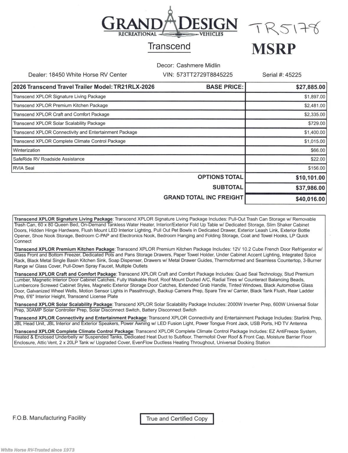 2026 Grand Design Transcend Xplor 21RLX Specifications