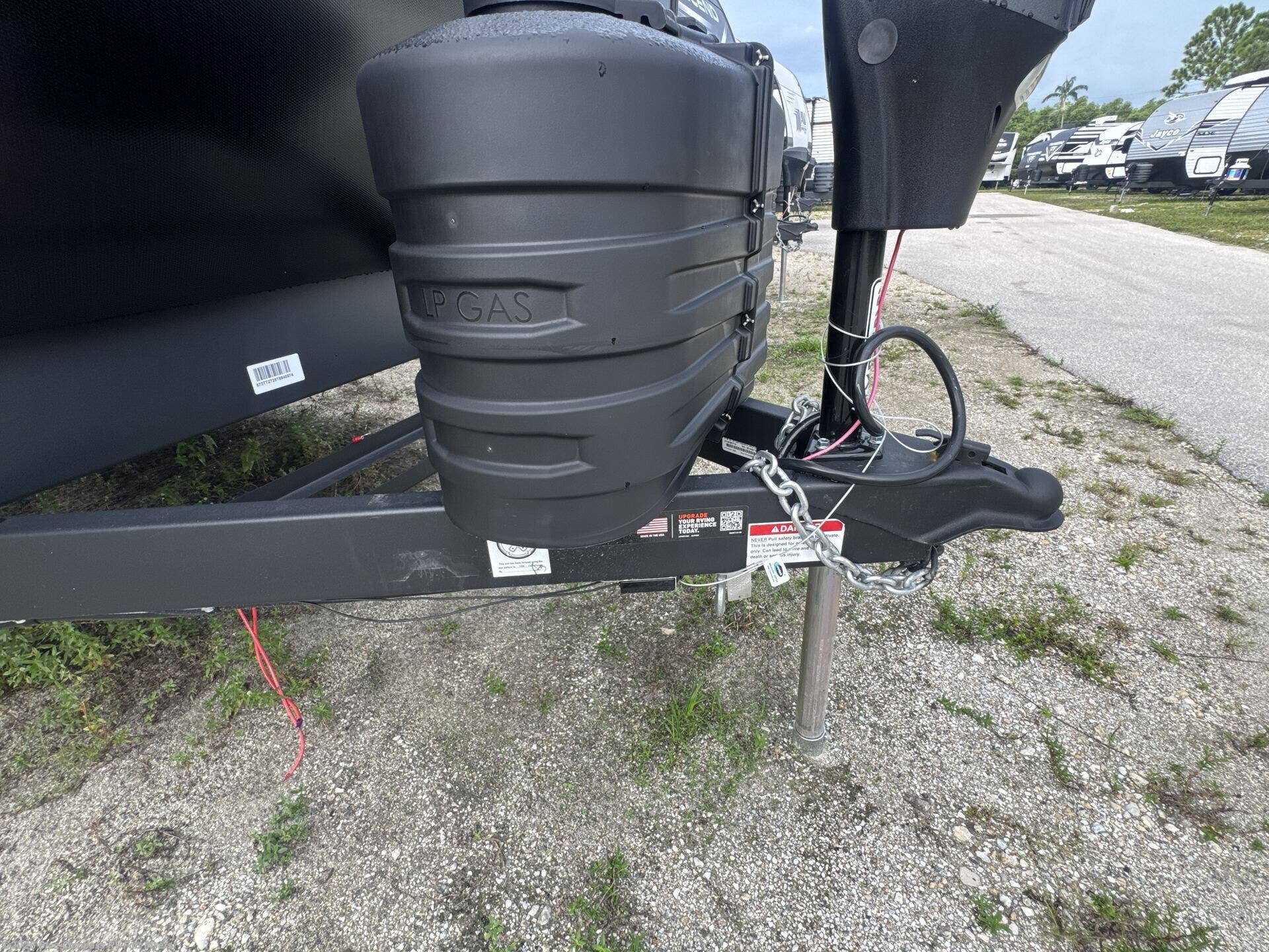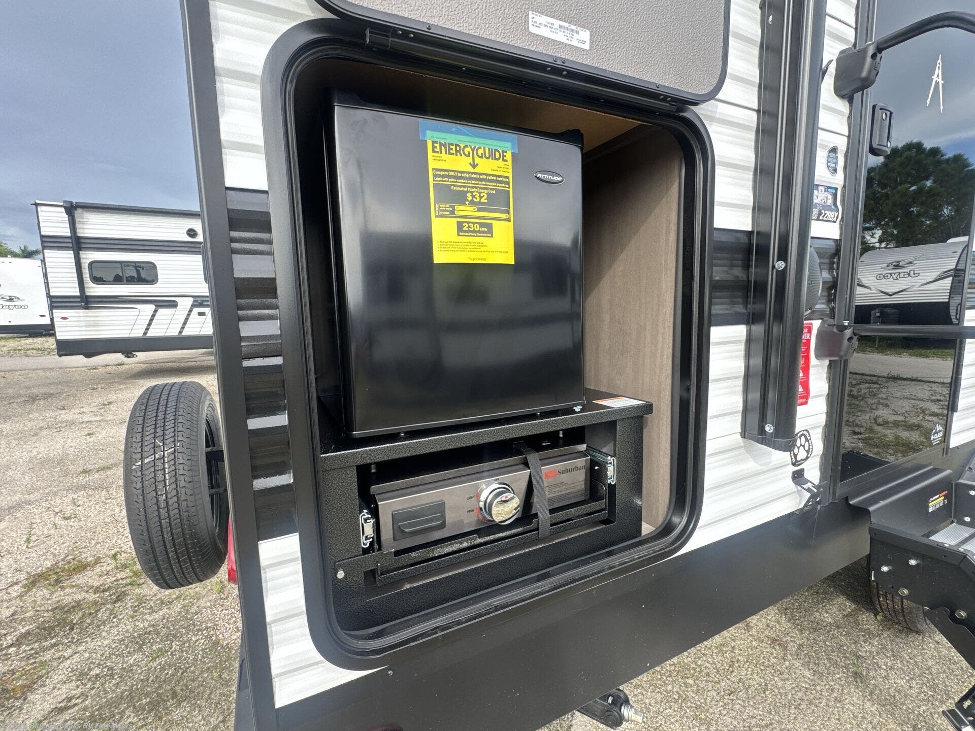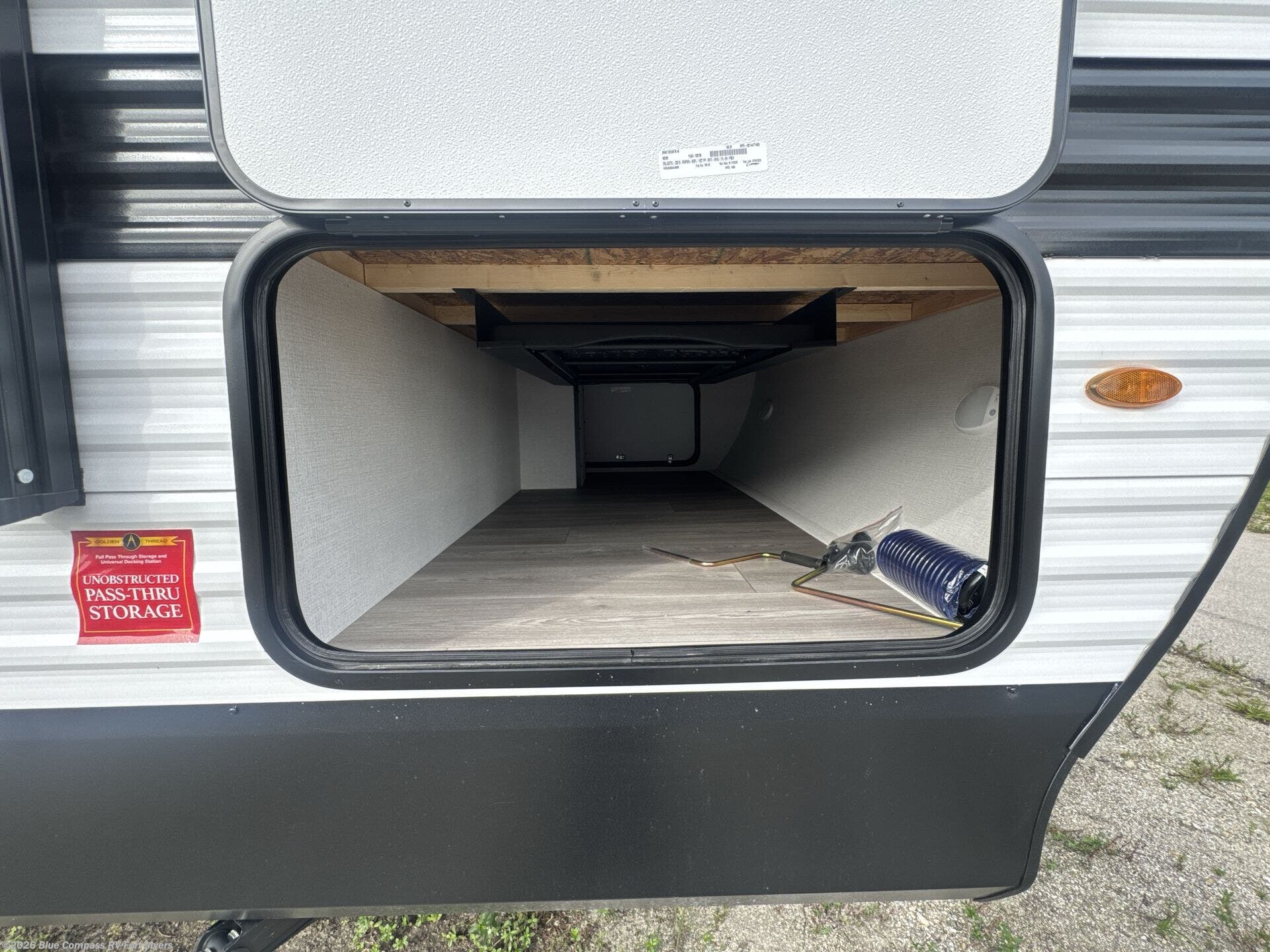 Pack your bags and head for the campground in this spacious travel trailer! Once you arrive, you can unload the pass-thru storage, then make lunch on the exterior griddle with a 1.7 cu. ft. exterior refrigerator. The U-shaped dinette slide will provide a place to dine if you decide not to stay outside under the 16' power awning. Optional theater seats can be chosen in place of the dinette for even more comfort! You'll sleep soundly on the queen bed in the front bedroom, and the full rear bath lets you freshen up each day.