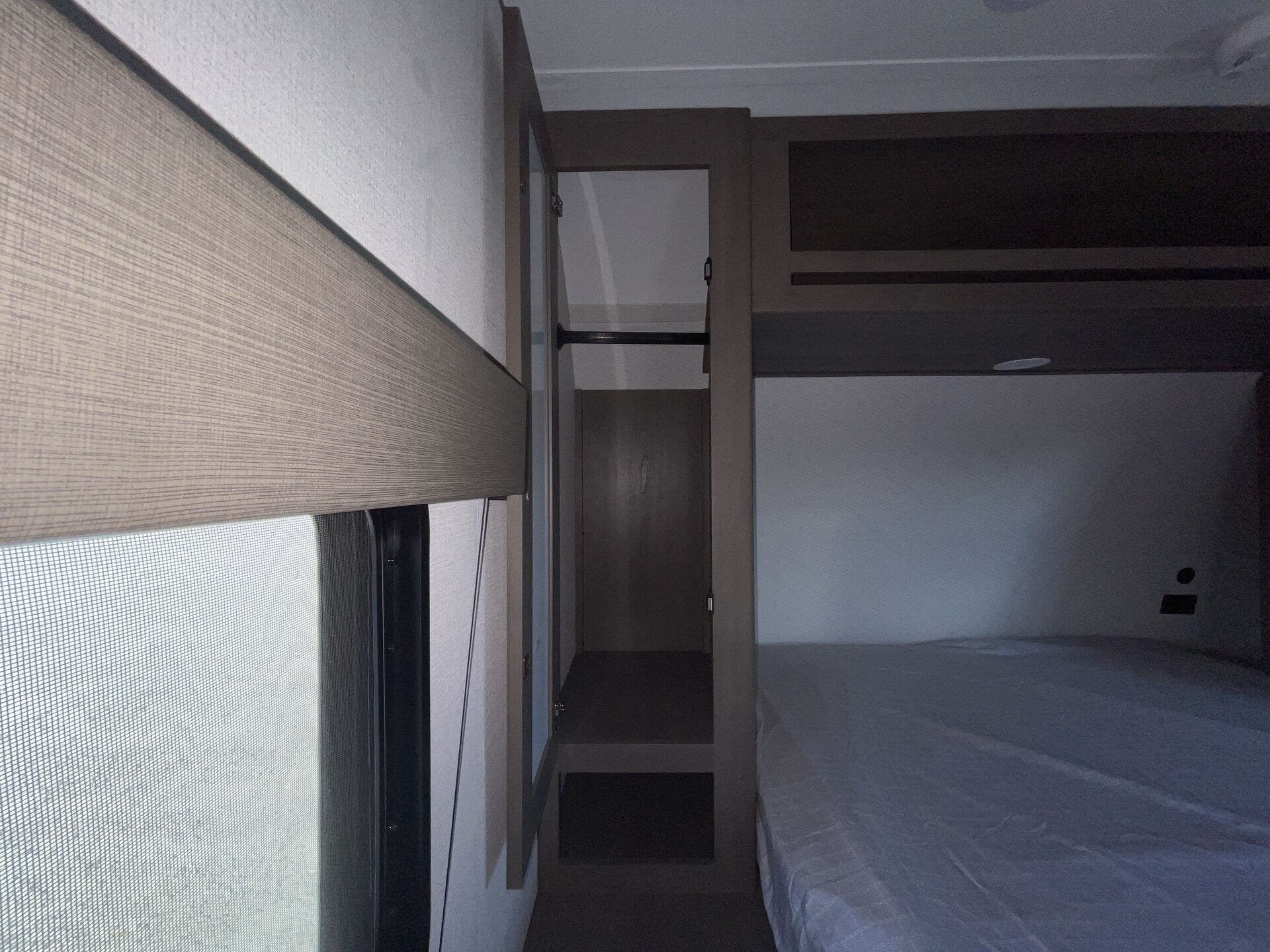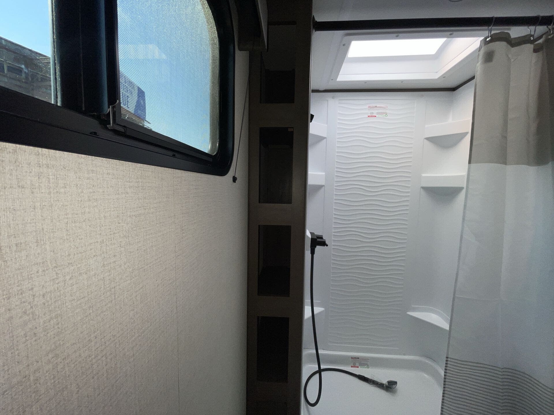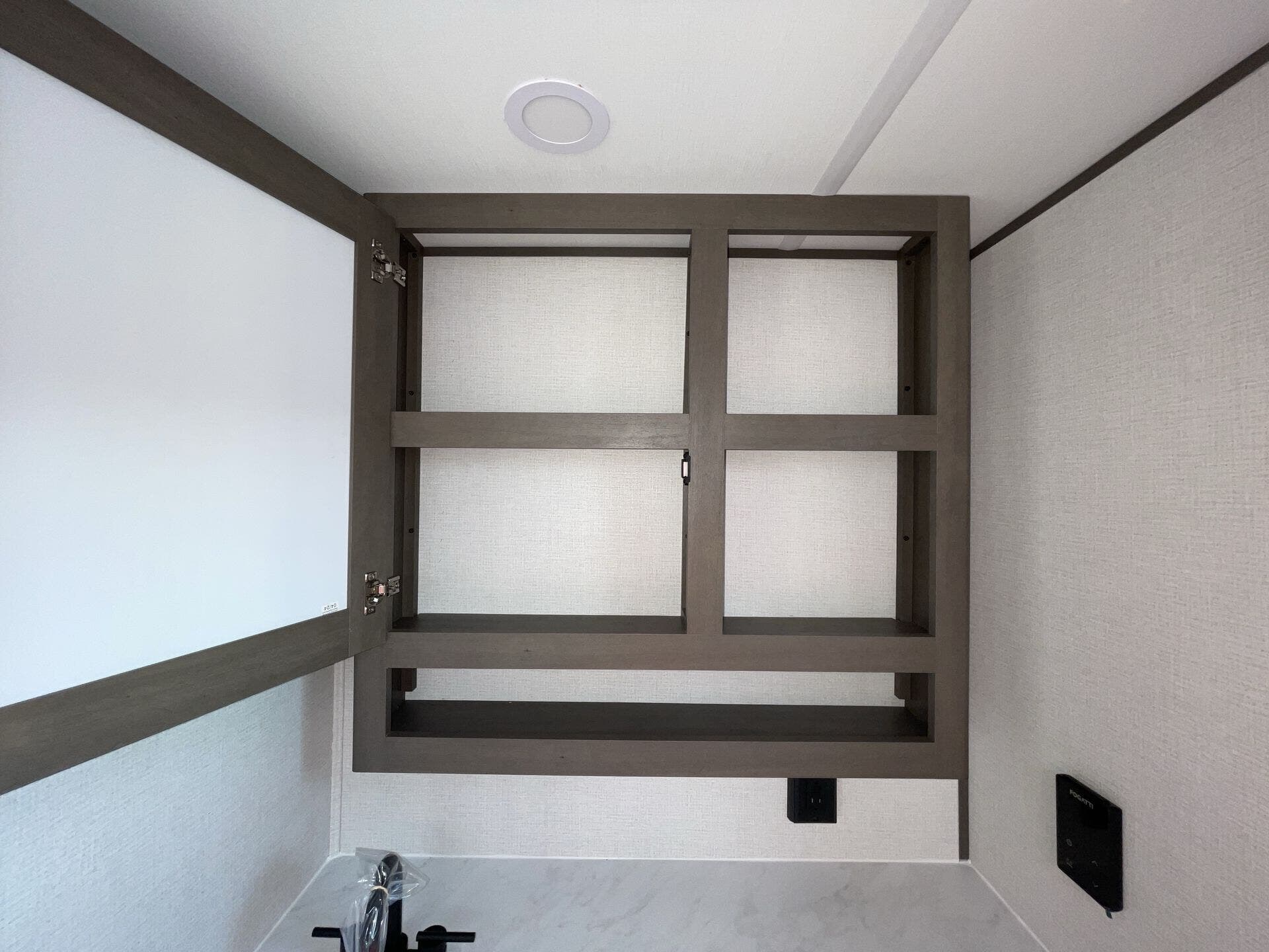Kitchen Sink, Medicine Cabinet, Overhead Cabinetry, Pet Friendly, Queen Bed, Removable Table, Roof Vents, Shower, Theater Seating, Toilet, Wardrobe(s)