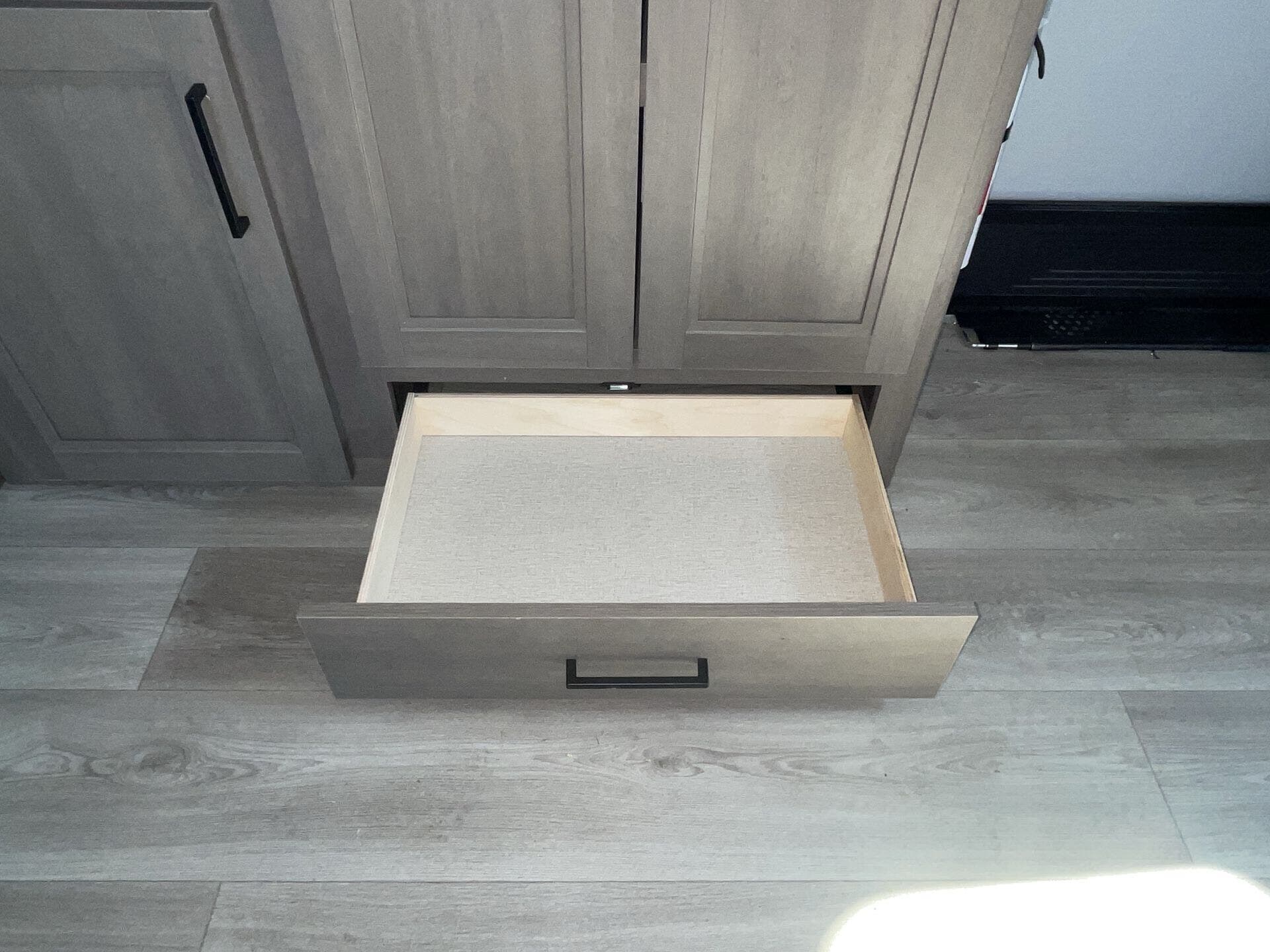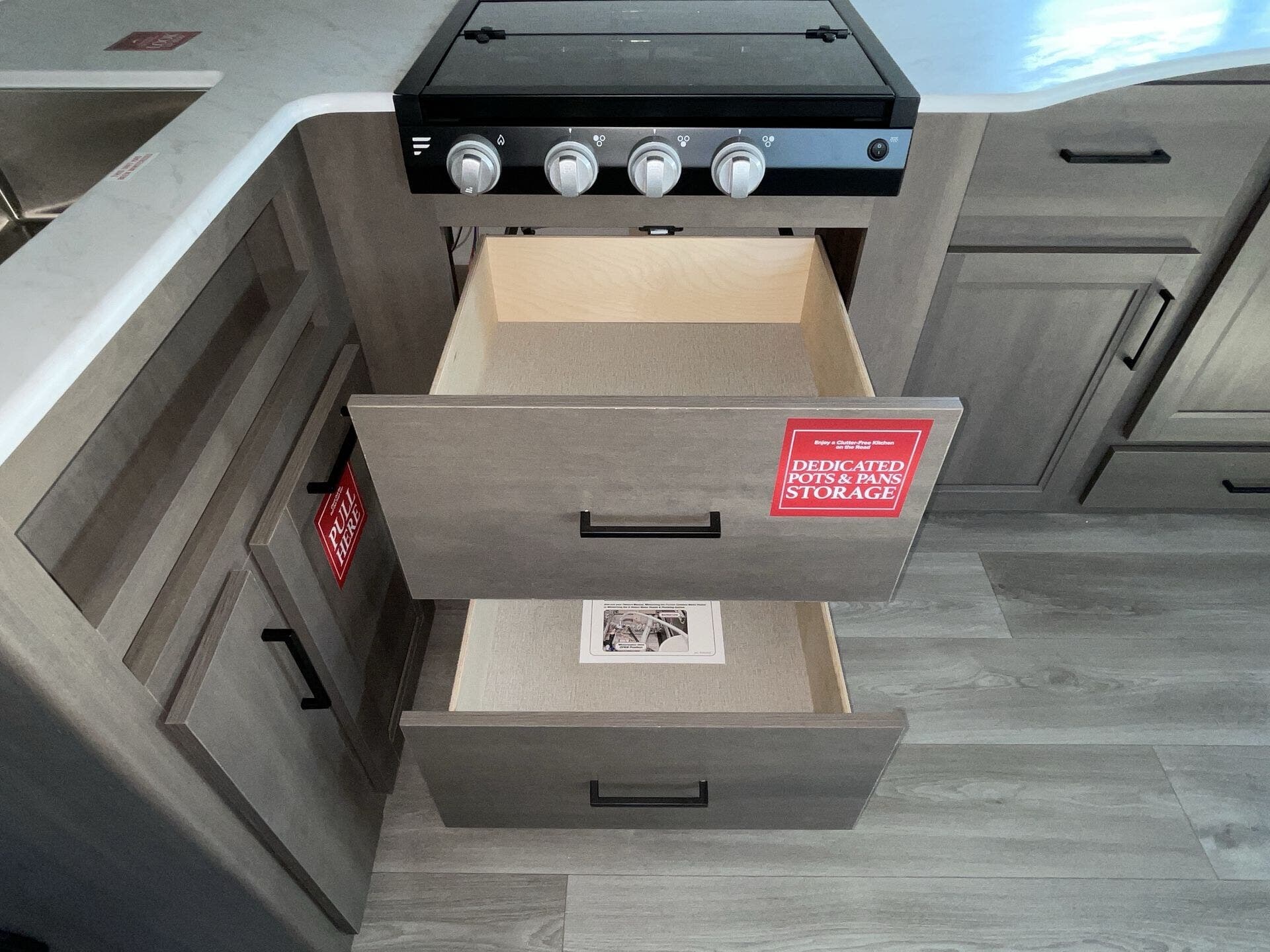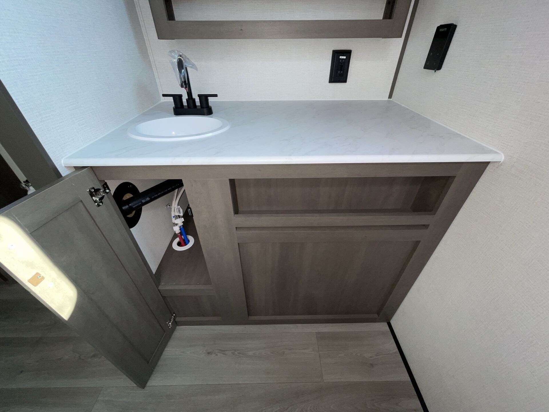 Kitchen Sink, Medicine Cabinet, Overhead Cabinetry, Pet Friendly, Queen Bed, Removable Table, Roof Vents, Shower, Theater Seating, Toilet, Wardrobe(s)