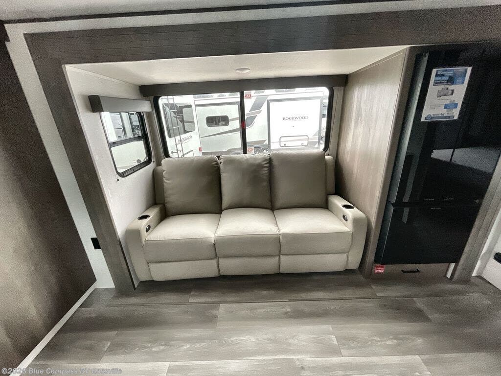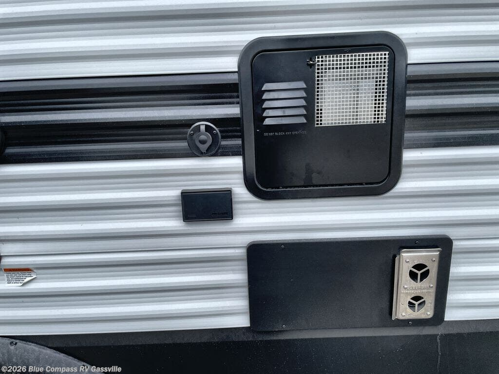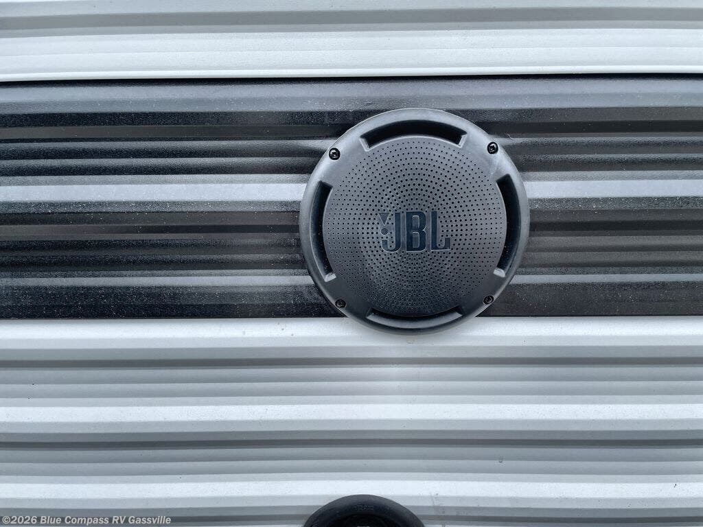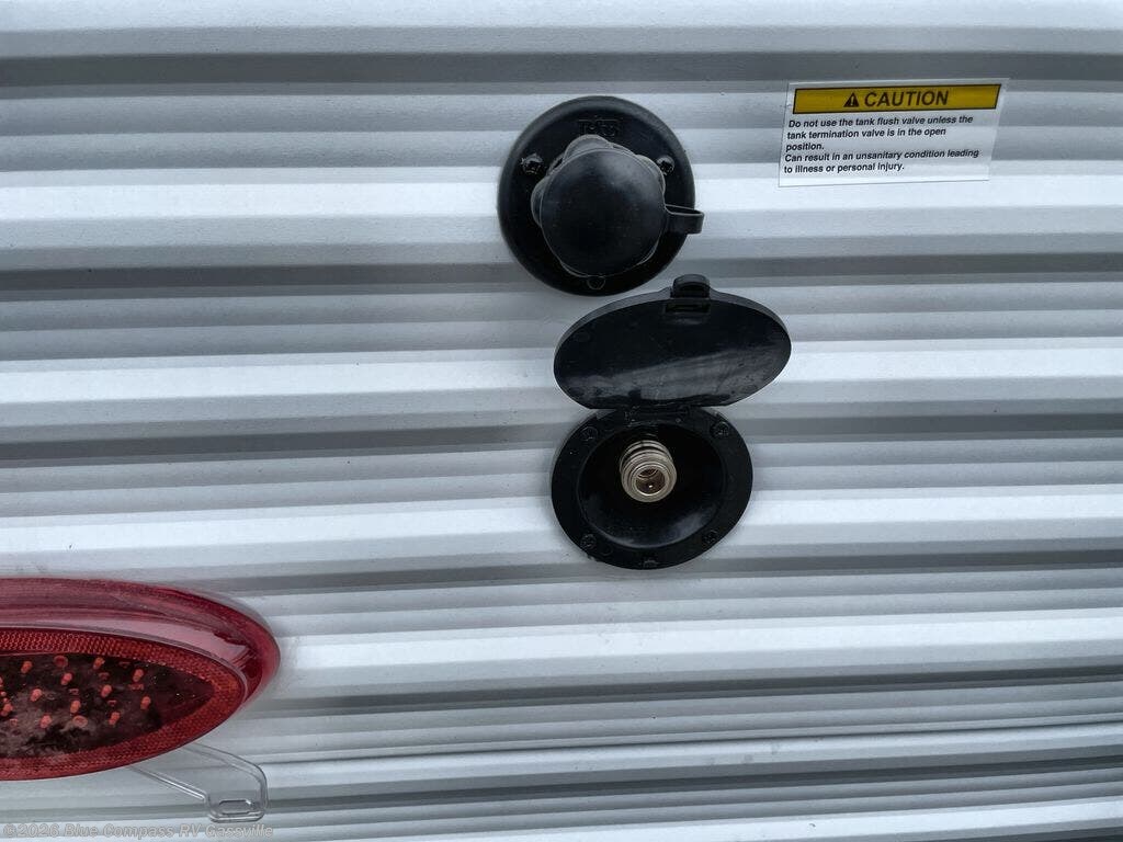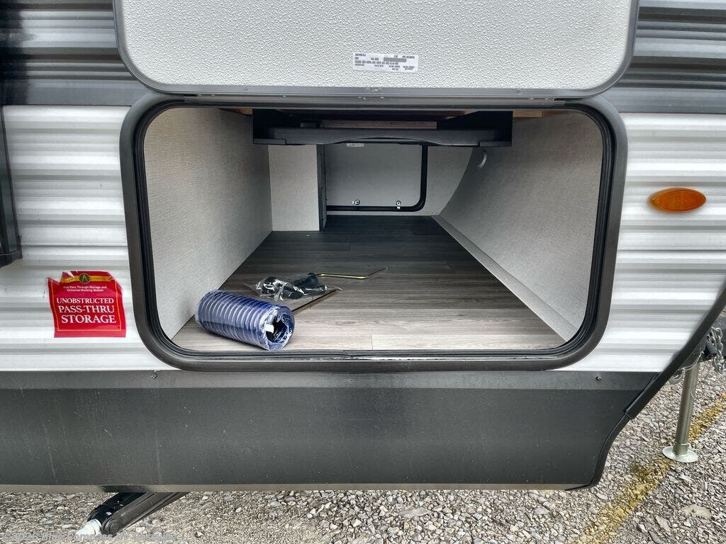 Pack your bags and head for the campground in this spacious travel trailer! Once you arrive, you can unload the pass-thru storage, then make lunch on the exterior griddle with a 1.7 cu. ft. exterior refrigerator. The U-shaped dinette slide will provide a place to dine if you decide not to stay outside under the 16' power awning. Optional theater seats can be chosen in place of the dinette for even more comfort! You'll sleep soundly on the queen bed in the front bedroom, and the full rear bath lets you freshen up each day.