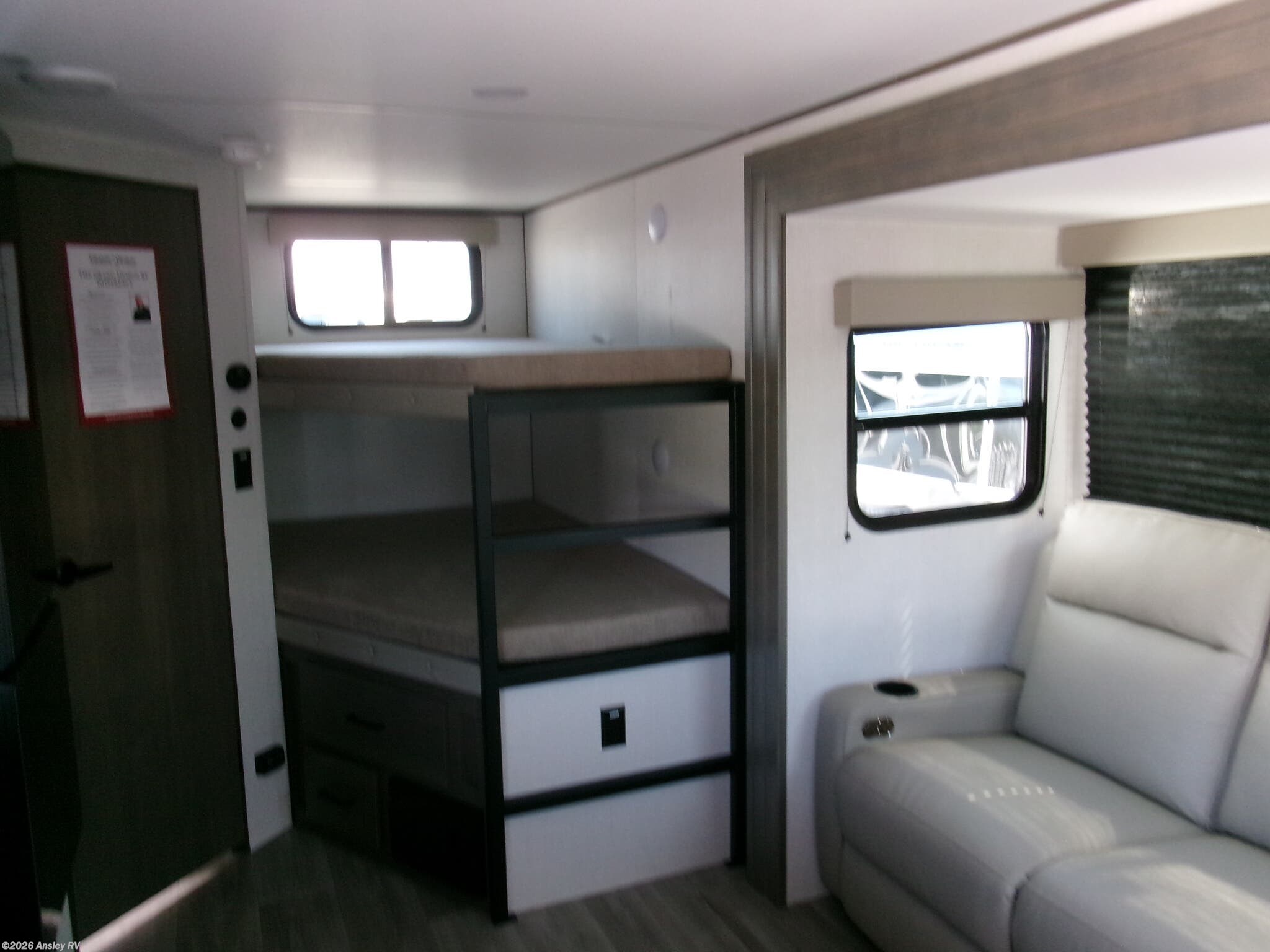 The 2026 model features the popular floorplan "23BHX", designed to maximize living space within a manageable size. Its thoughtfully designed layout offers comfortable sleeping arrangements, ample storage, and private areas for relaxation after a day of adventure. While specific interior and exterior color details are not provided, this model is built for durability and style, with features that cater to both comfort and aesthetics.