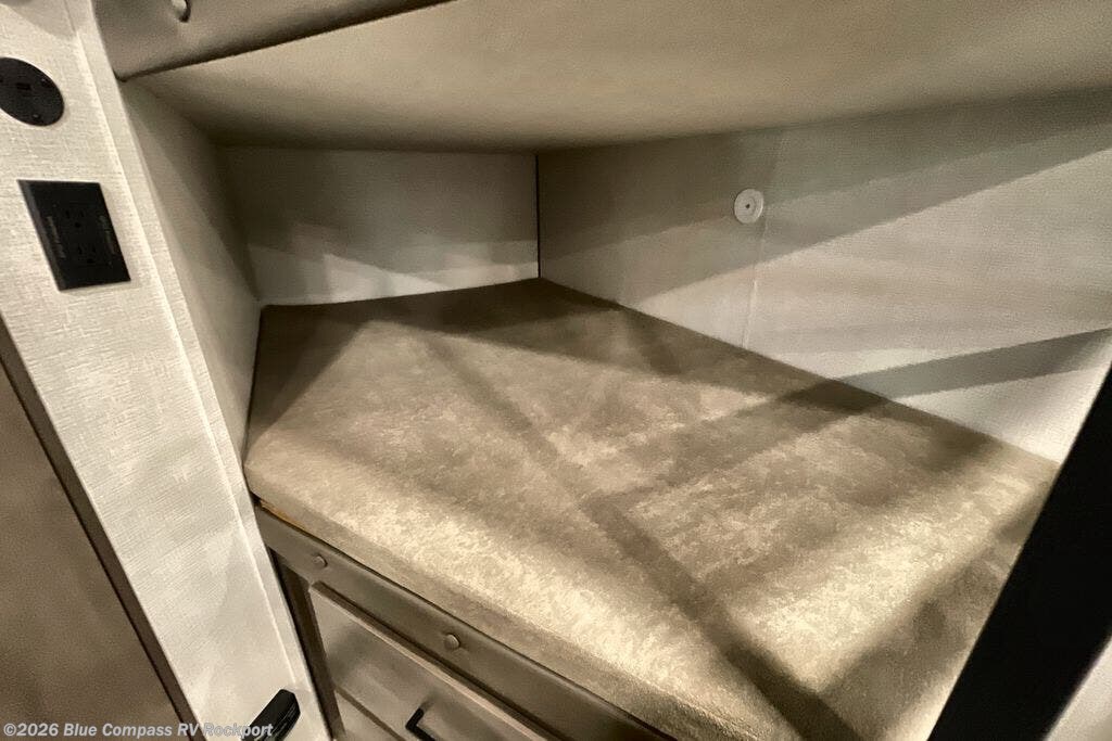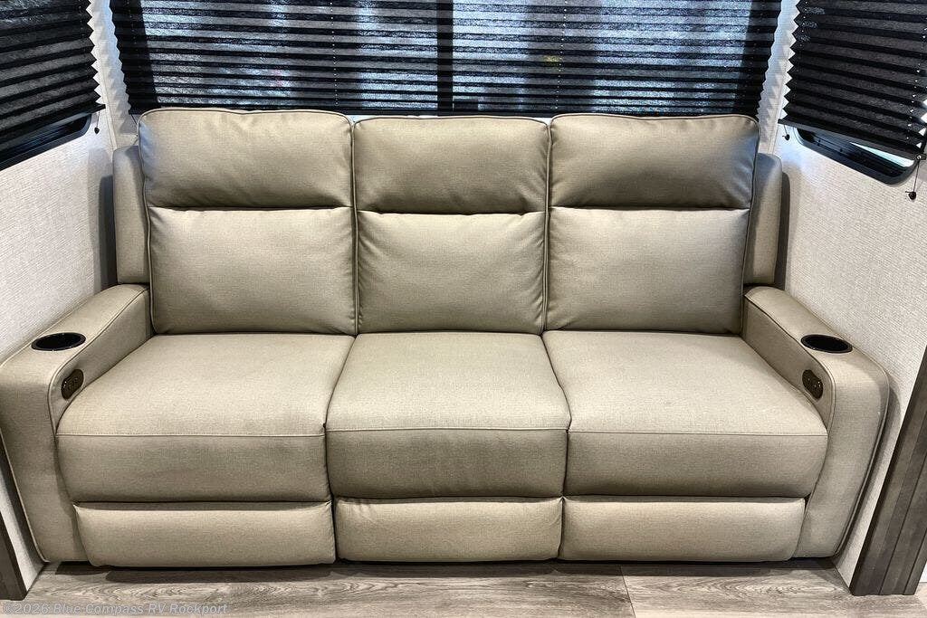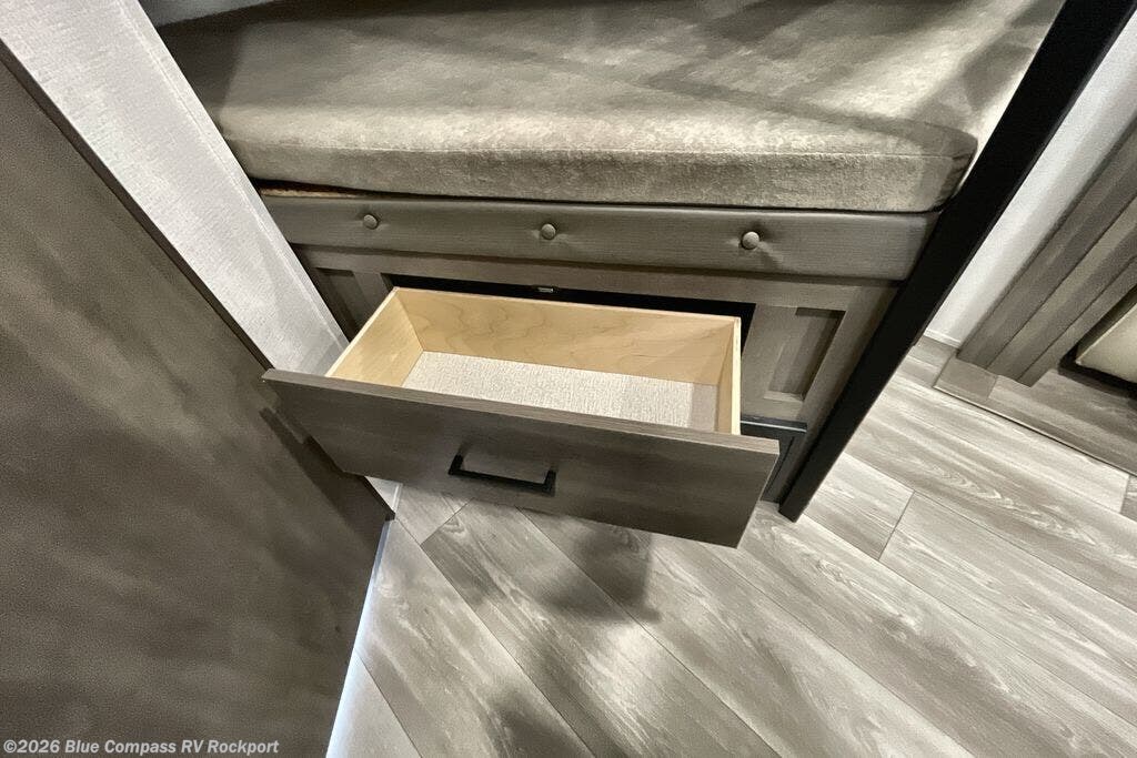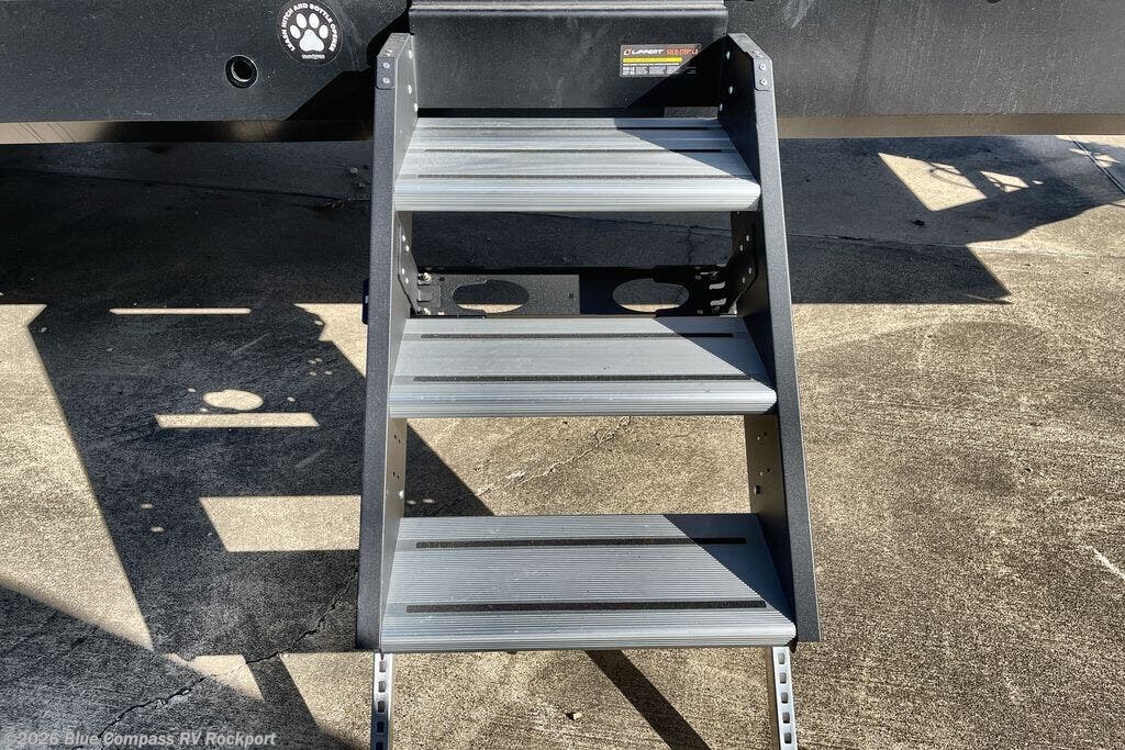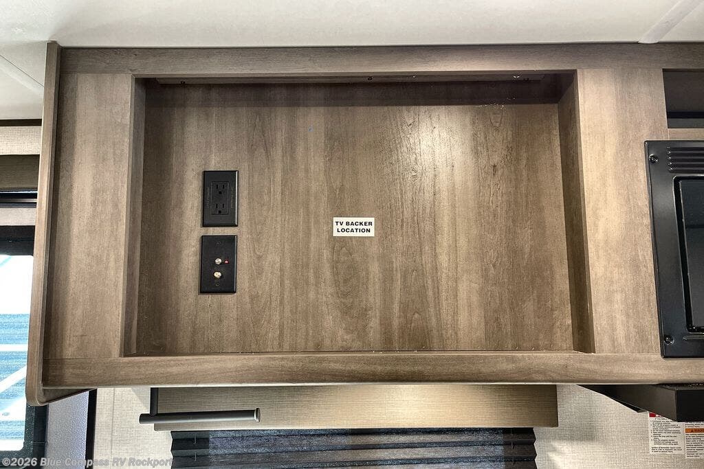 This fantastic travel trailer is designed to provide the ultimate in comfort, convenience, and adventure! The double-size bunk beds are perfect for kids, providing ample sleeping space and an under-bed storage space for all your belongings. The full bathroom features a linen closet, providing convenient storage for towels and toiletries. In the kitchen area, the U-shaped dinette is a great spot for creating memories that will last a lifetime, the refrigerator keeps your food and drinks fresh, while the microwave provides a quick and easy way to prepare meals. And for major convenience, the pull-out trash makes cleaning up a simple task. Take a nap in the comfortable front queen bed, which is a serene retreat, providing a comfortable spot to rest and relax. Jump to the exterior in a comfortable way with the double entry/exit door providing added convenience and flexibility, while the exterior awning provides shade and protection from the elements. The pass-through storage offers ample space for your outdoor gear and equipment.