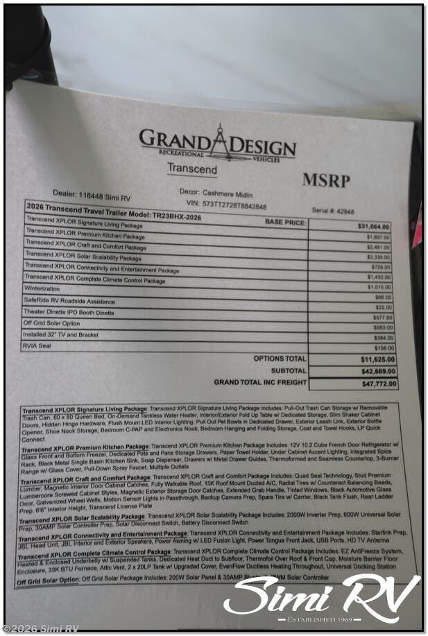 Request More Info on this 2026 Grand Design Transcend Xplor 23BHX Offered for sale by Simi RV