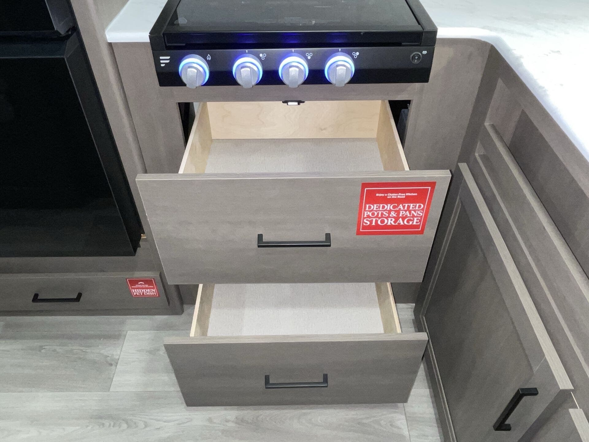 - Pass-through storage, detachable power cord, and leveling jacks for easy setup