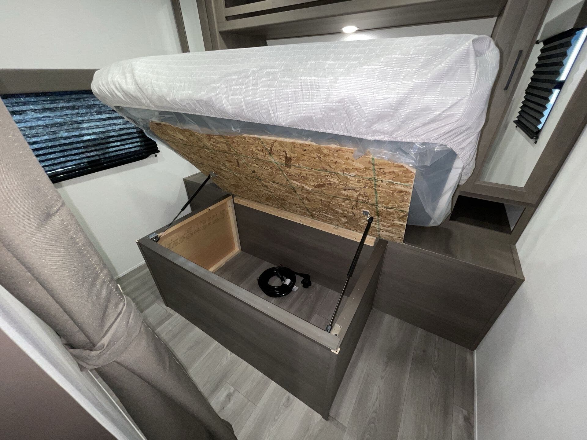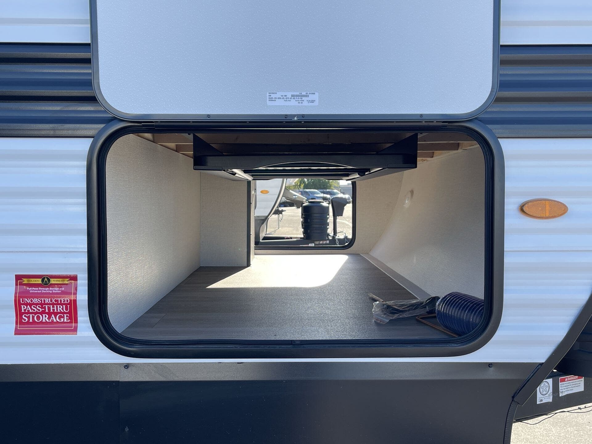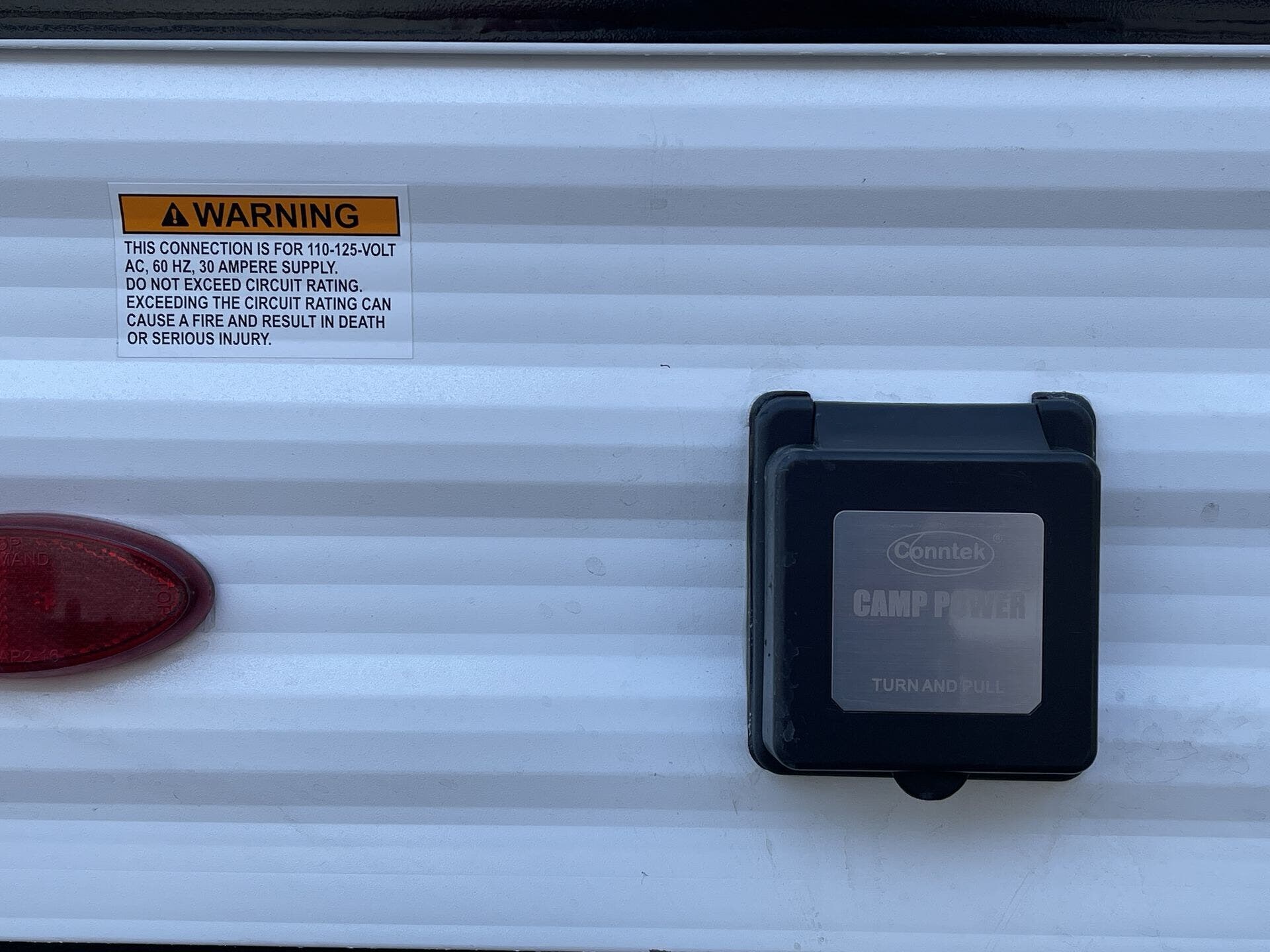 Awning, Detachable Power Cord, Hitch, Leveling Jacks, Pass Thru Storage, Power Awning, Roof Vent, Screen Door, Spare Tire Kit -
