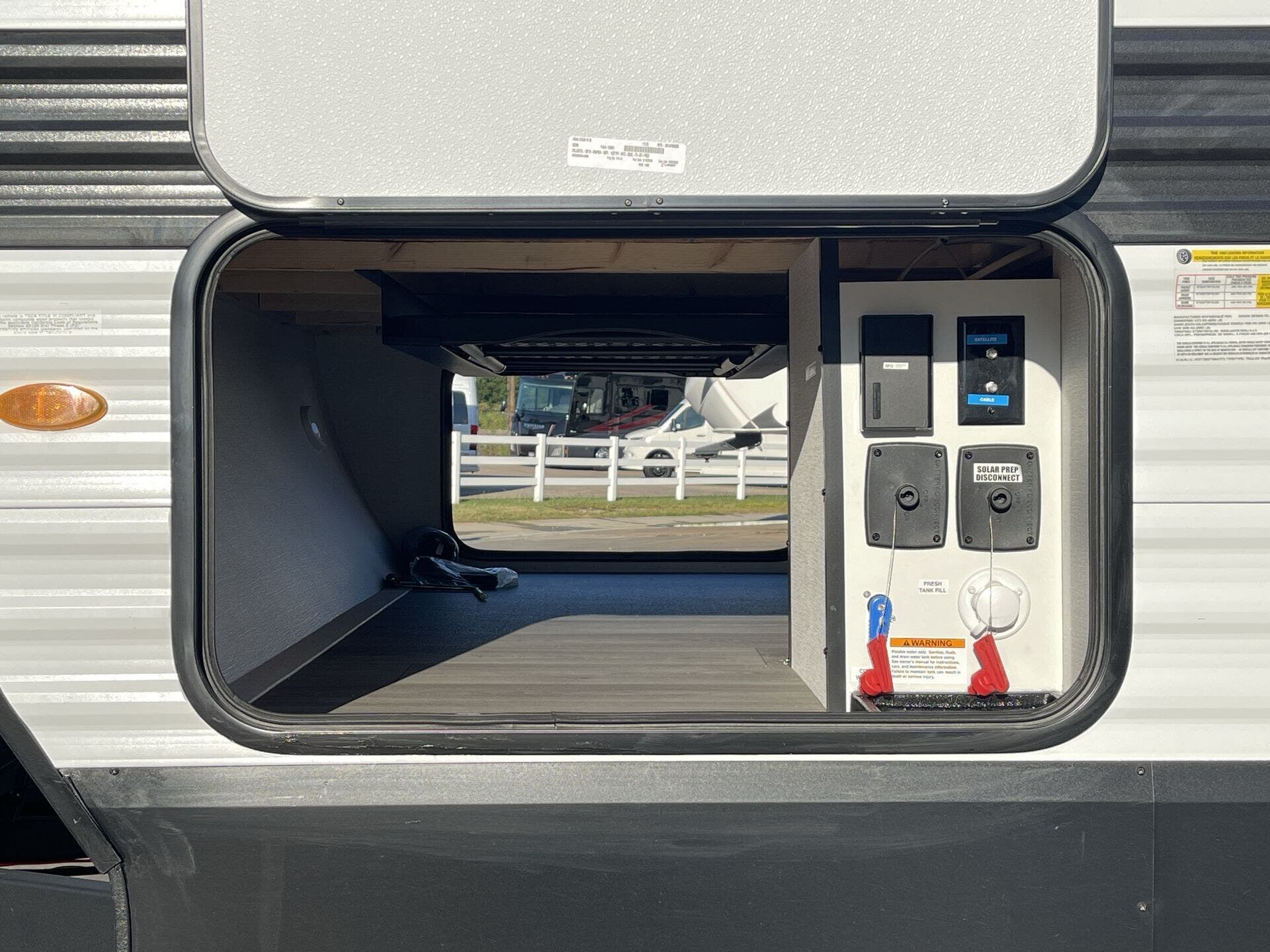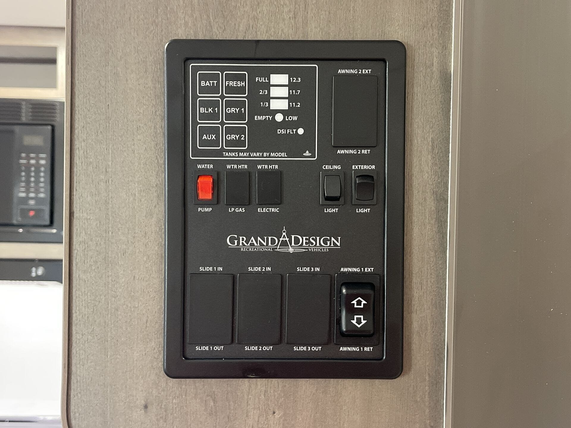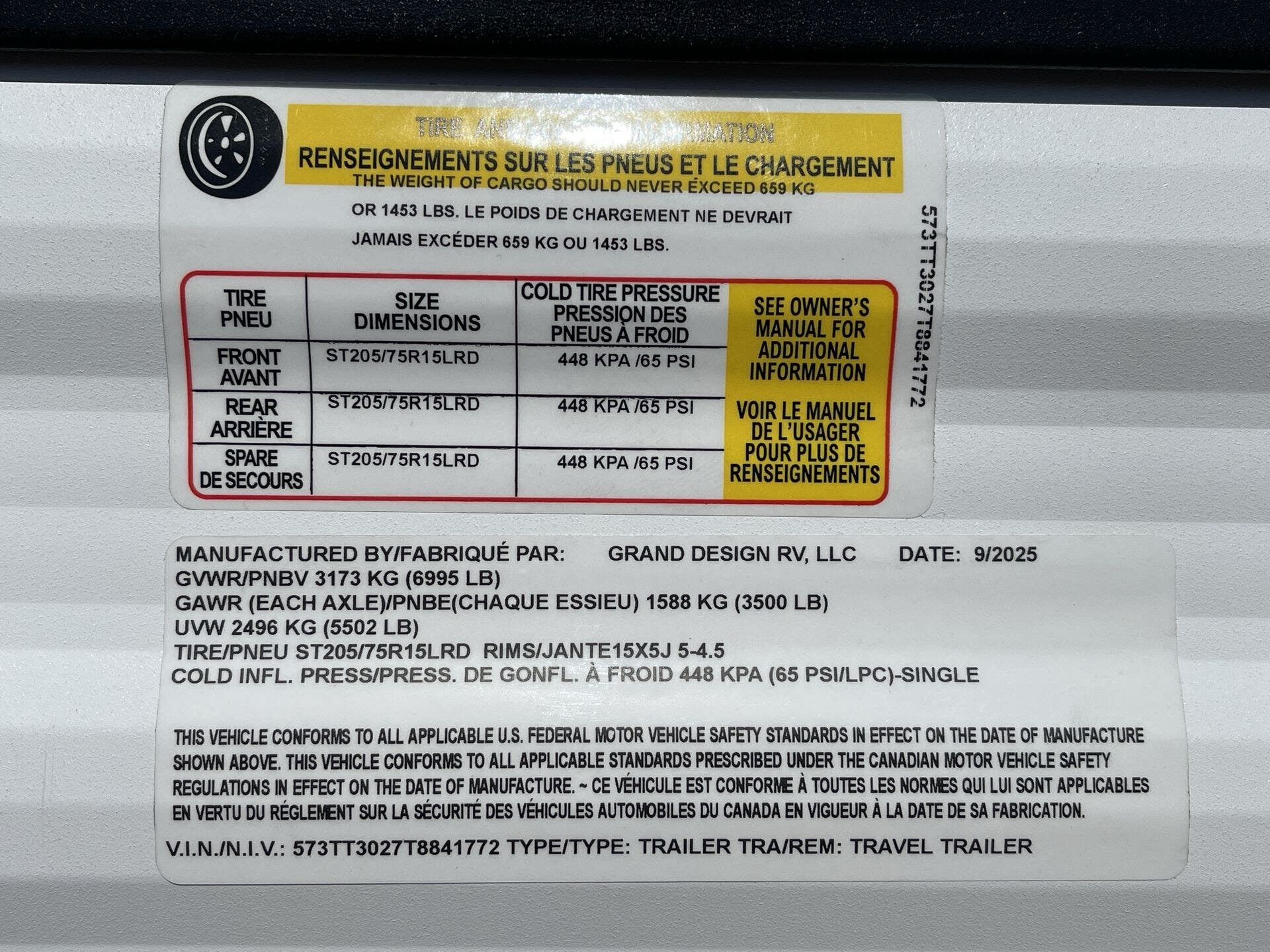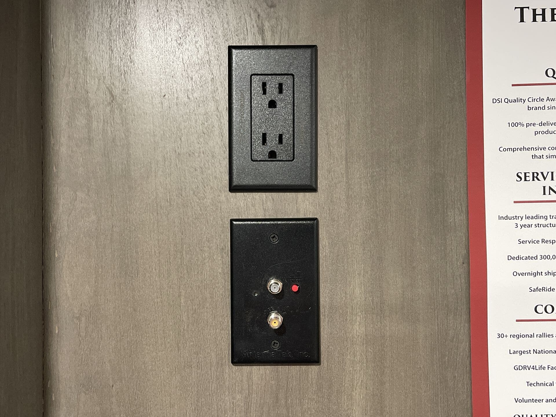 Awning, Detachable Power Cord, Hitch, Leveling Jacks, Pass Thru Storage, Power Awning, Roof Vent, Screen Door, Spare Tire Kit -