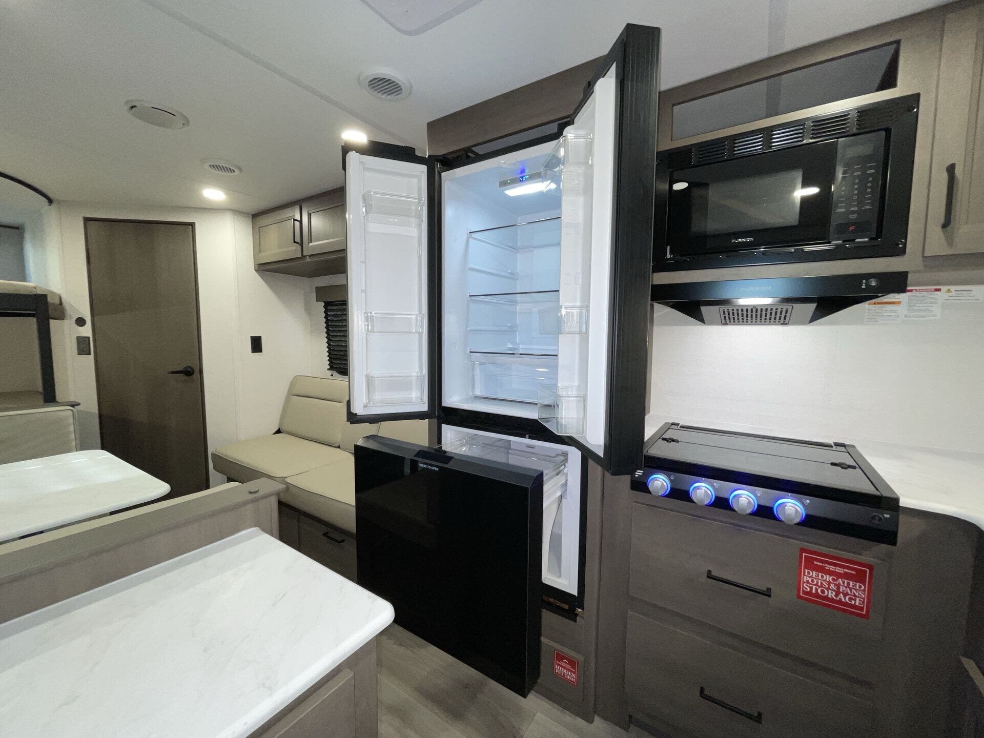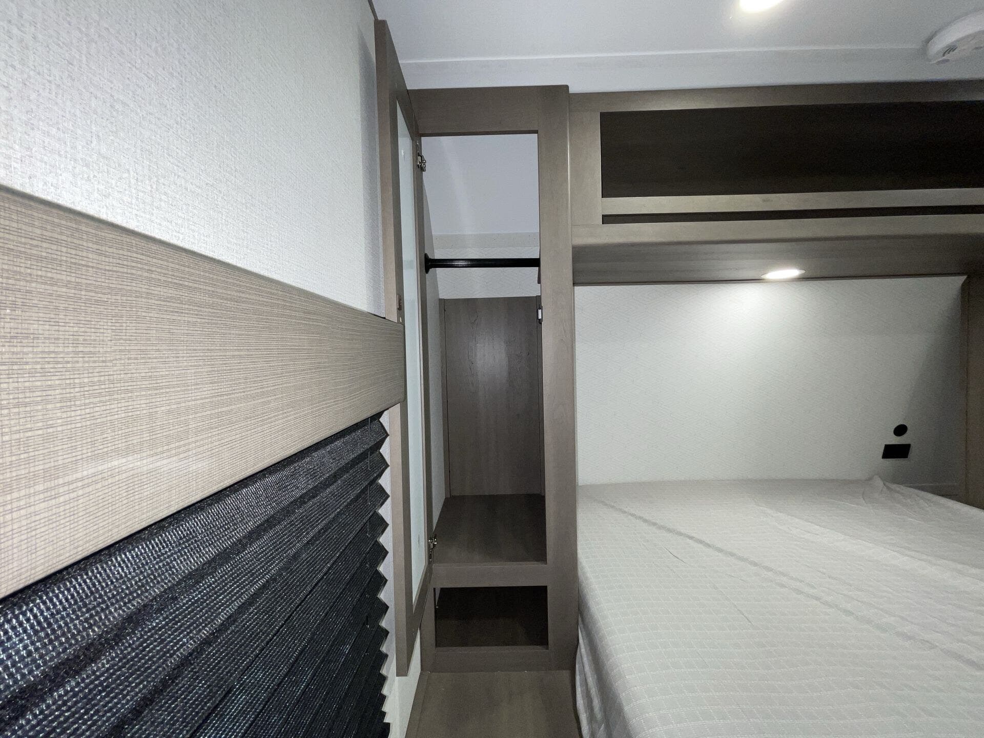 Designed to accommodate a variety of travel lifestyles, the Transcend Xplor 24BHX combines a durable bunkhouse layout with modern conveniences. It has a gross vehicle weight rating (GVWR) of 6,995 pounds and a hitch weight of 583 pounds, which broadens the range of suitable tow vehicles. Fresh water capacity is 56 gallons, with 78 gallons of gray water and 39 gallons of black water, providing comfortable fluid management for longer trips. The floorplan emphasizes flexible sleeping arrangements, featuring bunk beds, a queen bed, and convertible spaces such as a dinette bed and a sofa bed to maximize occupancy without sacrificing living space.