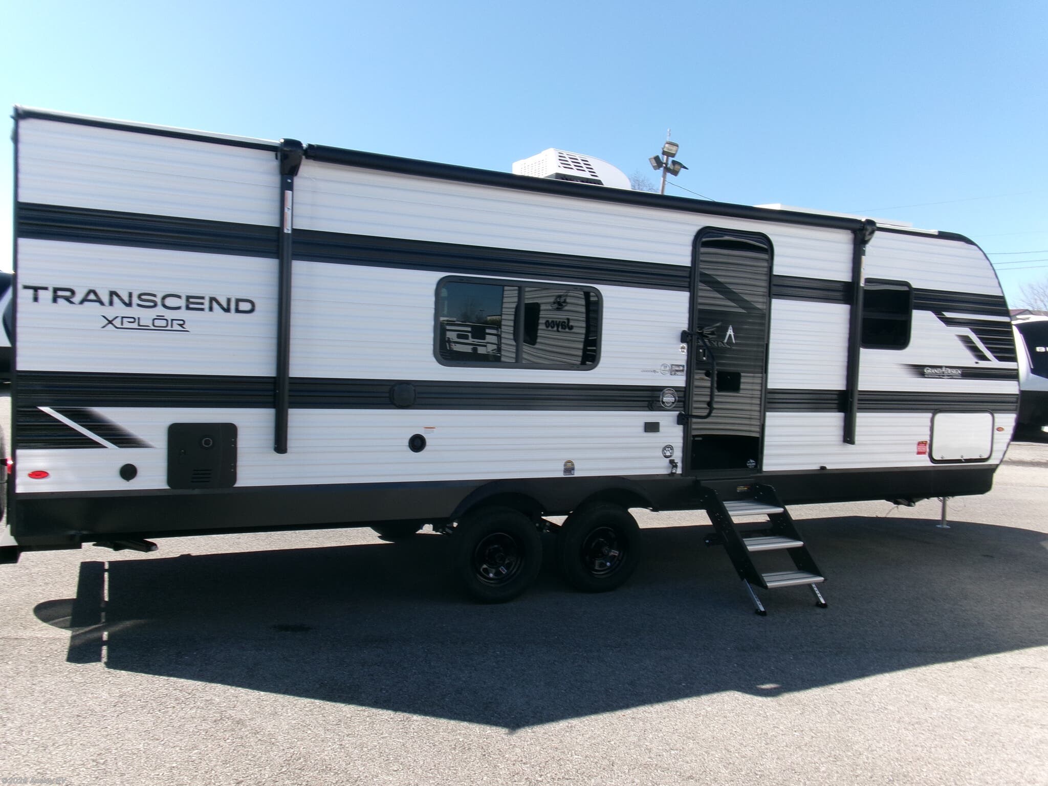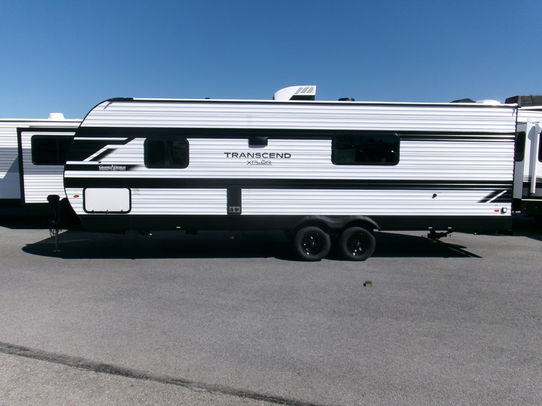 Grand Design Transcend Xplor travel trailer 24BHX highlights: 69" Rollover Sofa Pet Dish 15' Power Awning with LED Light Double-Size Bunks This is the perfect travel trailer if you like to camp with friends and family. Since there are double-size bunks, a queen bed in the front bedroom, plus a booth dinette and sofa, you can sleep eight campers each night! The three burner range and microwave in the kitchen will let you cook meals each day, and the 8 cu. ft. 12V refrigerator will keep your cold items fresh. This model also includes a counter with extra storage underneath, a pull-out trash can storage for convenience, and a full bath to freshen up in each day. And you'll love having your own space in the front bedroom with a privacy curtain, dual wardrobes, and TV prep if you want to add a television! The customer-focused, quality-built Transcend Xplor travel trailers by Grand Design are your ticket to fun and adventure. You will appreciate the power tongue jack when it comes time to set up, as well as the all-in-one utility center and the detachable power cord with an LED light. These models include many outlets throughout, USB ports to charge your gadgets, and a JBL exterior speaker to listen to your favorite tunes. The interior of the Transcend Xplor will have you feeling right at home with upgraded residential furniture, residential countertops, residential cabinet doors, and the list goes on!