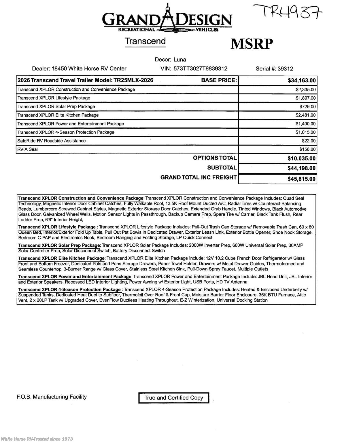 Request More Info on this 2026 Grand Design Transcend Xplor 25MLX Offered for sale by White Horse RV Center