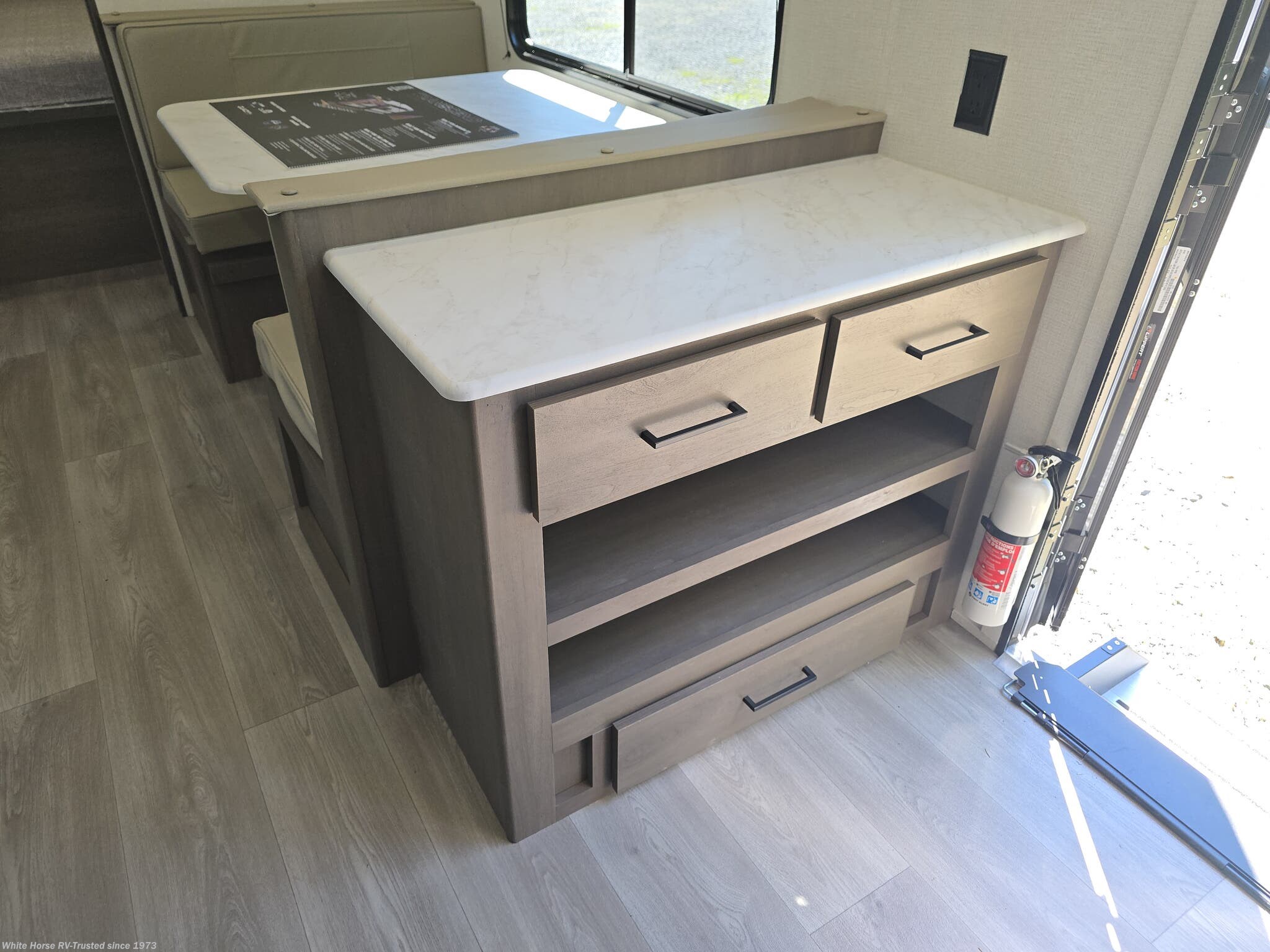 Large Slide-Out Living Area – Features a 60” sleeper sofa (with optional theater seating) and booth dinette for lounging or extra sleep space