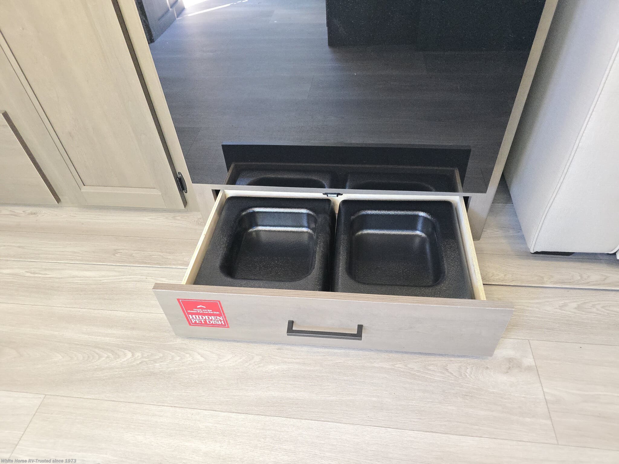 Pet-Friendly Features – Built-in pet dish station keeps your furry friend happy and organized