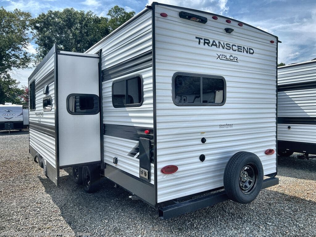 The customer-focused, quality-built Transcend Xplor travel trailers by Grand Design are your ticket to fun and adventure. You will appreciate the power tongue jack when it comes time to set up, as well as the all-in-one utility center and the detachable power cord with an LED light. These models include many outlets throughout, USB ports to charge your gadgets, and a JBL exterior speaker to listen to your favorite tunes. The interior of the Transcend Xplor will have you feeling right at home with upgraded residential furniture, residential countertops, residential cabinet doors, and the list goes on!