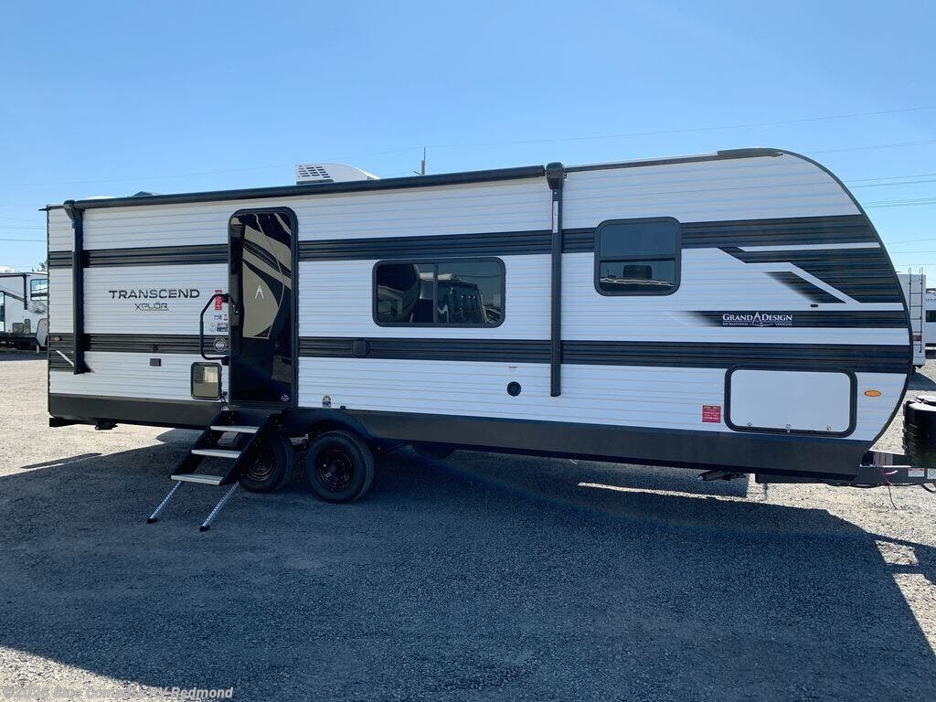 The customer-focused, quality-built Transcend Xplor travel trailers by Grand Design are your ticket to fun and adventure. You will appreciate the power tongue jack when it comes time to set up, as well as the all-in-one utility center and the detachable power cord with an LED light. These models include many outlets throughout, USB ports to charge your gadgets, and a JBL exterior speaker to listen to your favorite tunes. The interior of the Transcend Xplor will have you feeling right at home with upgraded residential furniture, residential countertops, residential cabinet doors, and the list goes on!