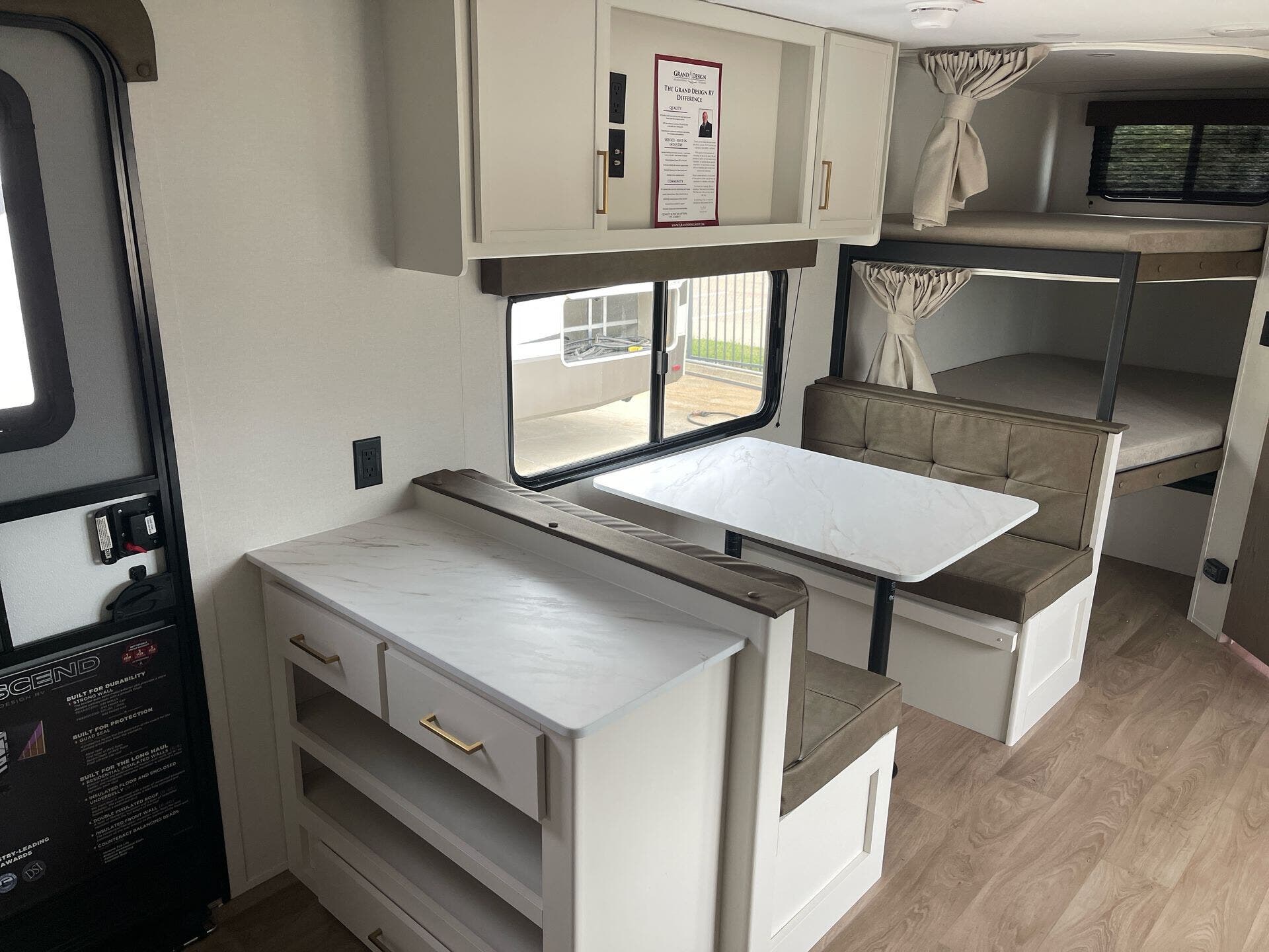 - Detachable power cord and flexible floorplan with booth dinette and dinette seating