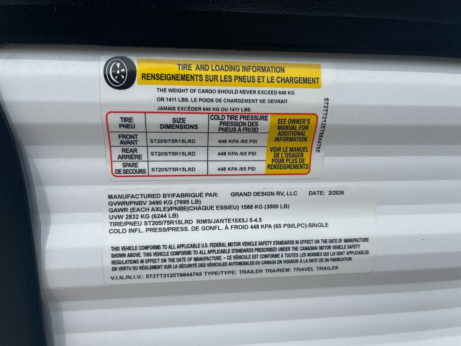 - Hitch weight: 635 pounds; Axles: 2