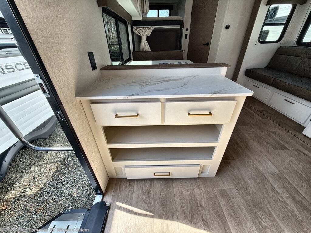 The customer-focused, quality-built Transcend Xplor travel trailers by Grand Design are your ticket to fun and adventure. You will appreciate the power tongue jack when it comes time to set up, as well as the all-in-one utility center and the detachable power cord with an LED light. These models include many outlets throughout, USB ports to charge your gadgets, and a JBL exterior speaker to listen to your favorite tunes. The interior of the Transcend Xplor will have you feeling right at home with upgraded residential furniture, residential countertops, residential cabinet doors, and the list goes on!