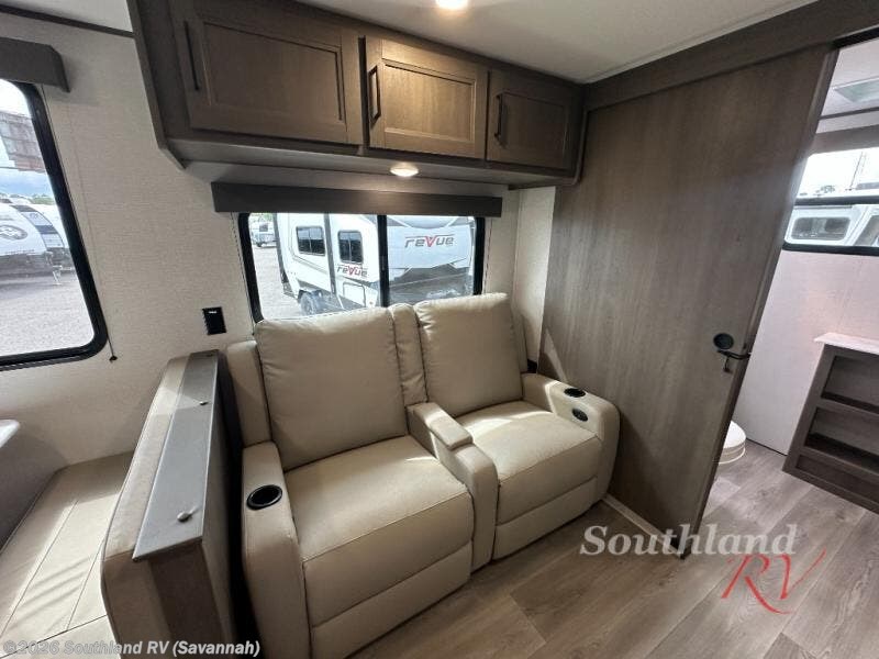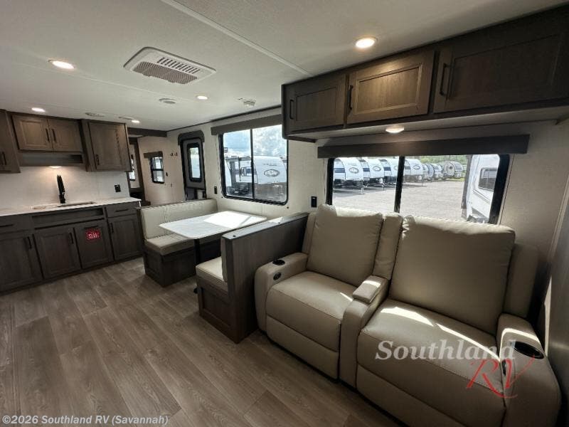 Your search for the perfect couple's trailer is over with this RV in tow! You will enjoy your own private bedroom up front with a queen bed, overhead storage, and TV prep if you choose to bring along your own television. The spacious full rear bath includes a linen closet and a walk-in shower to easily clean up each day. Relax on the 60" sleeper sofa after a long day outdoors, or you can choose the optional theater seating if you don't need additional sleeping space. The booth dinette can also be used for an overnight guest or two little ones. This model also includes plenty of storage space and plenty of counter space to prep and cook at-home meals! Finally relax under the shade of the massive 19' awning.