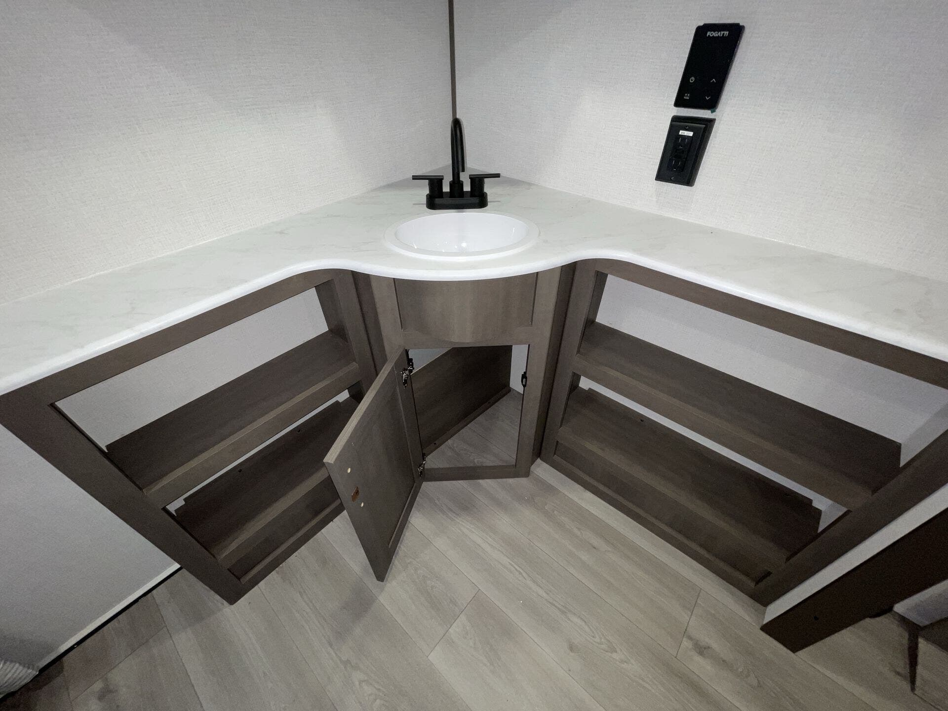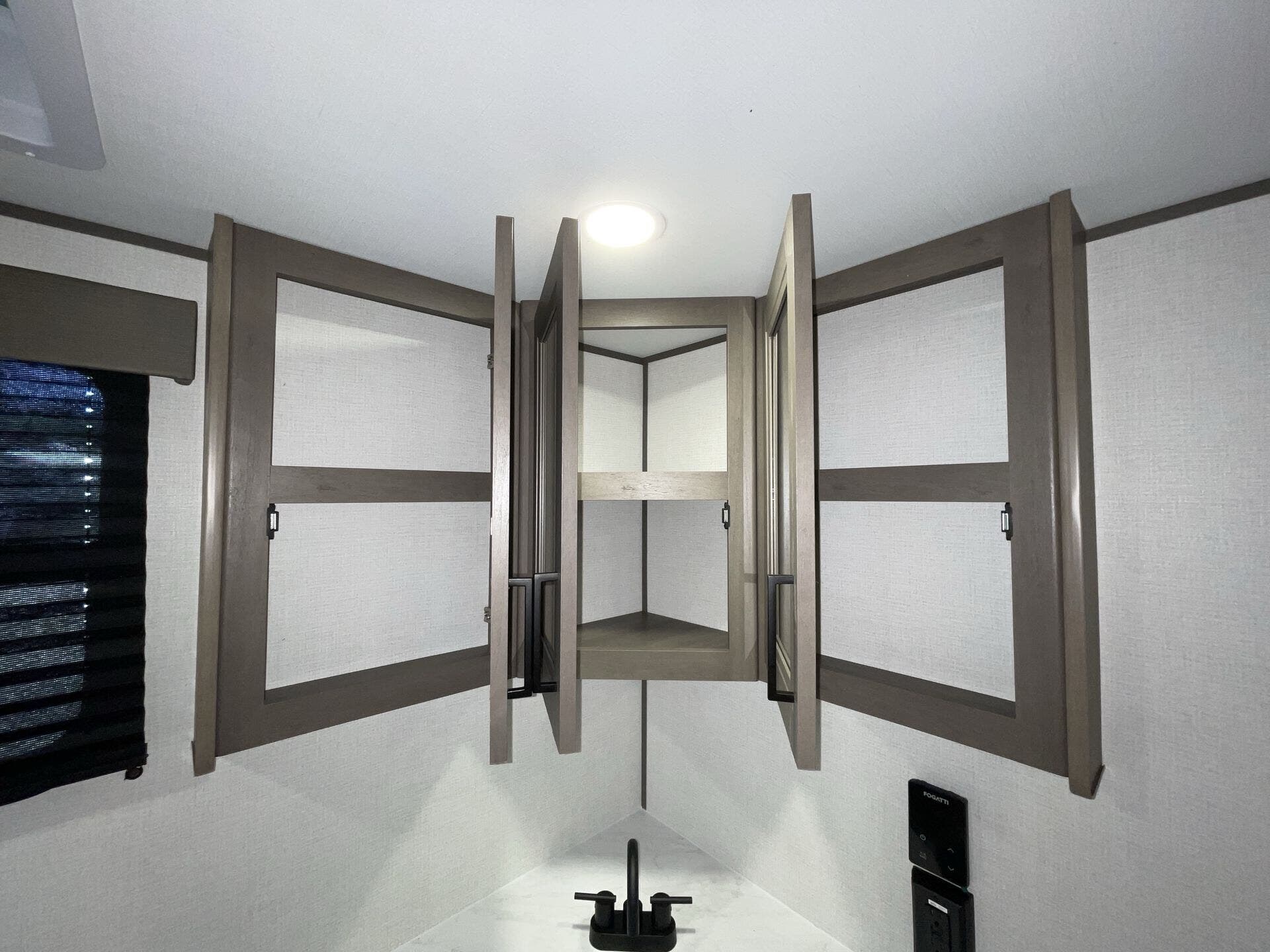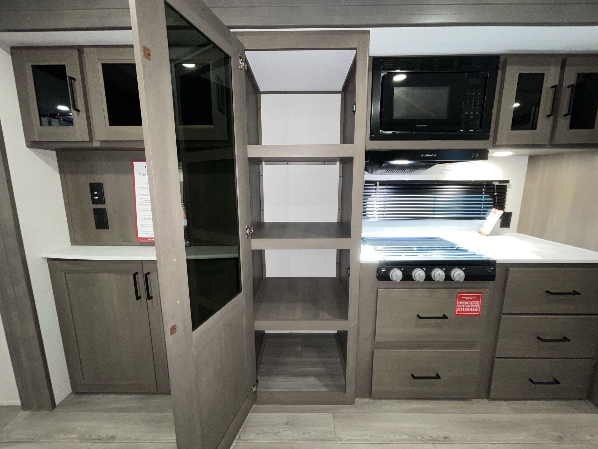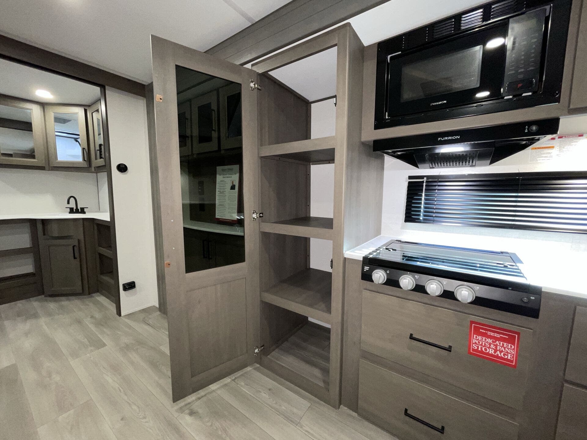 Booth Dinette, Dinette Bed, Kitchen Sink, Medicine Cabinet, Overhead Cabinetry, Pet Friendly, Queen Bed, Roof Vents, Shower, Theater Seating, Toilet, Wardrobe(s)