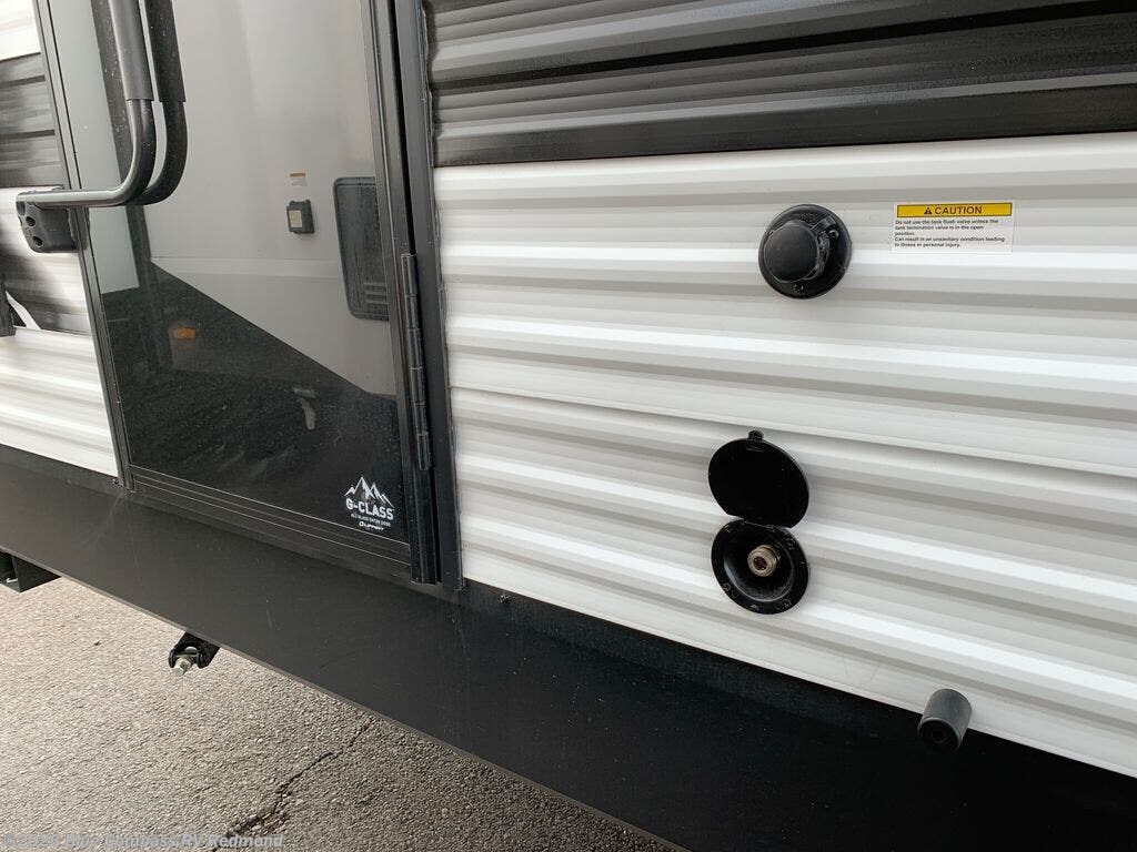Get ready to take your travels to new heights with our incredible luxury travel trailer! The front bedroom has a queen bed, wardrobe, and overhead cabinets for all your favorite belongings, the perfect place to relax and recharge after a long day of adventure. The living room/kitchen combined area is equipped with a U-shaped dinette, three-burner cooktop, microwave, refrigerator, pantry, and 62” theater seating. Perfect for cooking up your favorite meals, entertaining friends and family, or simply relaxing and enjoying the comforts of home. The full bathroom is spacious and complete with a linen closet for added convenience. And with double-sized bunk beds featuring curtains and under-bunk storage, the kids will have their cozy retreat. But the adventure doesn't stop there! Outside, you'll find an exterior griddle with a 1.7 refrigerator, perfect for cooking up a storm in the great outdoors. And with a massive 19’ awning, you'll have plenty of shade and protection from the elements, plus, with two entry/exit doors and pass-through storage, you'll have easy access to the trailer and all your gear.