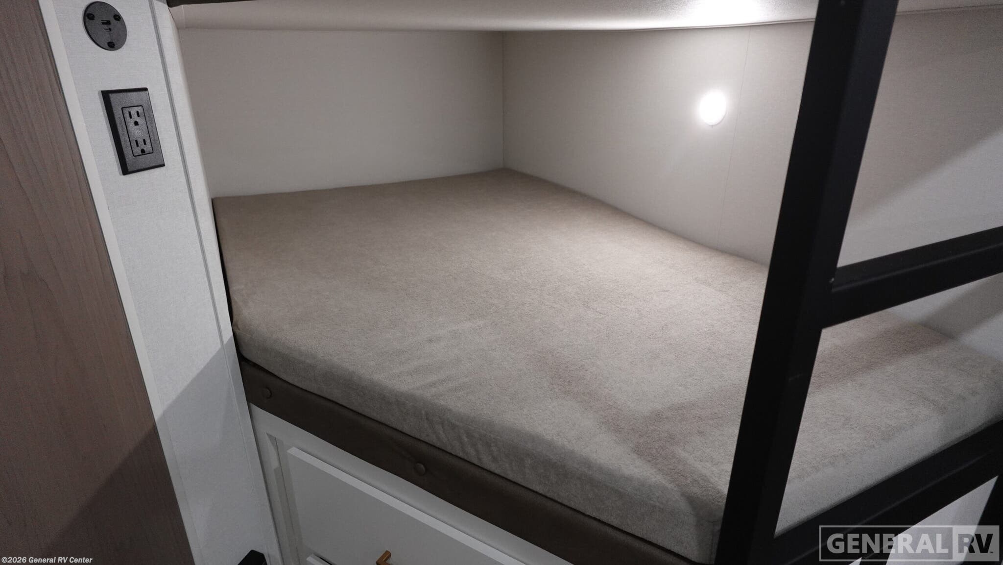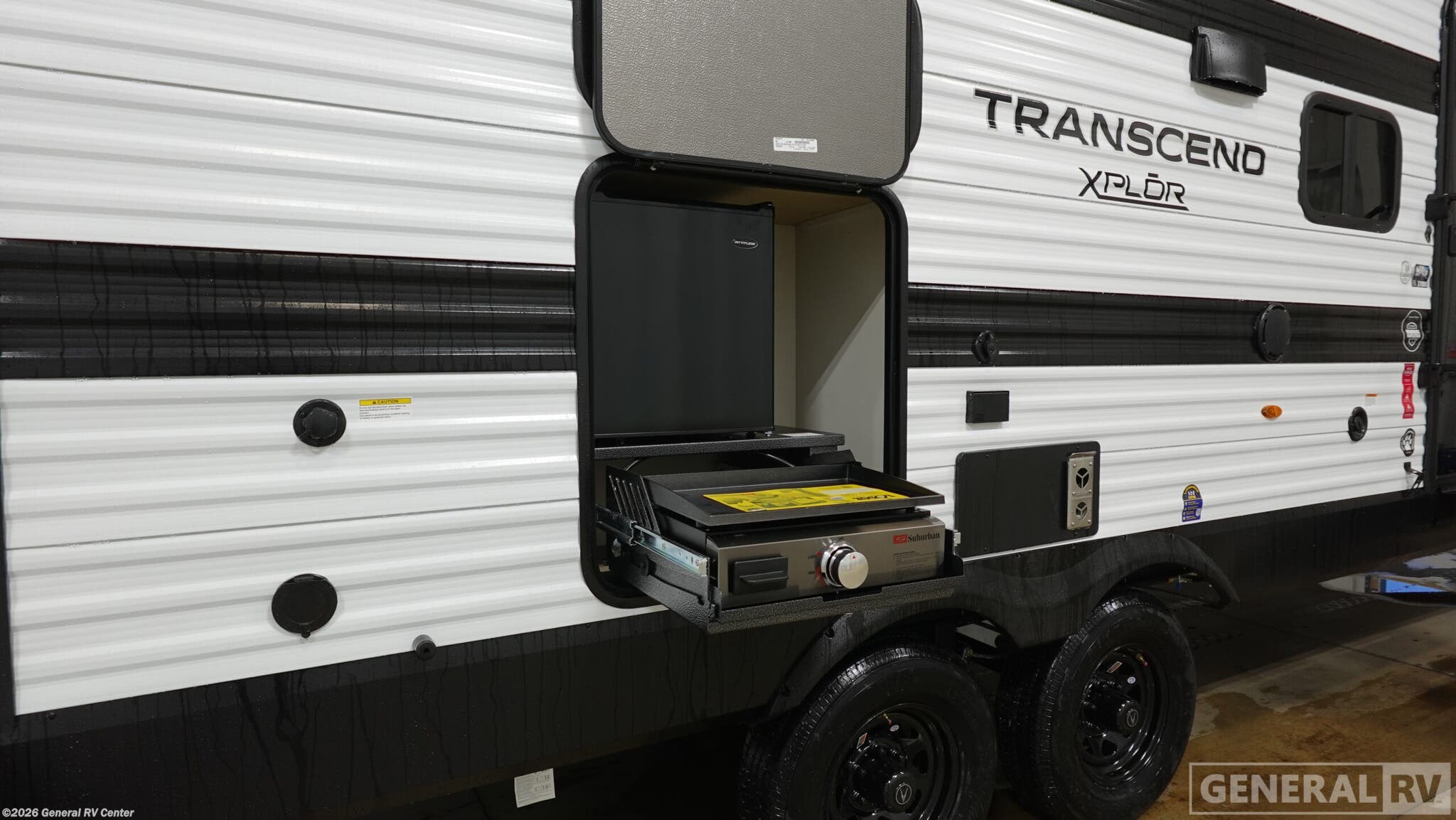 Experience the perfect blend of comfort and adventure with the 2026 Grand Design Transcend Xplor 27DBX. This thoughtfully designed travel trailer boasts a spacious interior, ideal for families or groups of up to eight. The center kitchen and living area provide a welcoming space to gather, featuring a full-size electric refrigerator and a three-burner cooktop for all your culinary needs. The U-shaped dinette and optional theater seating create a cozy atmosphere for meals and relaxation. With a 19 ft. powered retractable awning, you can easily extend your living space outdoors, perfect for enjoying a sunny day or a starry night. The 27DBX floorplan is crafted for convenience and versatility. The front bedroom offers a peaceful retreat with a queen bed, while the bunkhouse at the rear provides ample sleeping space with double beds. The rear bath, equipped with a shower curtain, ensures privacy and ease of use. Storage solutions are plentiful, with pass-thru storage and under-bunk options to keep your belongings organized. Whether you're embarking on a weekend getaway or an extended journey, the Grand Design Transcend Xplor 27DBX promises a seamless and enjoyable experience. For more details, visit your nearest General RV Dealership Location.