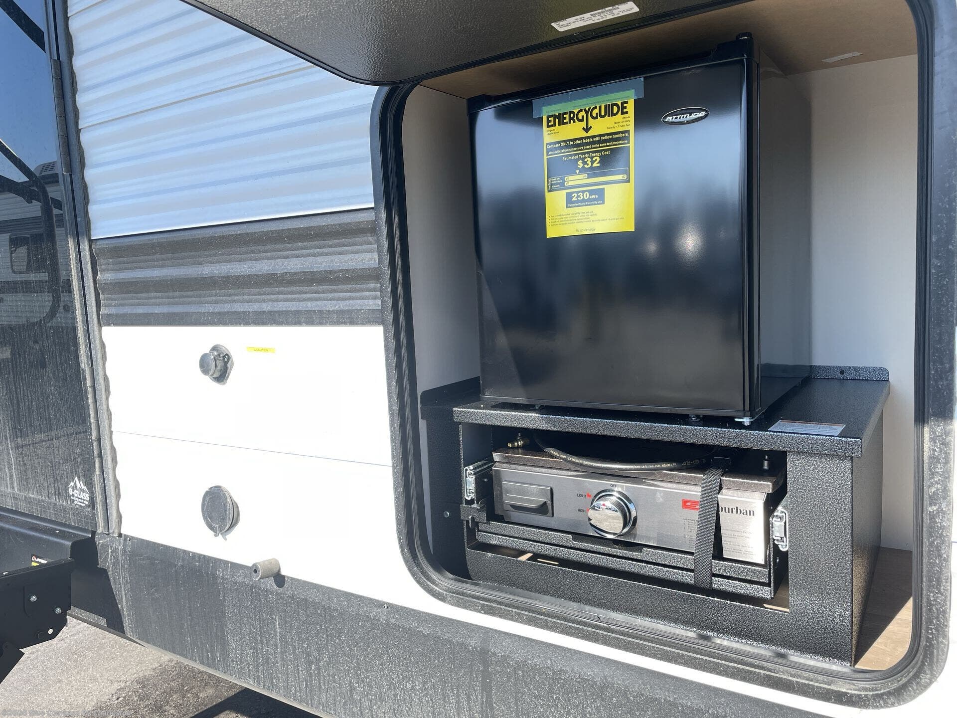 Get ready to take your travels to new heights with our incredible luxury travel trailer! The front bedroom has a queen bed, wardrobe, and overhead cabinets for all your favorite belongings, the perfect place to relax and recharge after a long day of adventure. The living room/kitchen combined area is equipped with a U-shaped dinette, three-burner cooktop, microwave, refrigerator, and pantry. The full bathroom is spacious and complete with a linen closet for added convenience. And with double-sized bunk beds featuring curtains and under-bunk storage, the kids will have their cozy retreat. But the adventure doesn't stop there! Outside, you'll find an exterior griddle with a 1.7 refrigerator, perfect for cooking up a storm in the great outdoors. And with a massive 19’ awning, you'll have plenty of shade and protection from the elements, plus, with two entry/exit doors and pass-through storage, you'll have easy access to the trailer and all your gear.
