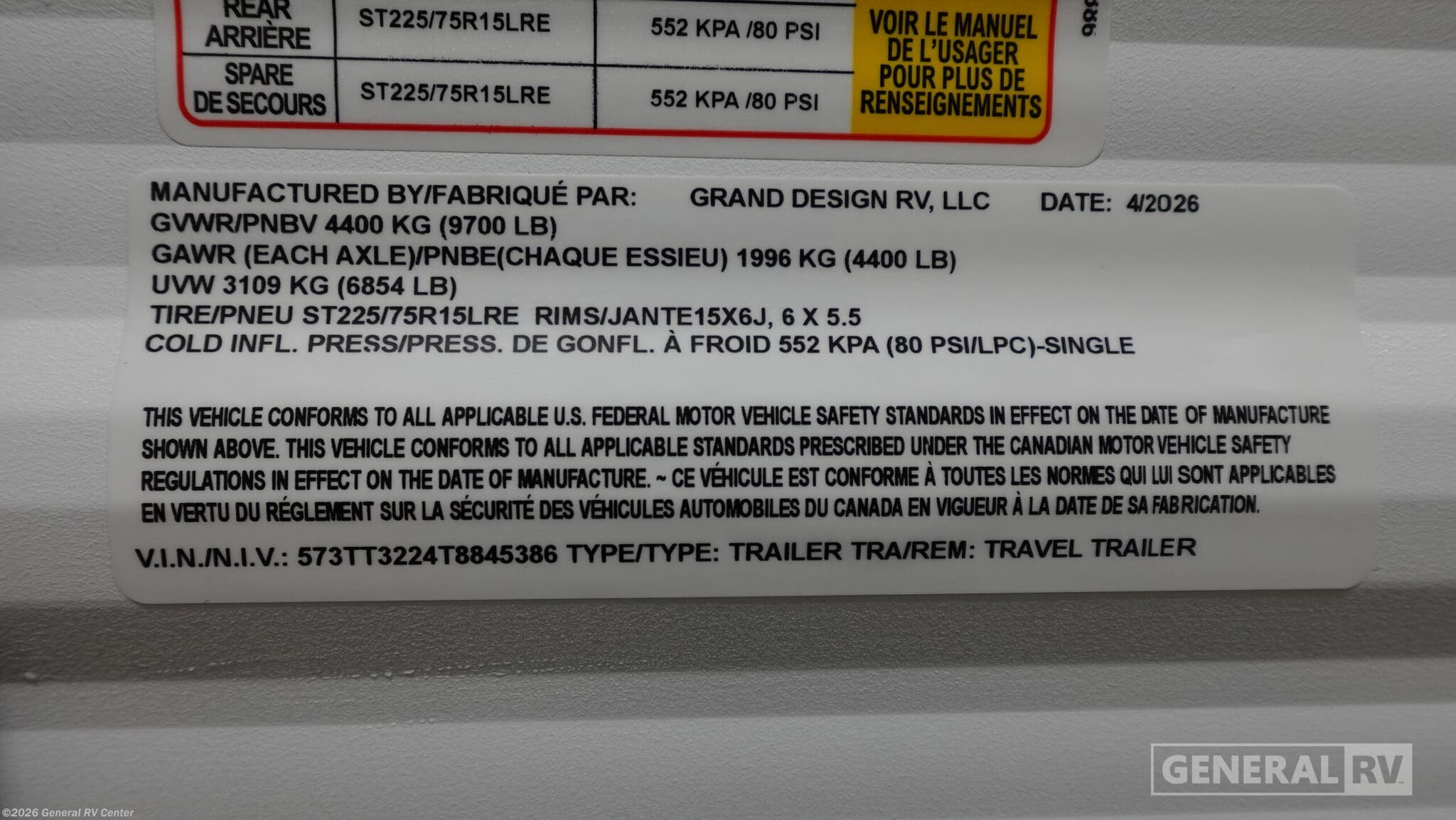 - VIN573TT3224T8845386