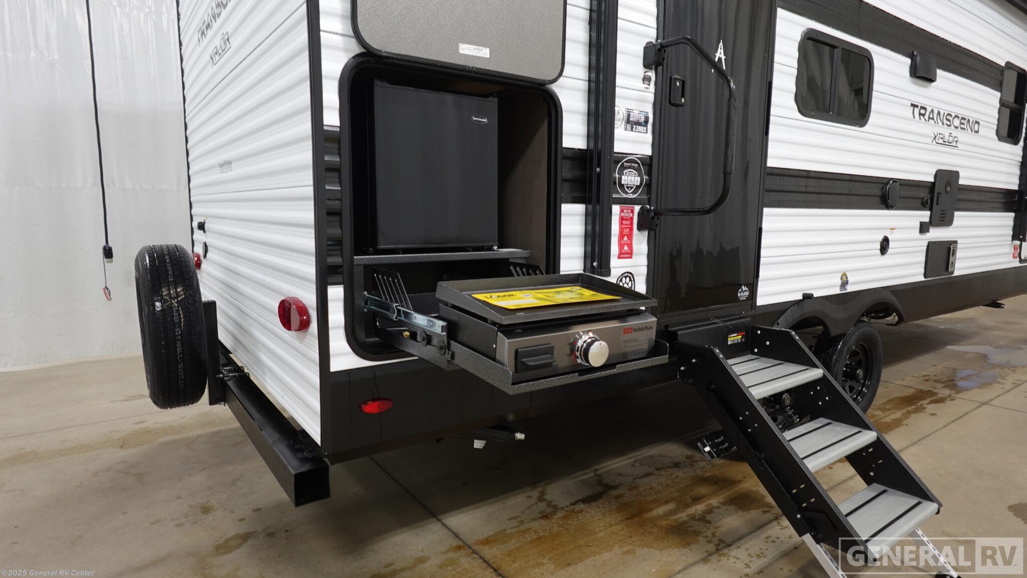 Grand Design Transcend Xplor travel trailer 22RBX highlights: Full Rear Bath Pull-Out Trash Can Exterior Griddle Front Private Bedroom Pack your bags and head for the campground in this spacious travel trailer! Once you arrive, you can unload the pass-thru storage, then make lunch on the exterior griddle with a 1.7 cu. ft. exterior refrigerator. The U-shaped dinette slide will provide a place to dine if you decide not to stay outside under the 16' power awning. Optional theater seats can be chosen in place of the dinette for even more comfort! You'll sleep soundly on the queen bed in the front bedroom, and the full rear bath lets you freshen up each day. The customer-focused, quality-built Transcend Xplor travel trailers by Grand Design are your ticket to fun and adventure. You will appreciate the power tongue jack when it comes time to set up, as well as the all-in-one utility center and the detachable power cord with an LED light. These models include many outlets throughout, USB ports to charge your gadgets, and a JBL exterior speaker to listen to your favorite tunes. The interior of the Transcend Xplor will have you feeling right at home with upgraded residential furniture, residential countertops, residential cabinet doors, and the list goes on!