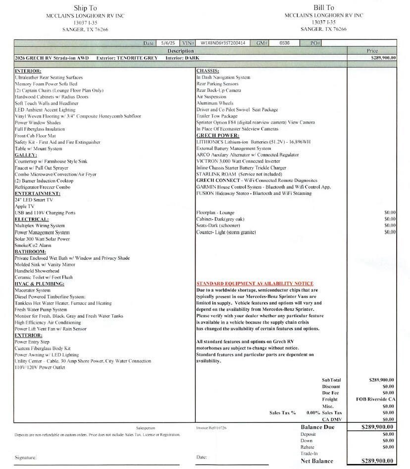 Request More Info on this 2026 Grech RV Strada AWD LOUNGE-ION Offered for sale by McClain's Longhorn RV